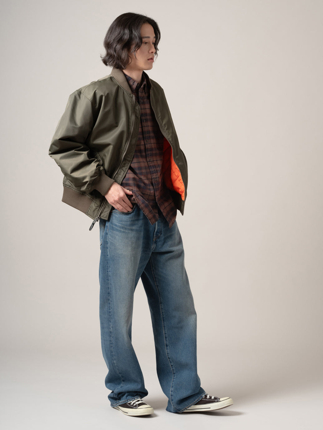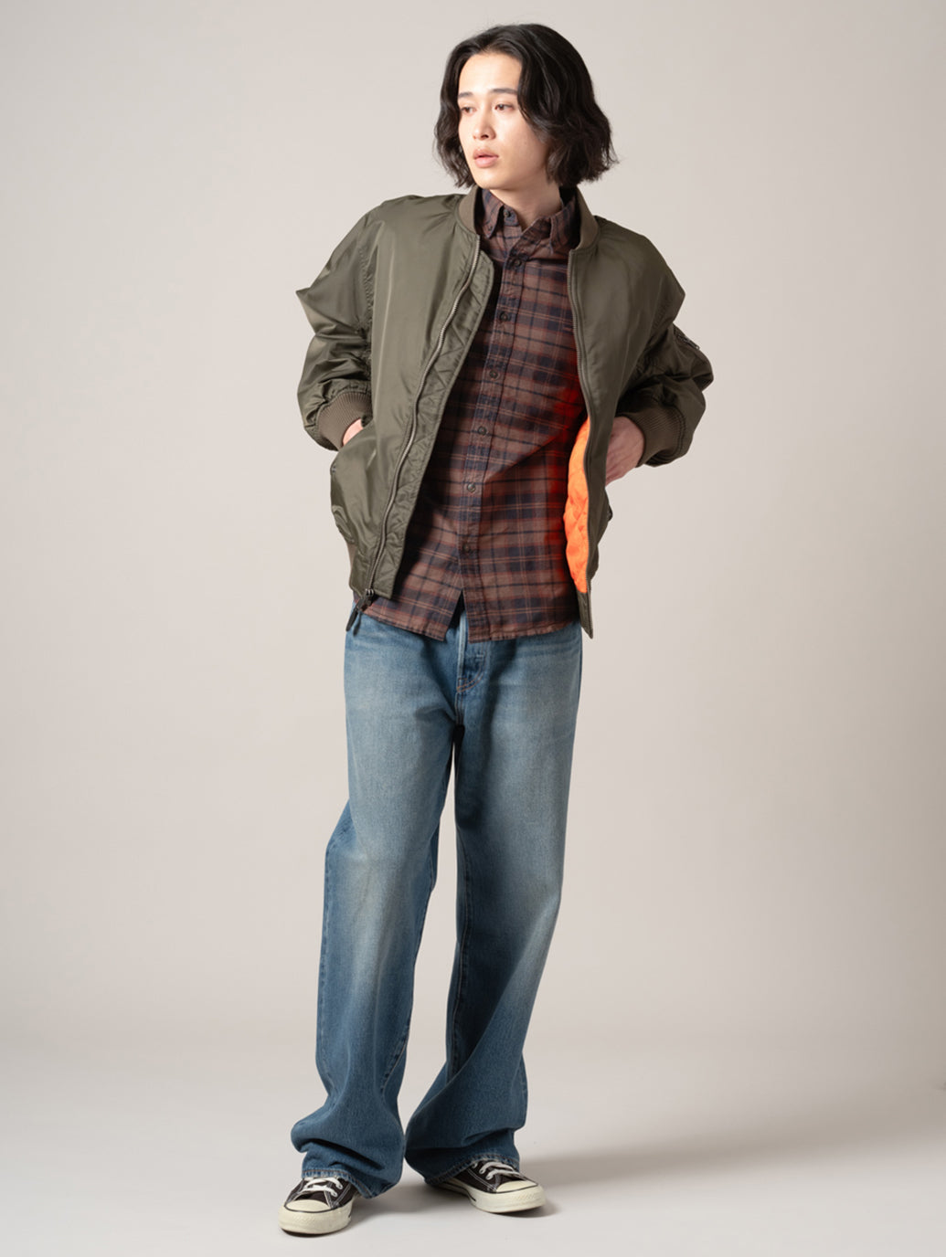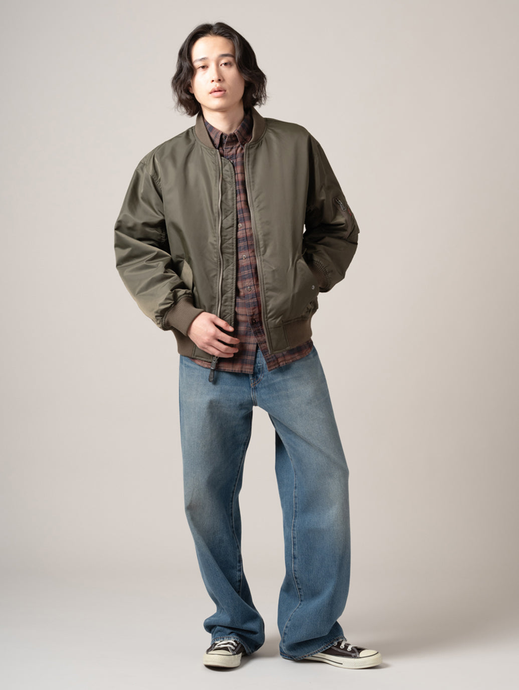 アイコニックなシルエットのMA-1ボンバージャケットは、その象徴的な歴史を彷彿とさせる一着です。リラックスフィットに、ボタン留めのサイドポケットを2つ備え、裾には伸縮性を持たせています。
