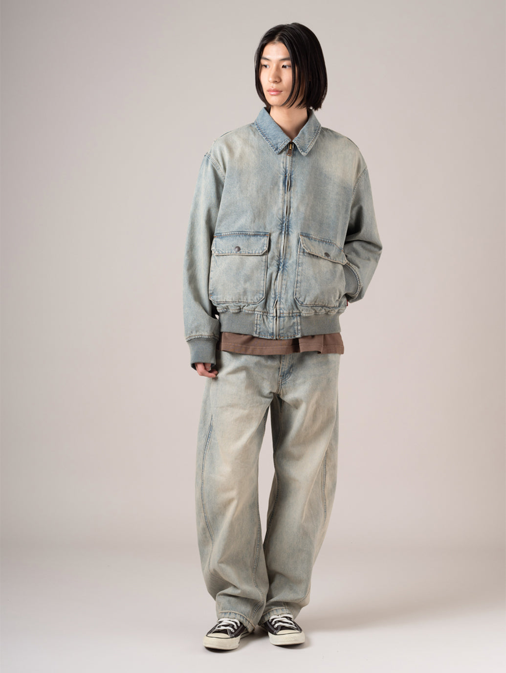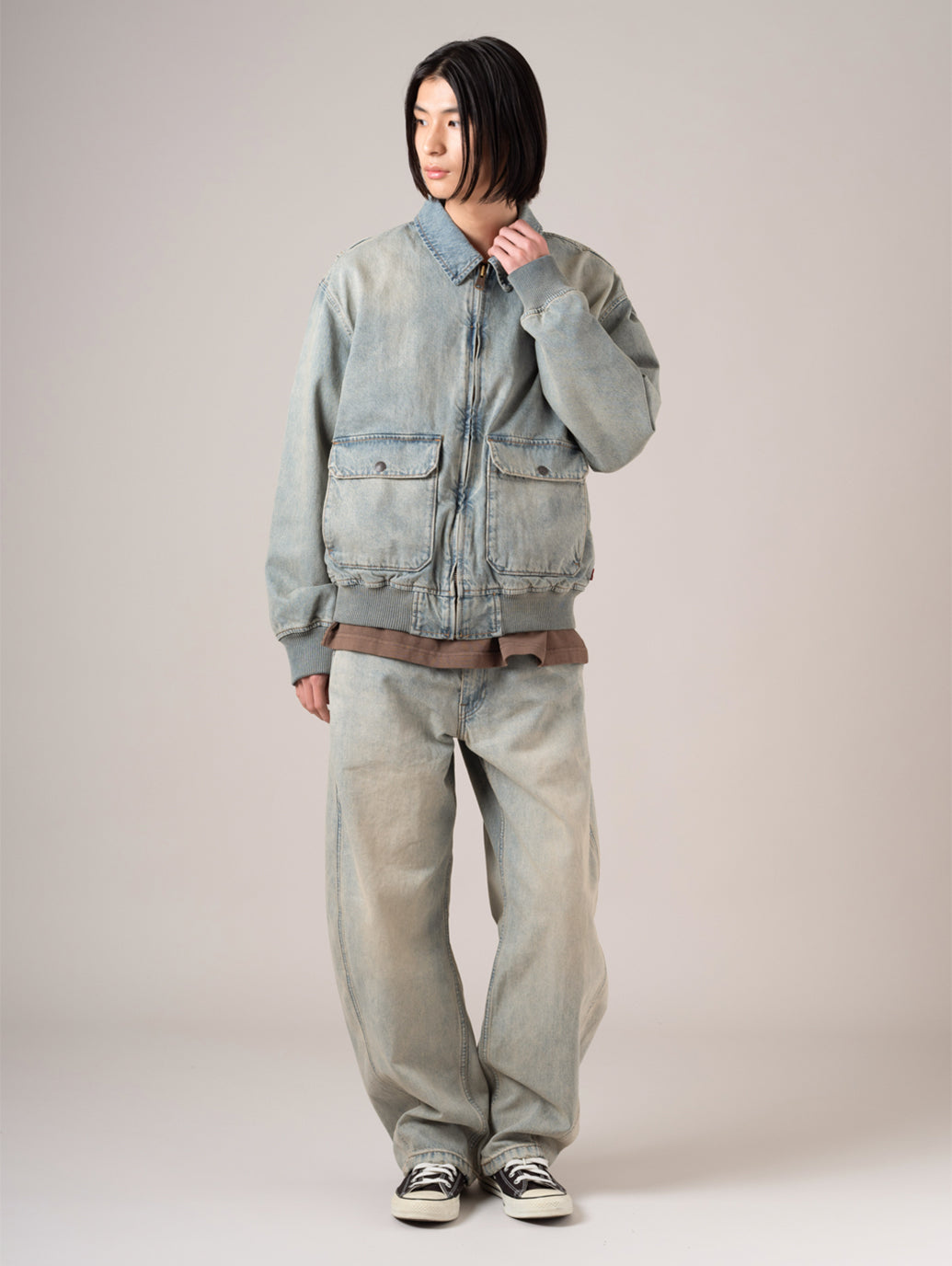 ジッパータイプのデニムジャケット。フロントには大きなポケットが2つあしらわれ、裏地はチェック柄のデザイン。 どんなパンツにも相性抜群です。