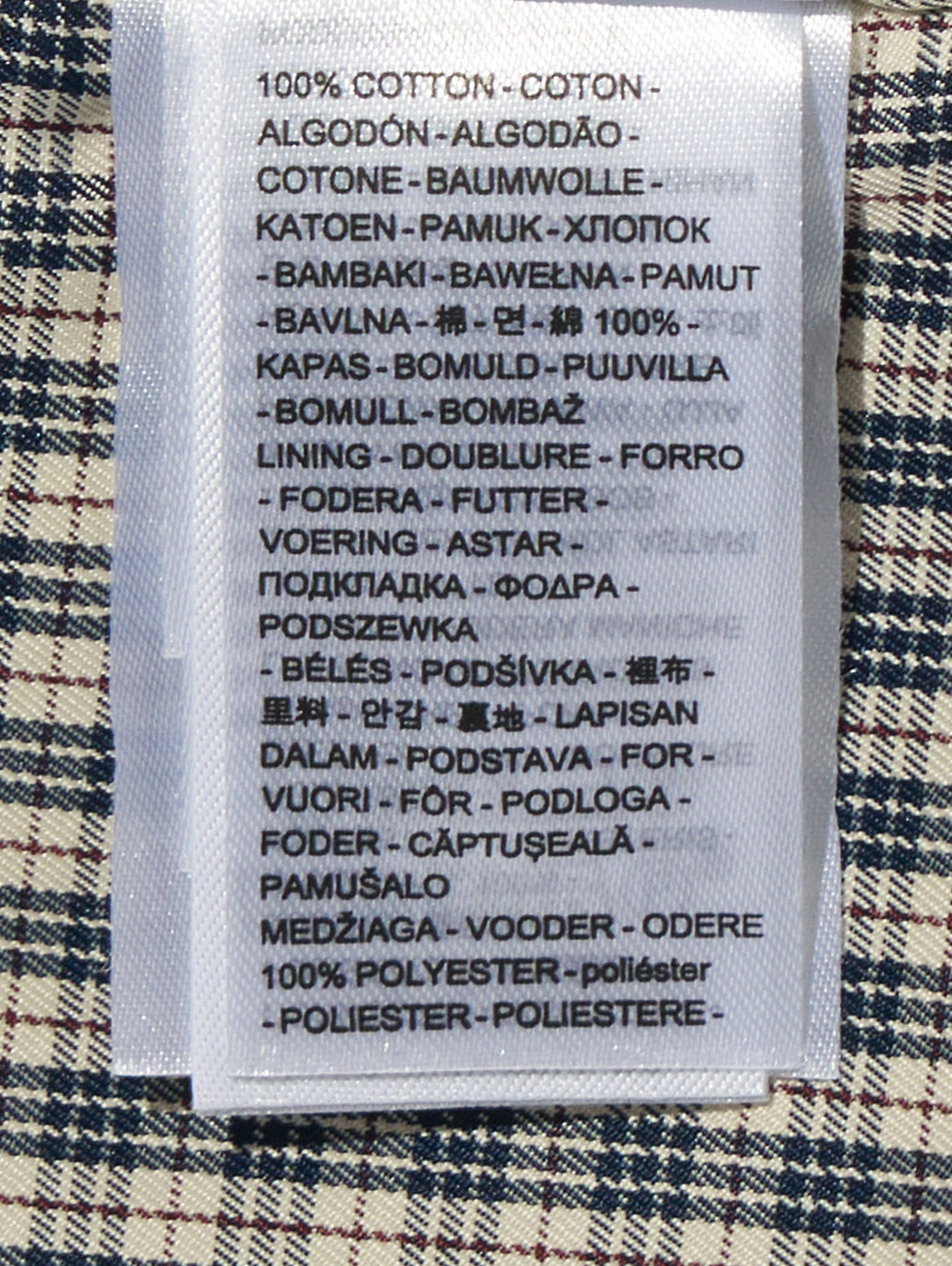 ・綿100%, 裏地:ポリエステル100%