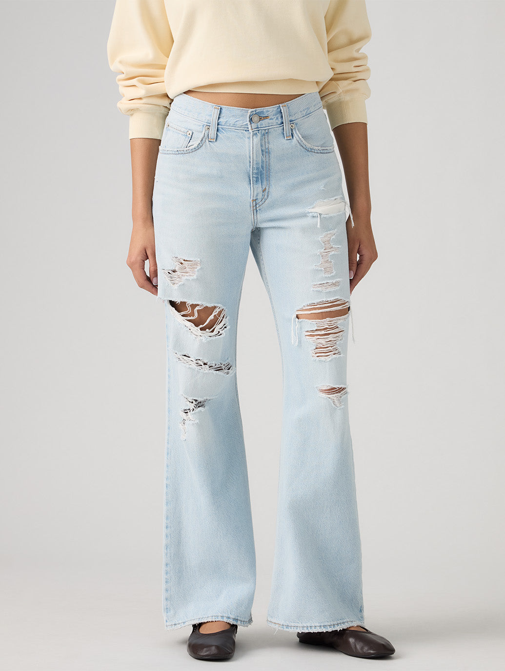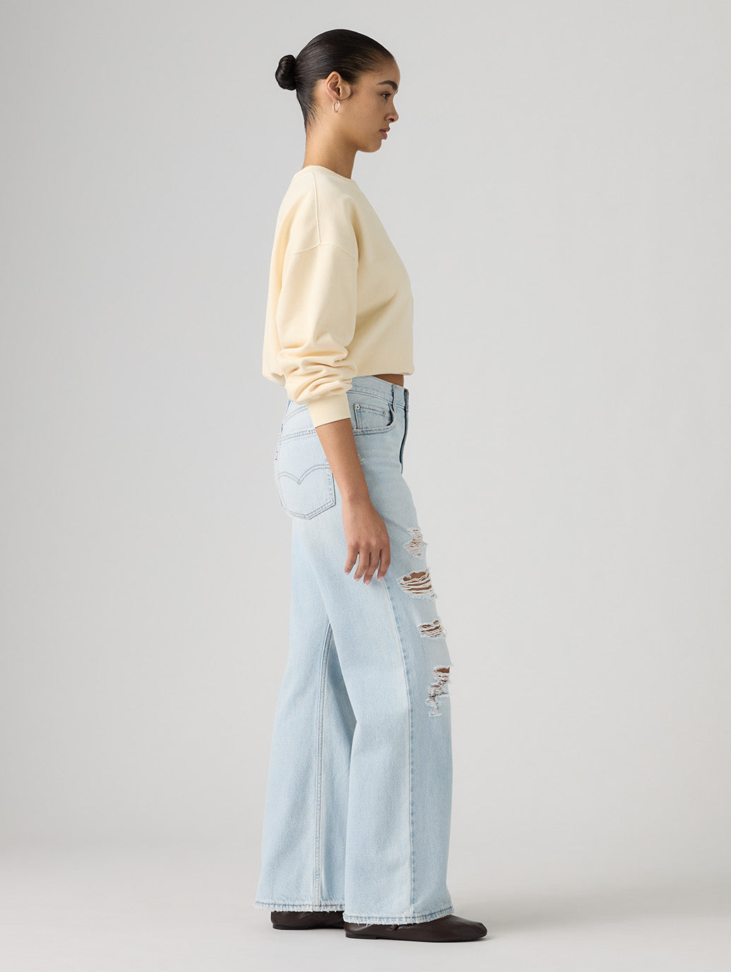新しい形の程よいルーズフィットブーツは、脚を美しく見せるミッドライズと脚を美しく見せるストレートなアウターシーム、そしてモダンなブーツカットレッグを演出するカーブしたインシームが特徴です。