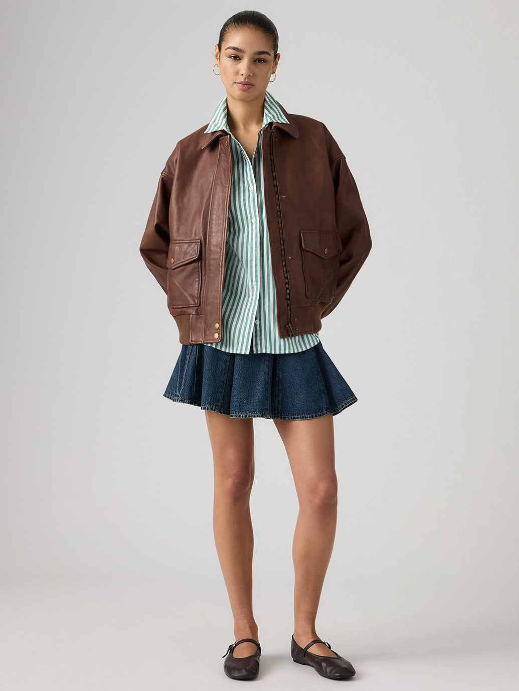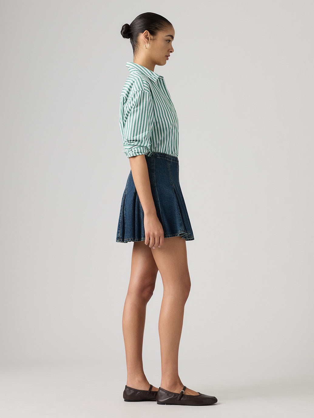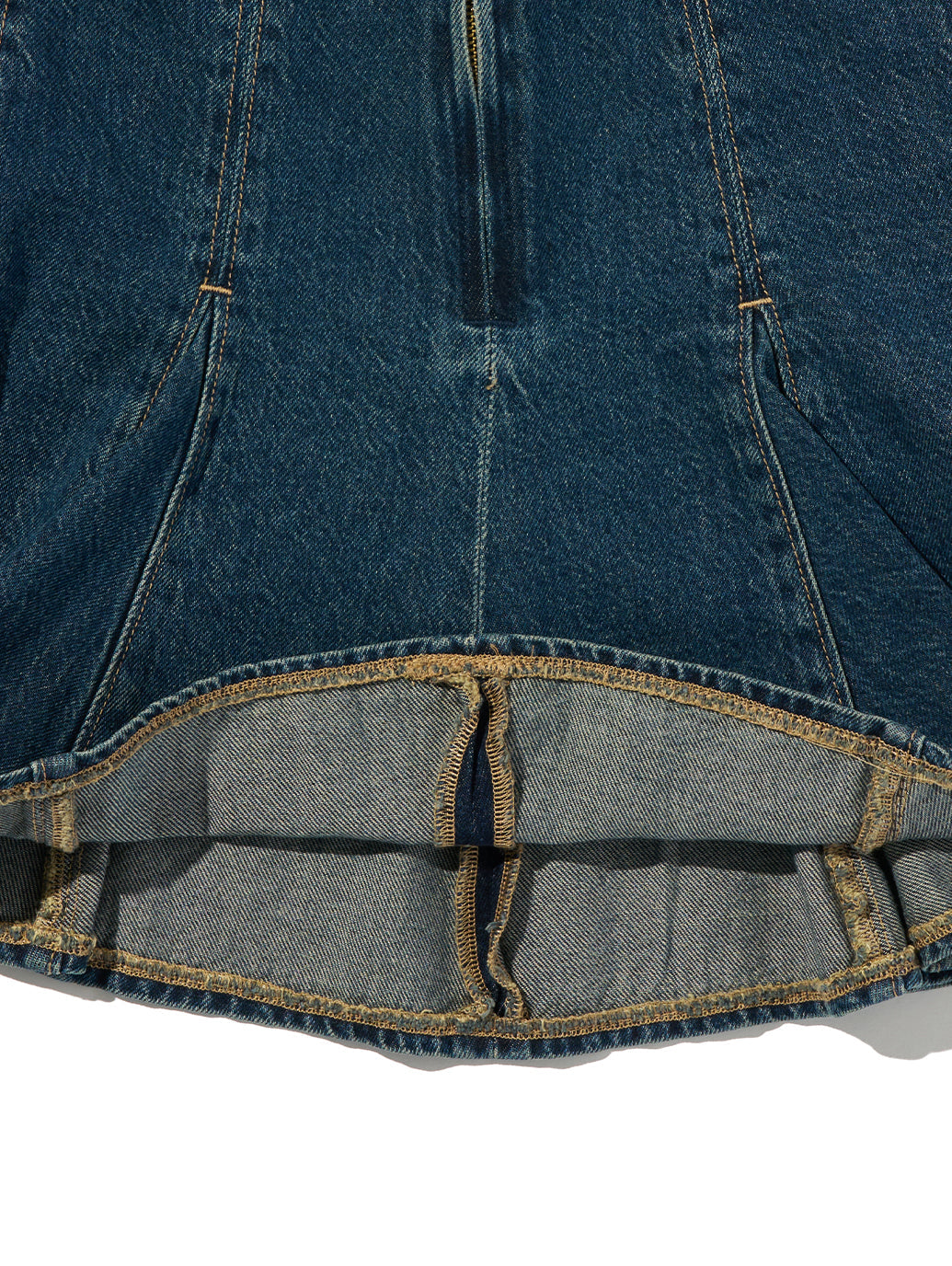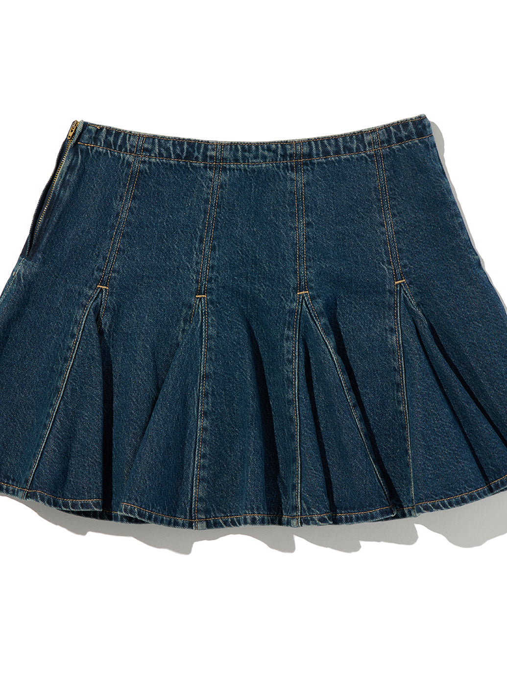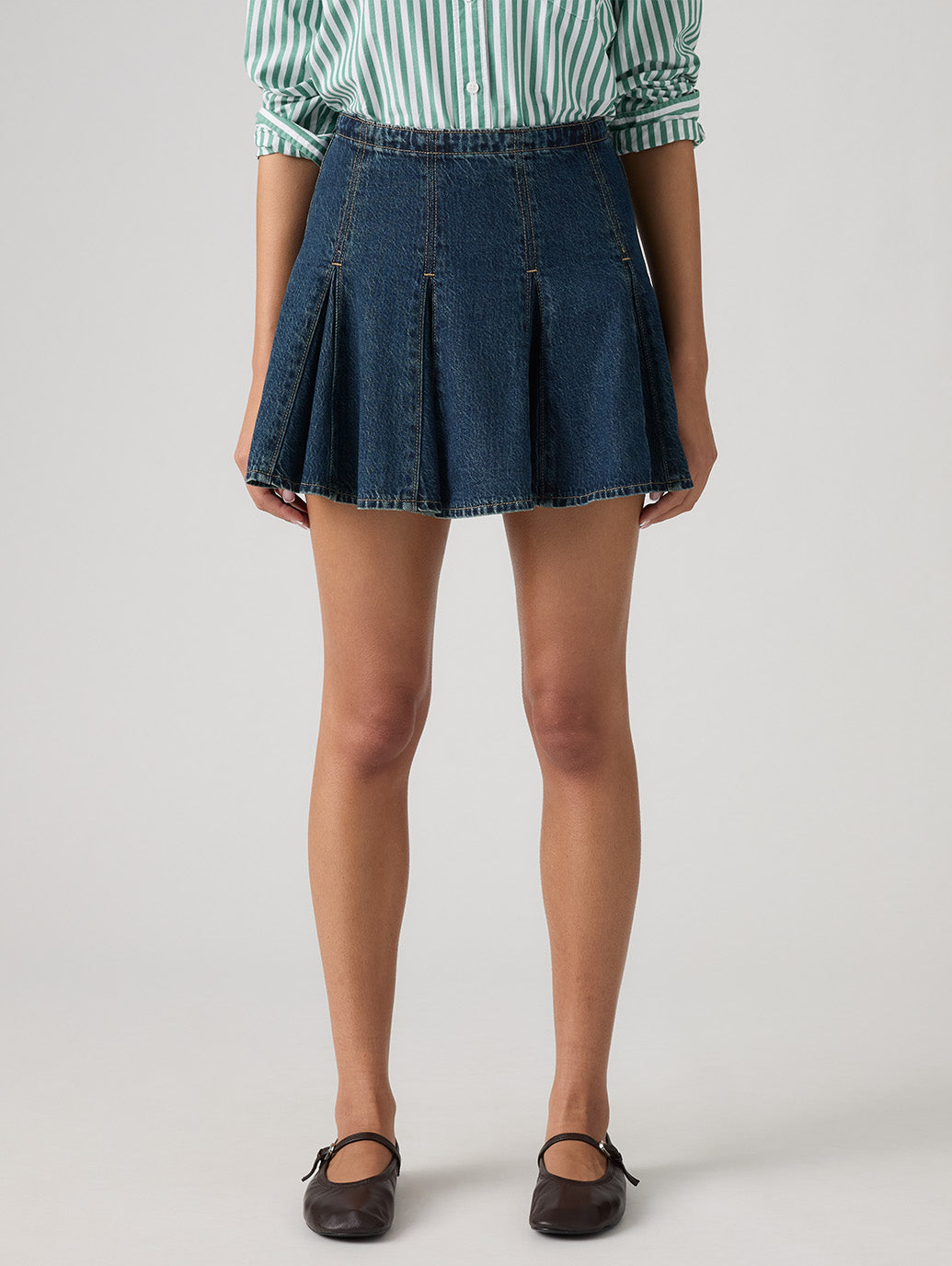 ゴデットミニスカートは、体型を美しく見せるミッドライズと完璧な膝上のミニ丈です。 綿55%、リヨンセル45%と軽量デニム素材で仕上げました。