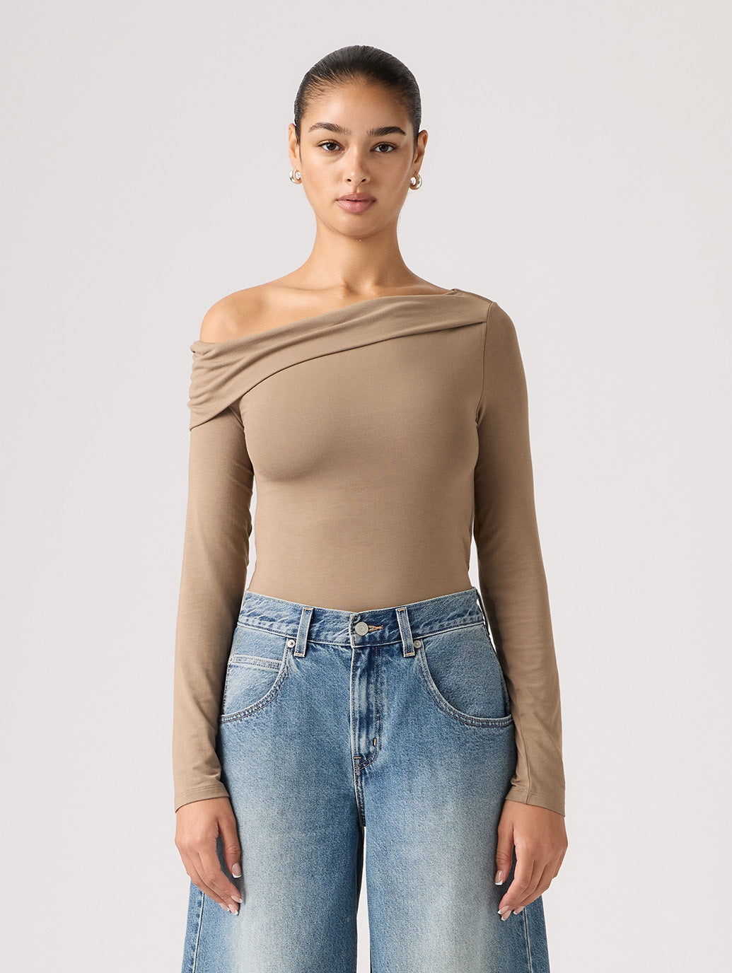着心地抜群のクララ オフショルダー ロングスリーブ トップは、アシンメトリーなネックラインのデザインが特徴的です。スタンダードなフィット感で柔らかな生地。 シンプルなボトムスと合わせていただくと簡単にコーディーネートが決まります。