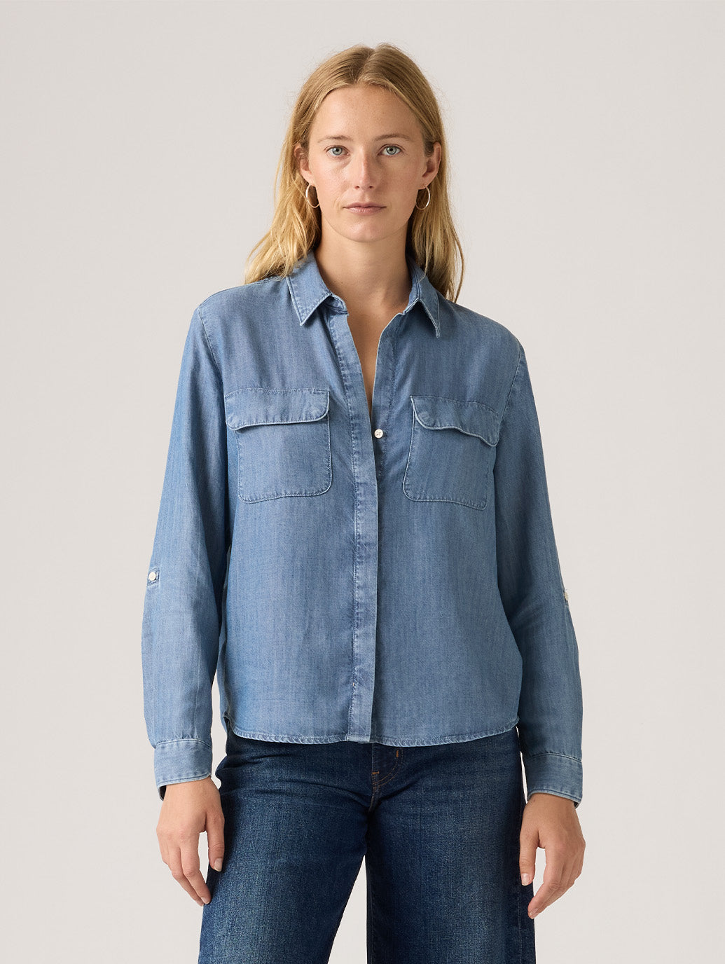 エレイン ユーティリティシャツは、クラシックなボタンダウンフロントでフロントにはパッチポケット、そして一日中快適に過ごせるリラックスフィットが特徴です。