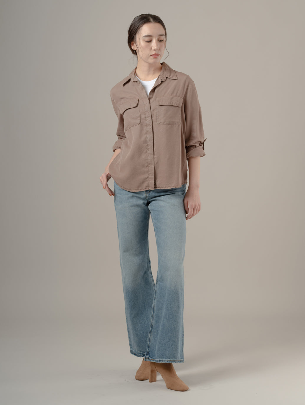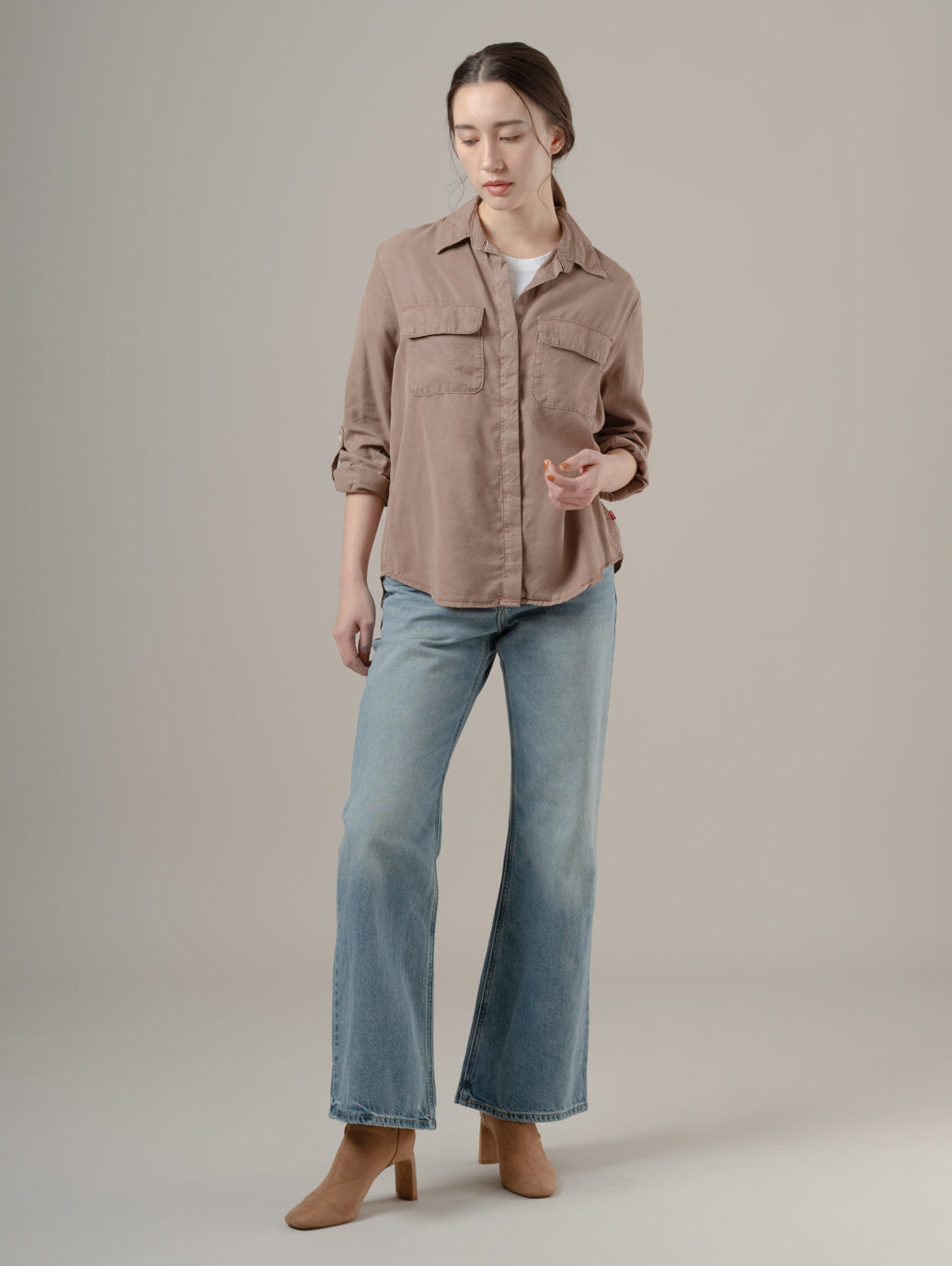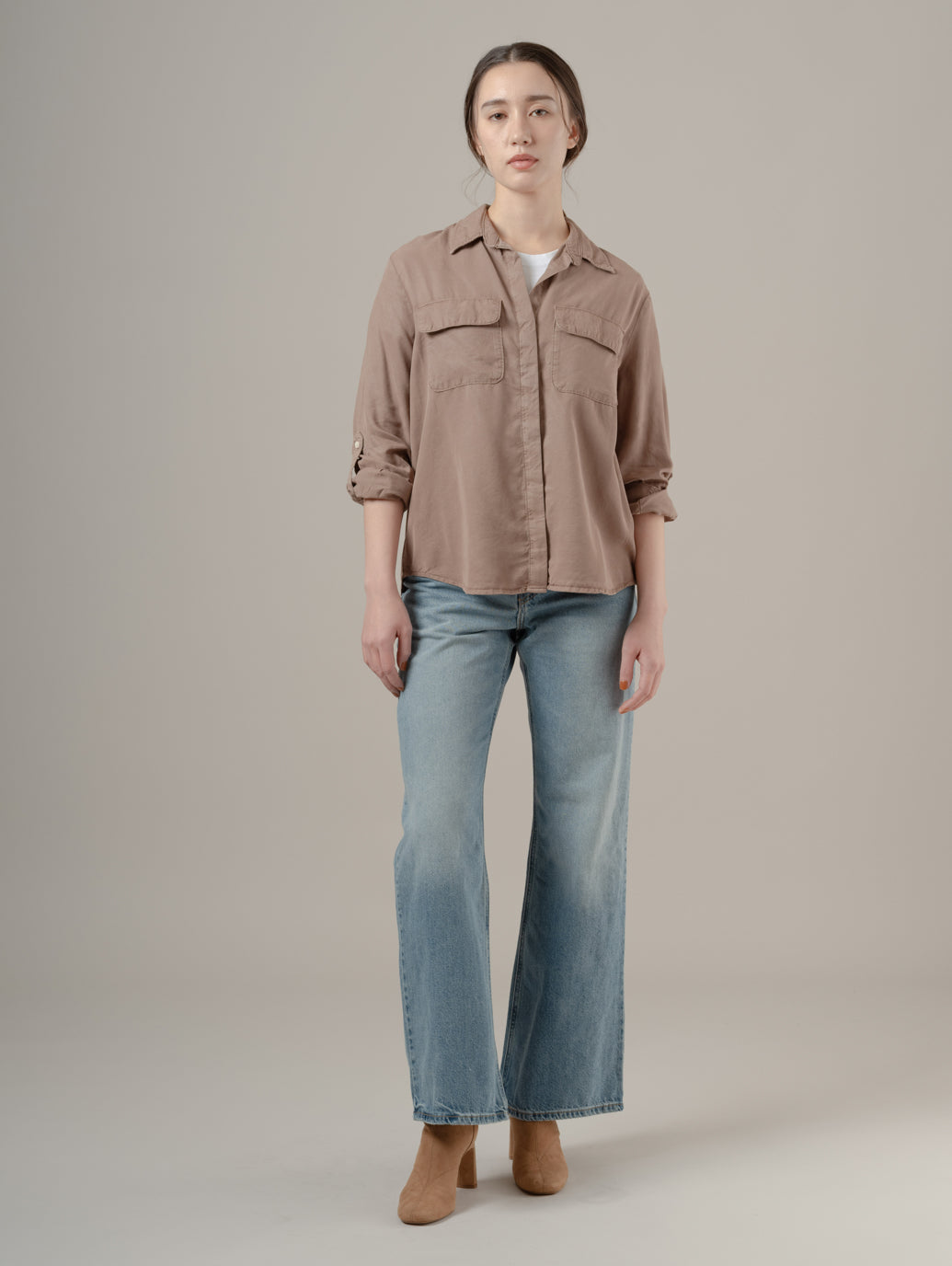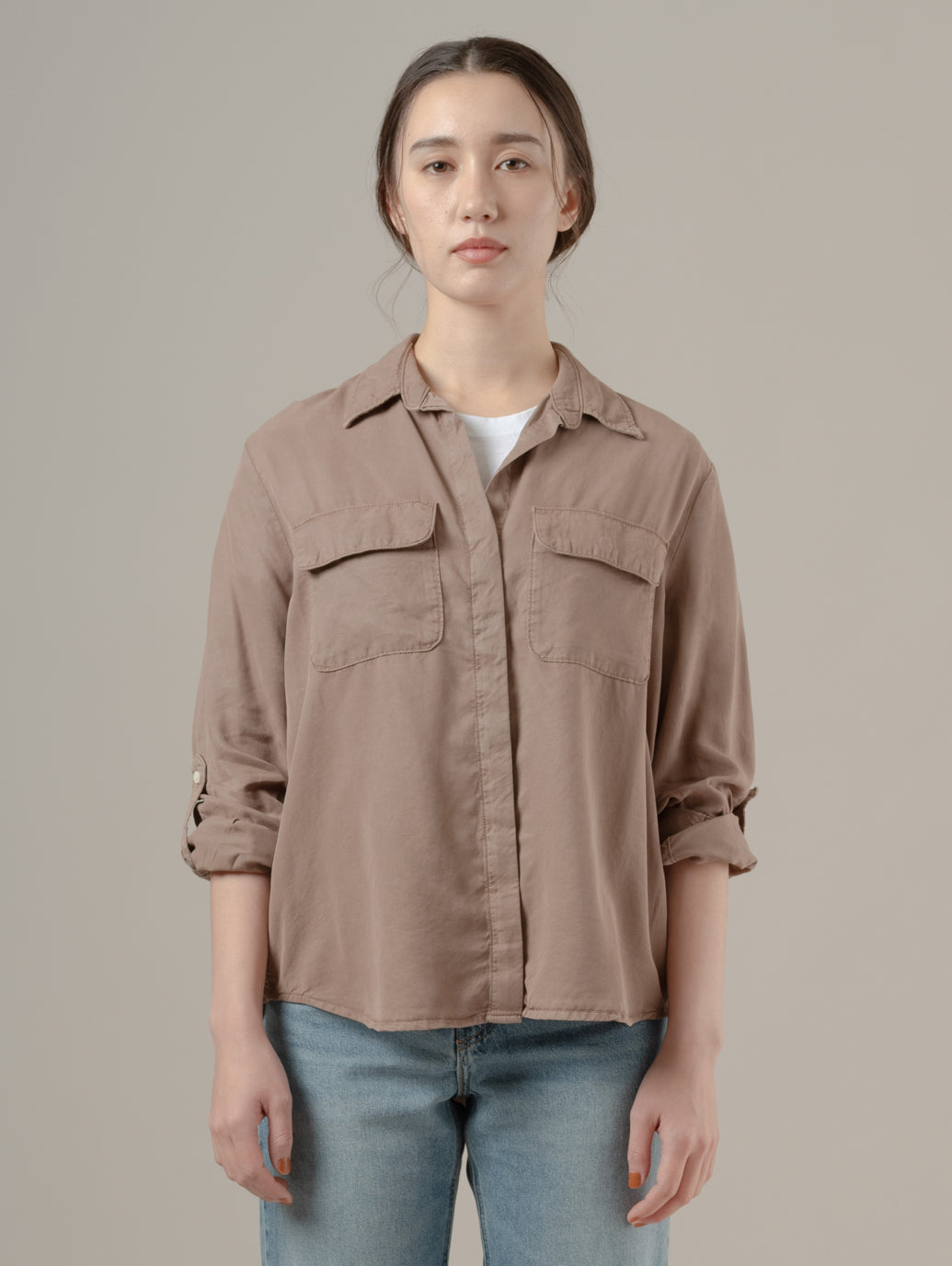 エレイン ユーティリティシャツは、クラシックなボタンダウンフロントでフロントにはパッチポケット、そして一日中快適に過ごせるリラックスフィットが特徴です。