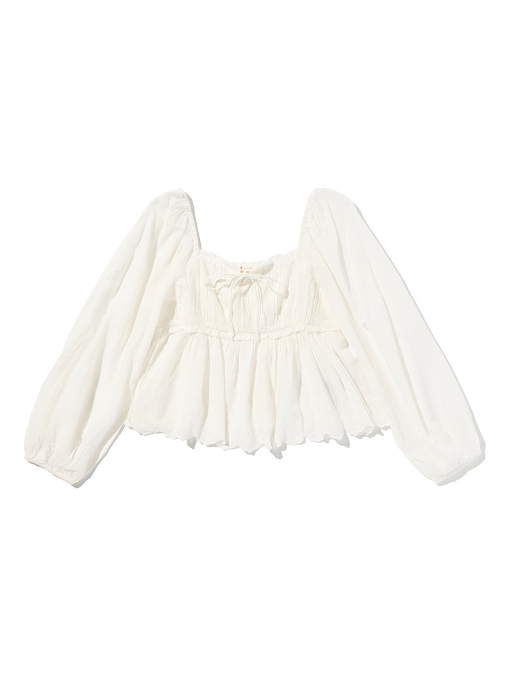 ふんわりとしたボリュームスリーブが女性らしいシルエット。高い位置でウエストマークされていてスタイルアップは勿論、バルーンスリーブでロマンチックな雰囲気を演出きるのもこのアイテムの特徴です。