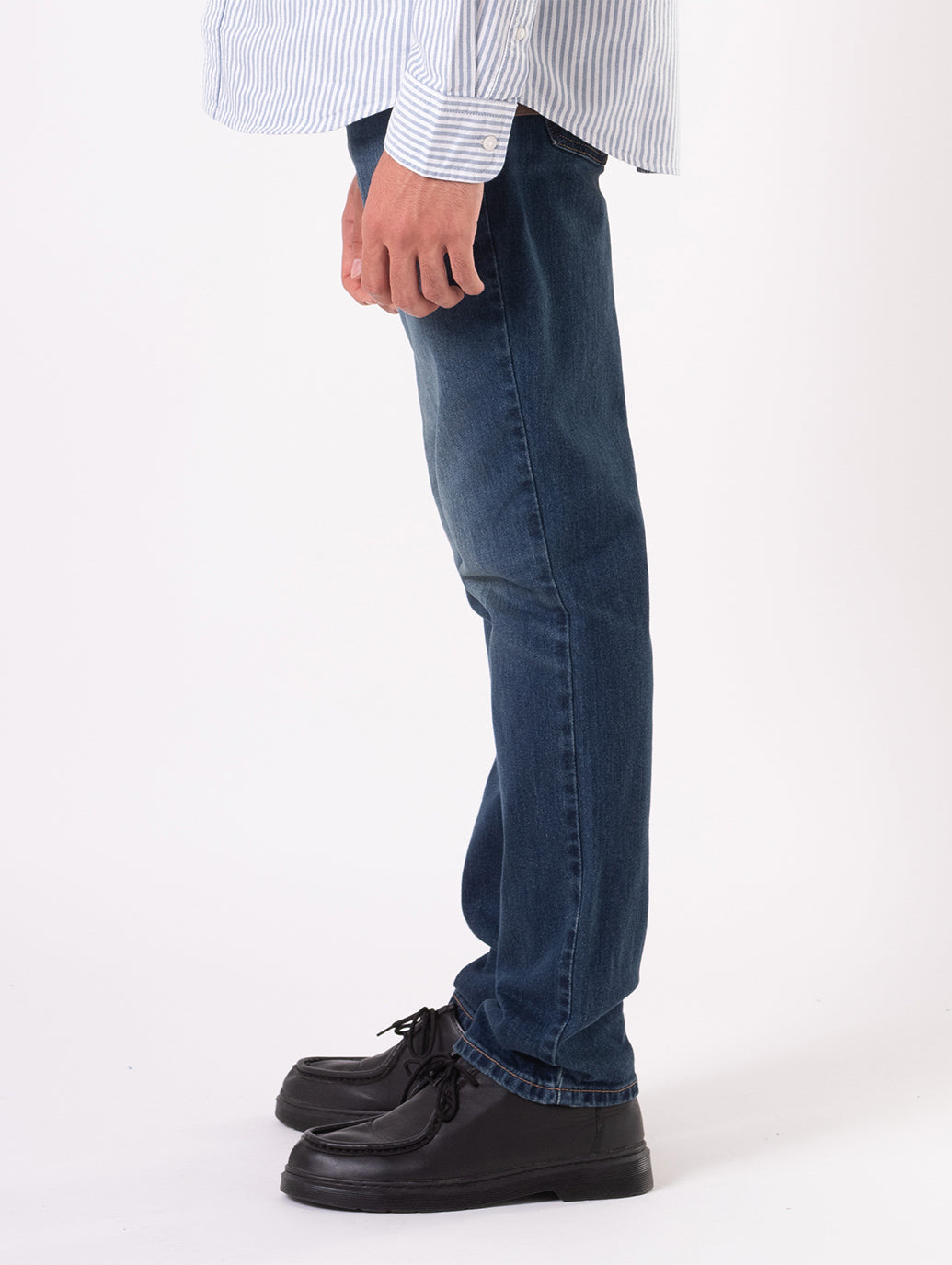 リーバイスのベーシックシルエットの一つ。長い間愛される1っ本。ストレートとスキニーの中間に位置するスタンダードなスリムフィット511™ Slim。ジップフライのストレッチ入り。股上は、浅めでストレートとスキニーの間くらい。タイト過ぎず動きやすいスリムなストレートジーンズです。リピーターの方が多いシルエットの一つ。ローテクスニーカーを合わせる場合、股上が浅い&ストレートシルエットを活かすには少し短めに調整することによって縦のラインを強調し、スッキリした印象を与えてくれます!ロールアップをされる方はその分を余分に長さを残すことがお勧め。革靴を合わせるには、基本的にダボつきを出さないことで、股下から裾にかけて縦のラインが強調出来、本来のスリムストレートのシルエットが綺麗に出せます。ロールアップしても大きくシルエットが崩れないことも特徴です。どんなシーンにも万能なマストハブアイテム。