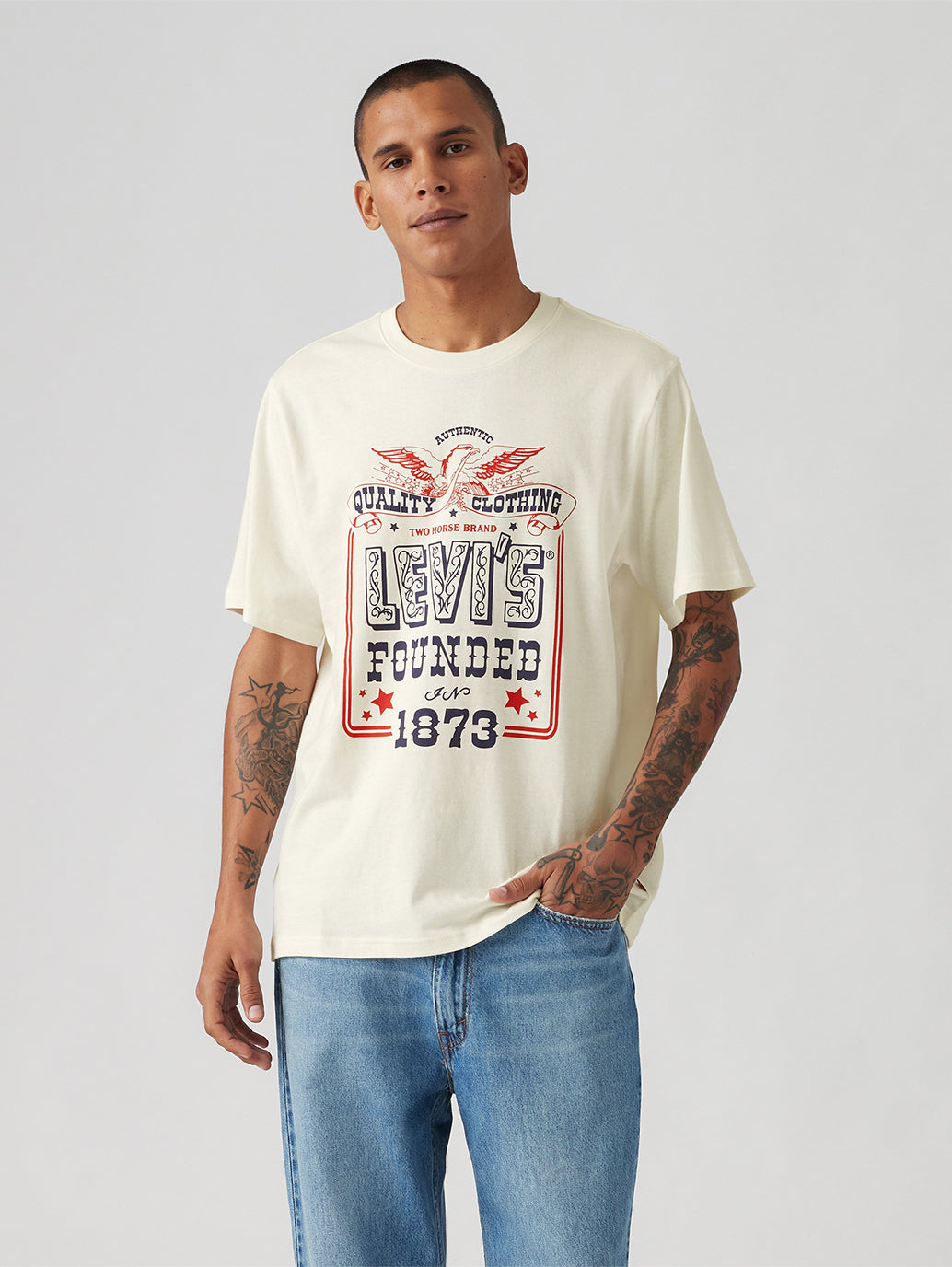 身幅がゆったりとしたボクシーフィットのTシャツ。ホワイトーカラーボディにLevi's®を大胆にあしらったデザインです。お気に入りのジーンズと合わせていただきたい一着です。