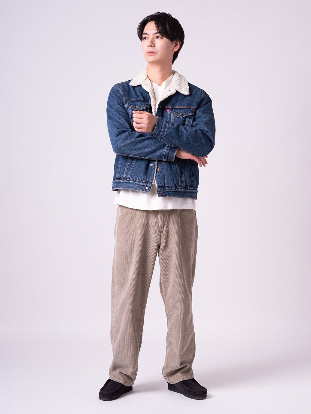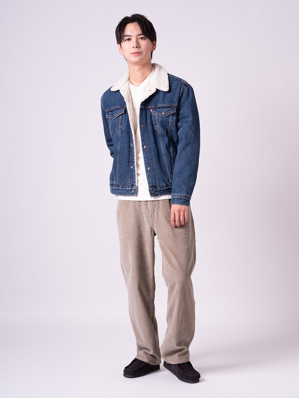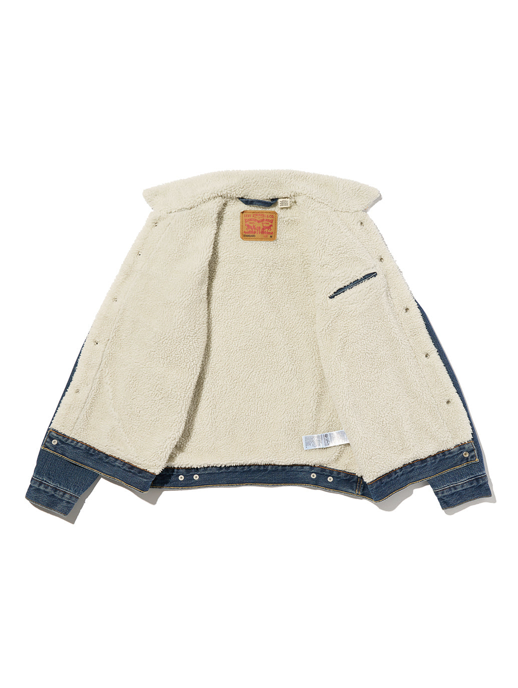 1967年から続くLevi’s®の定番アイテムの一つであるトラッカージャケットのより快適なバージョン、TYPEⅢシェルパ・トラッカージャケット。耐久性のあるデニムを使用し、裏地にはふわふわのシェルパをあしらい、保温性を高めています。