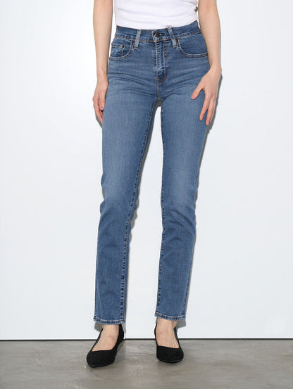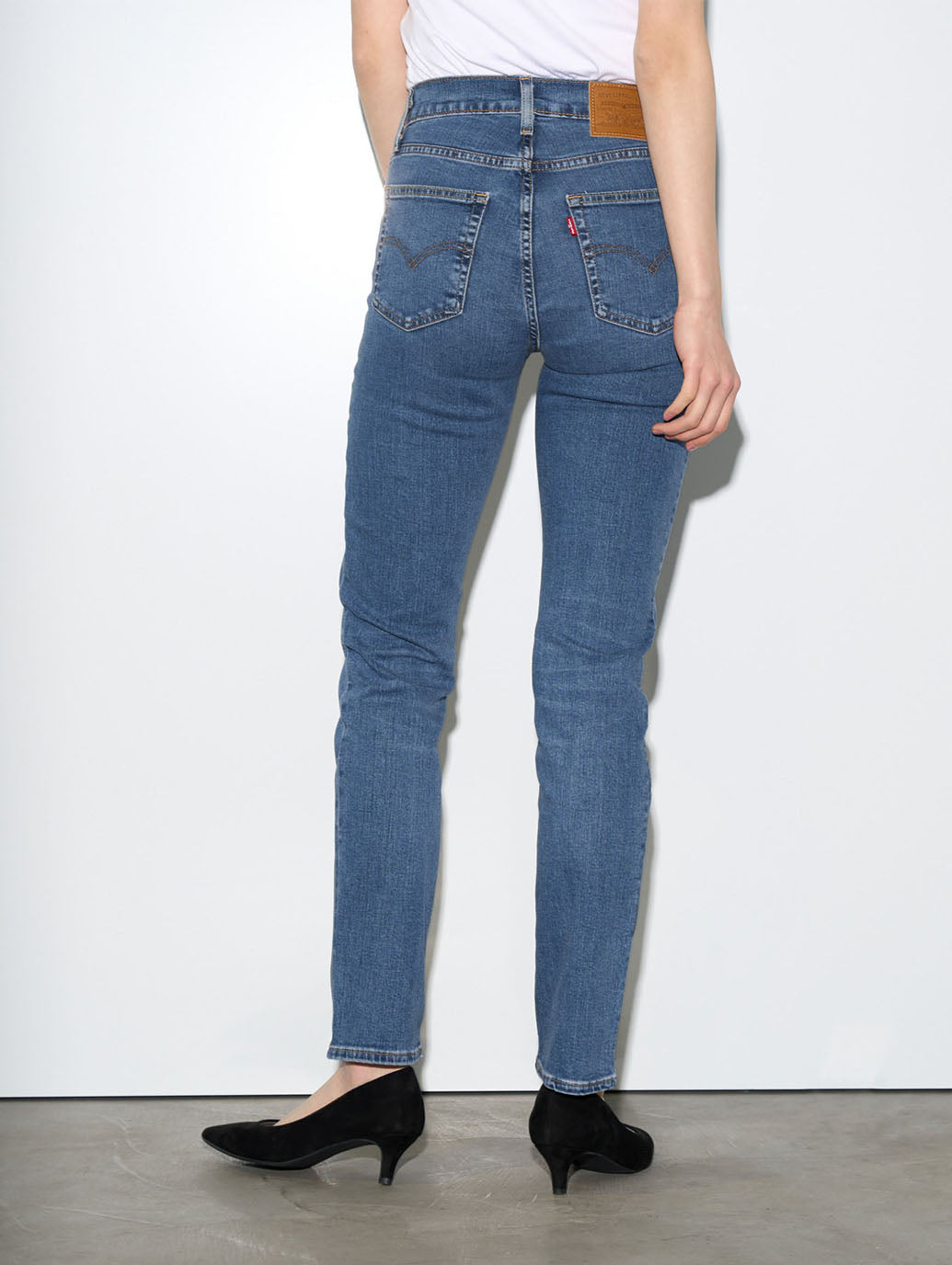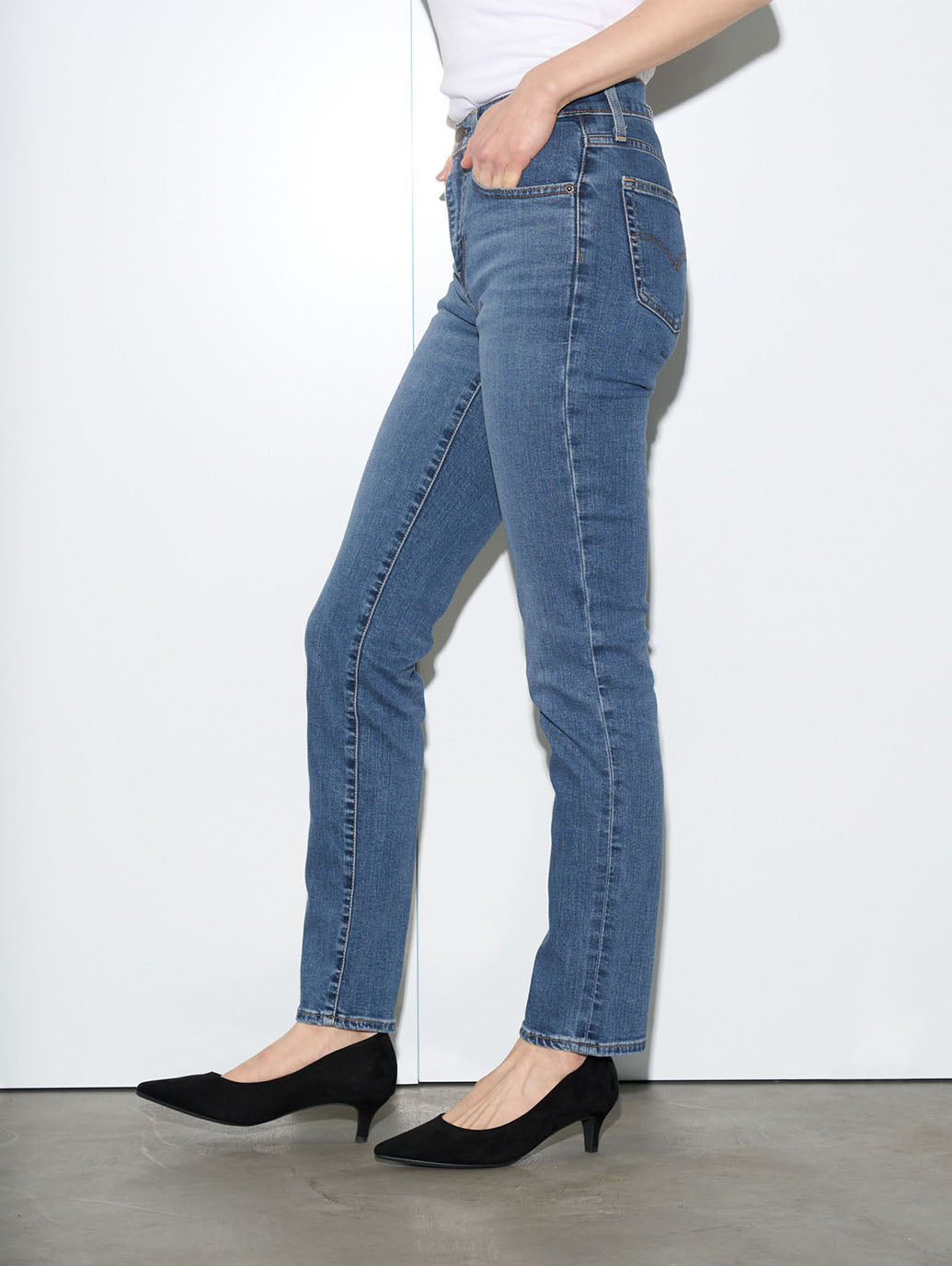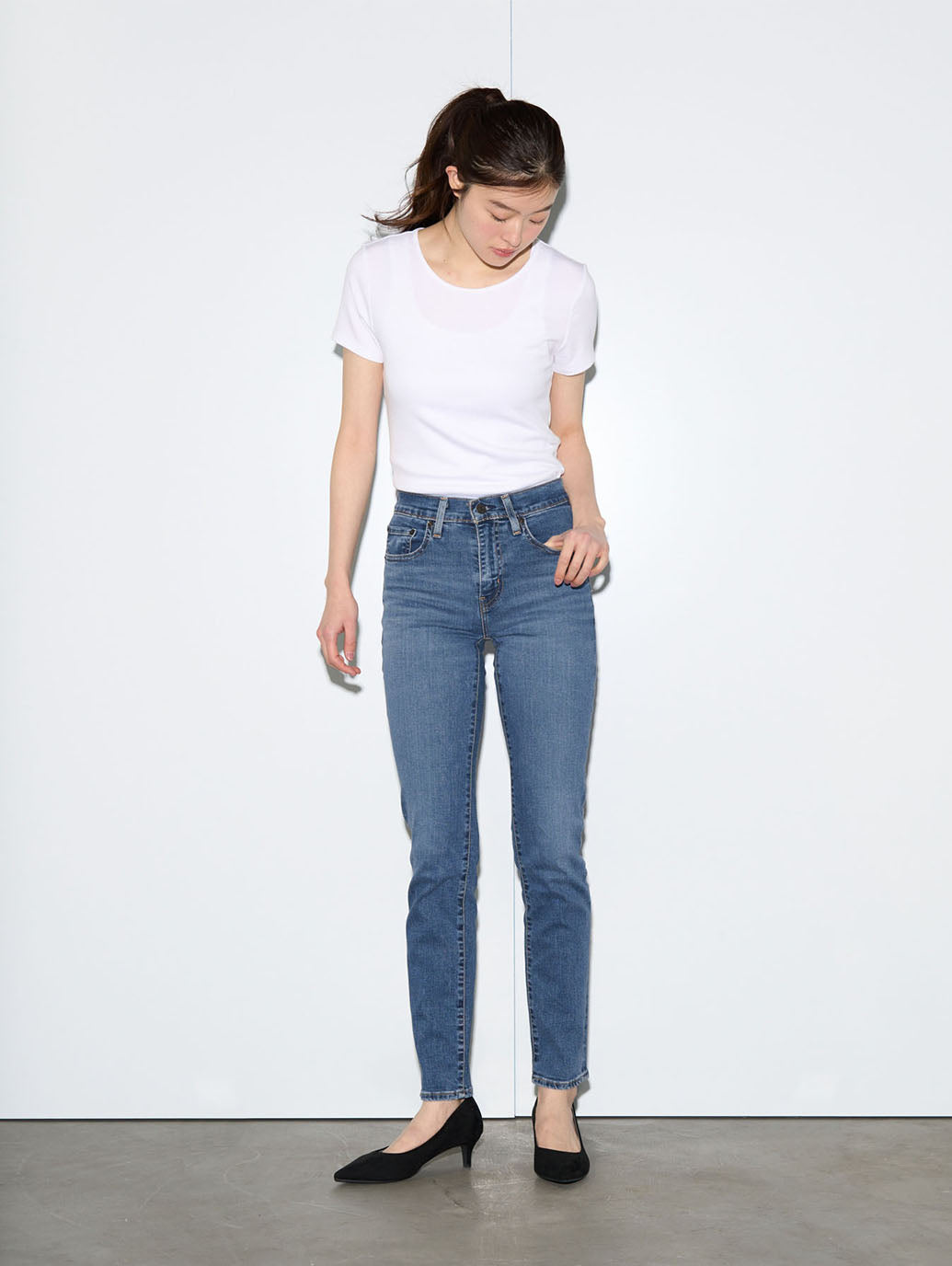 ハイウエストでスリムフィットのストレートシルエットです。一日中穿いていても着心地が良く、ヒップラインをすっきりと持ち上げ、ボディラインを引き立てるようにデザインされています。ストレッチ性の高い素材が採用されており、力のかかるお尻や膝の馴染みが出にくい高品質です。