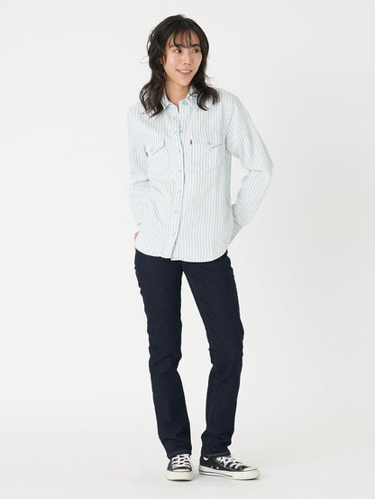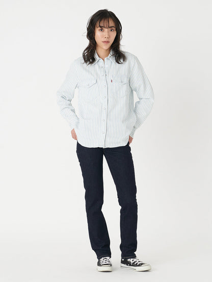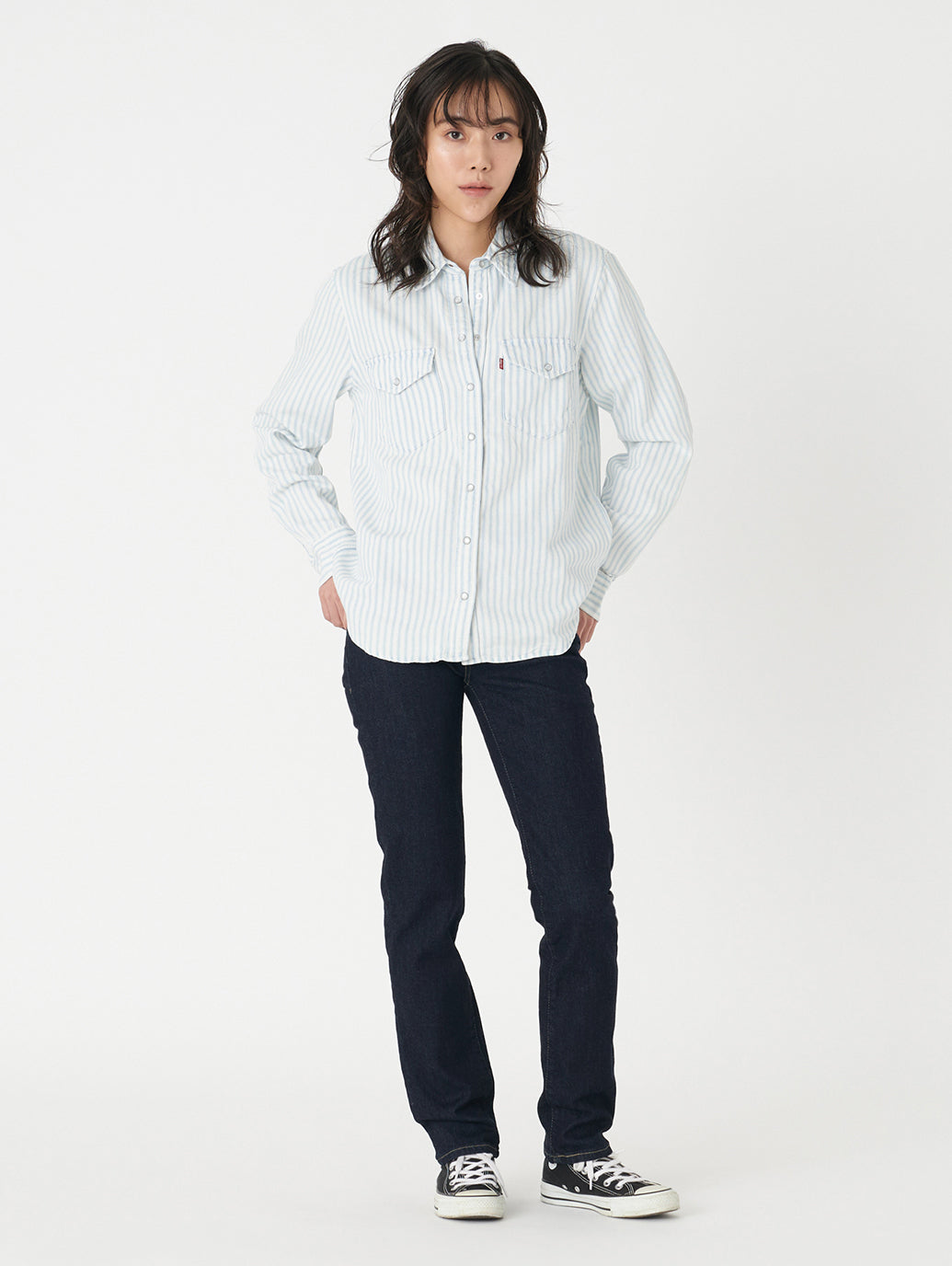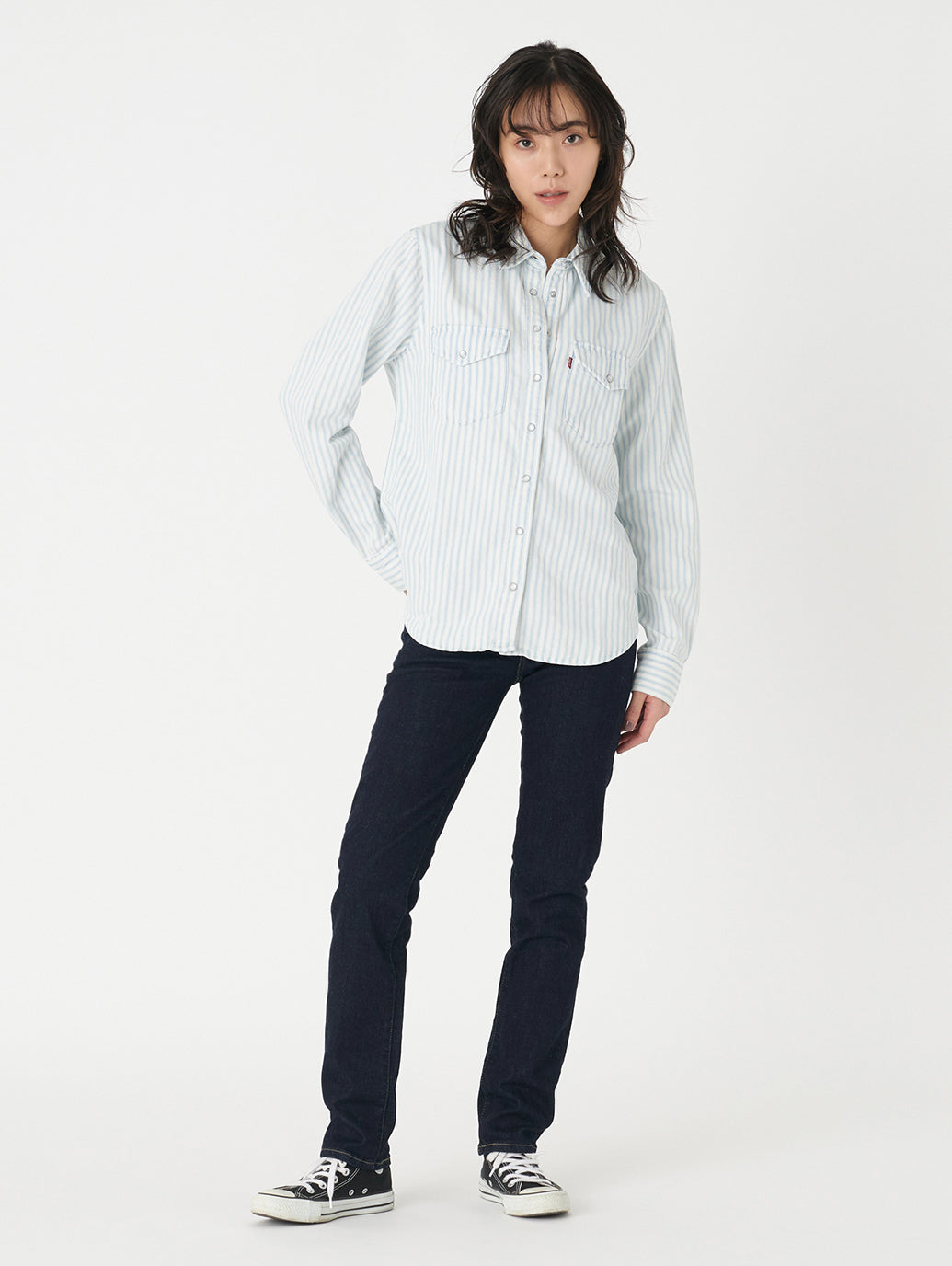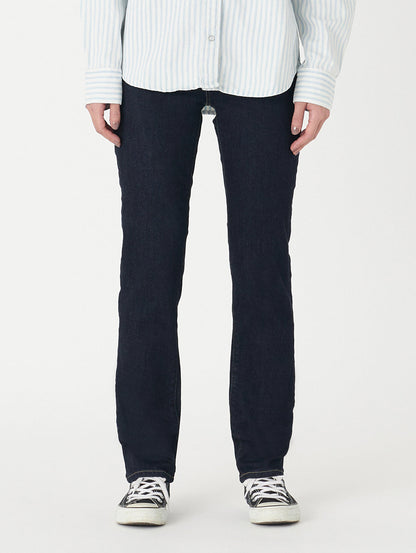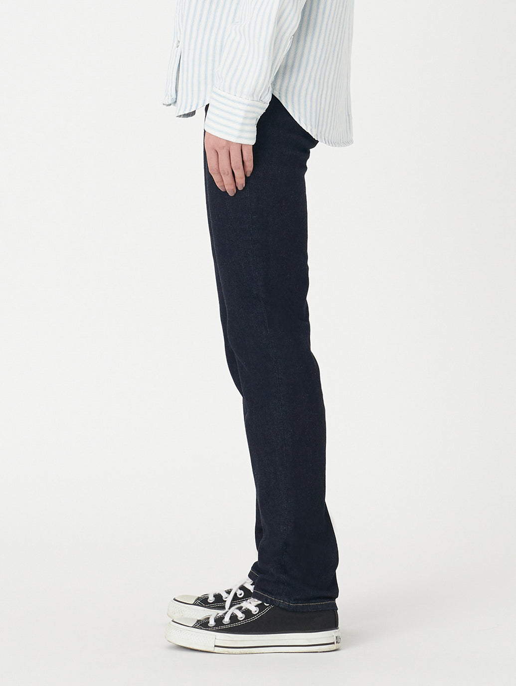 ハイウエストでスリムフィットのストレートシルエットです。一日中穿いていても着心地が良く、ヒップラインをすっきりと持ち上げ、ボディラインを引き立てるようにデザインされています。ストレッチ性の高い素材が採用されており、力のかかるお尻や膝の馴染みが出にくい高品質です。