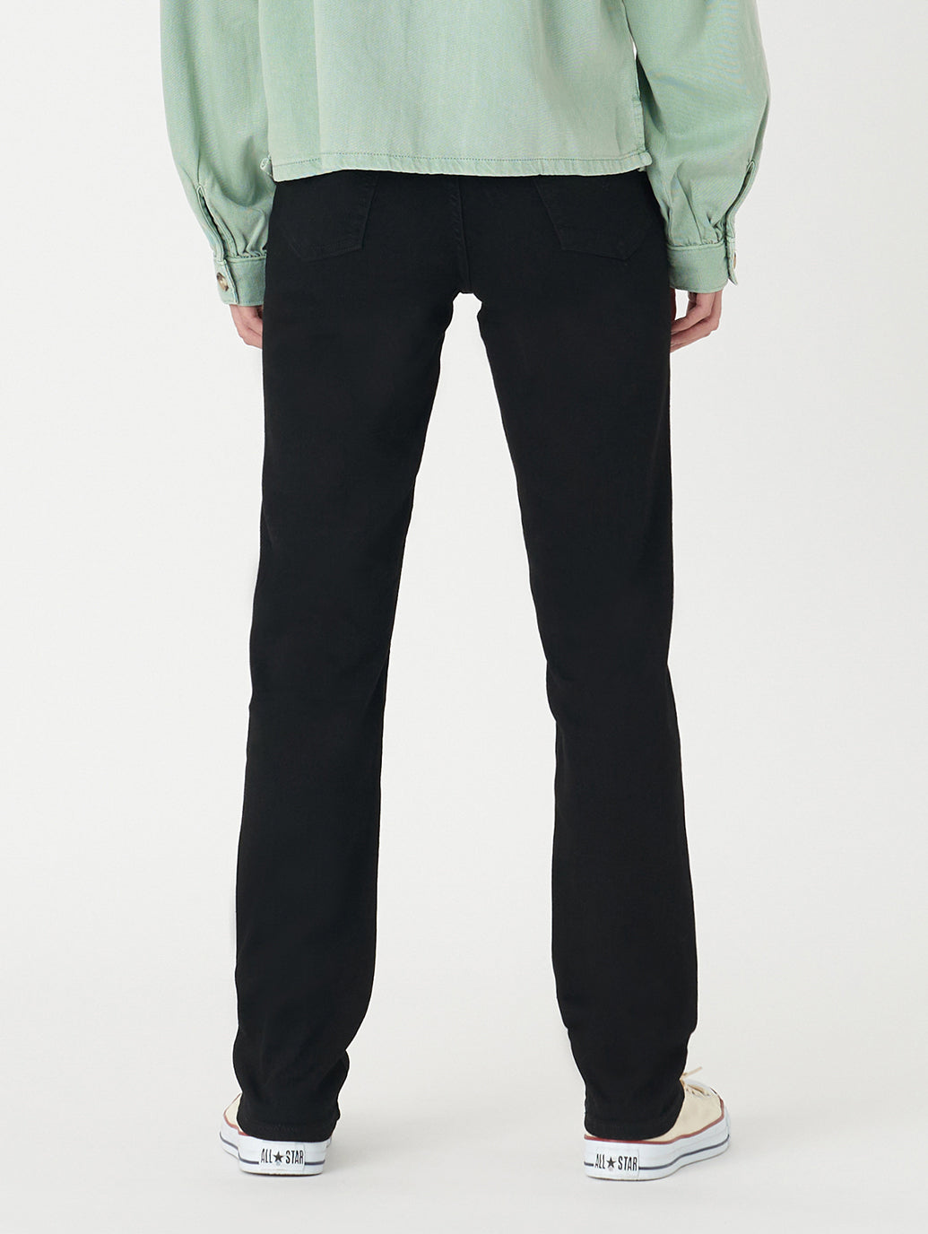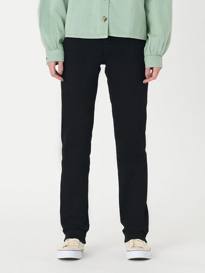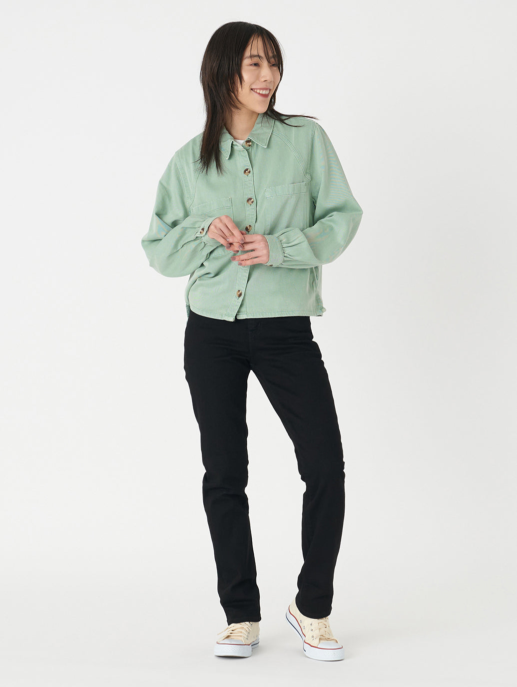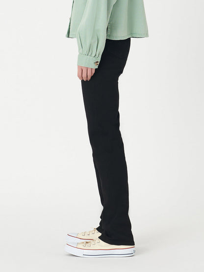 ハイウエストでスリムフィットのストレートシルエットです。一日中穿いていても着心地が良く、ヒップラインをすっきりと持ち上げ、ボディラインを引き立てるようにデザインされています。ストレッチ性の高い素材が採用されており、力のかかるお尻や膝の馴染みが出にくい高品質です。