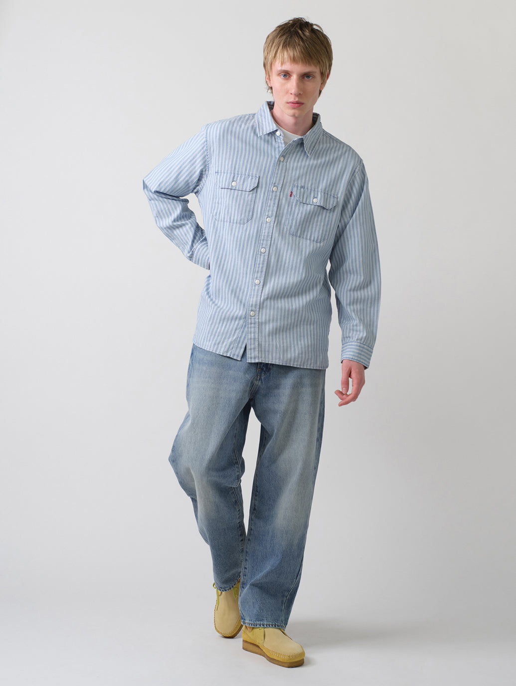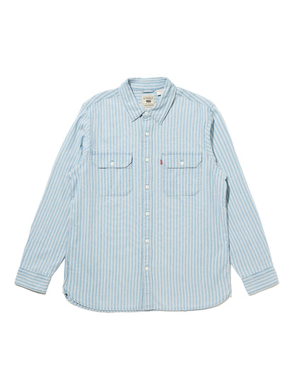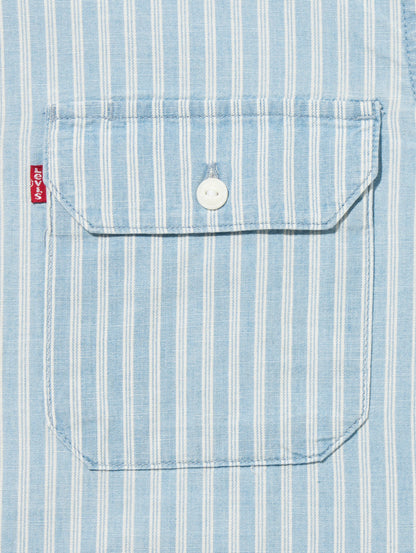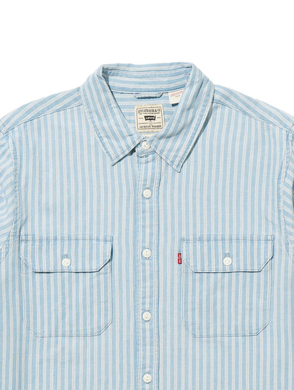 Levi's®の定番アイテムの一つであるジャクソンワーカーオーバーシャツ。クラシック且つ現代のトレンドでもあるボックス型のリラックスシルエットのボディを採用。ユーティリティポケットを備え、機能性も兼ね備えています。ホワイトカラーのライトブルーのストライプ柄で爽やかさ十分な一着です。
