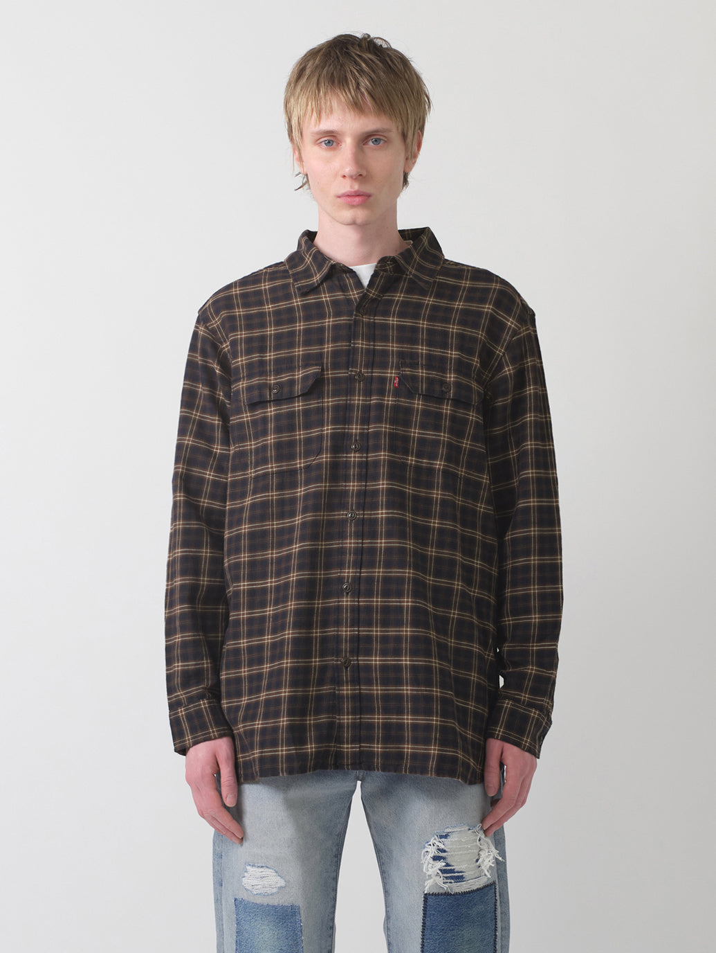 Levi's®の定番アイテムの一つであるジャクソンワーカーオーバーシャツ。クラシック且つ現代のトレンドでもあるボックス型のリラックスシルエットのボディを採用。ユーティリティポケットを備え、機能性も兼ね備えています。ダークネイビーカラーを基調としたチェック柄でいなたさ十分の一着です。