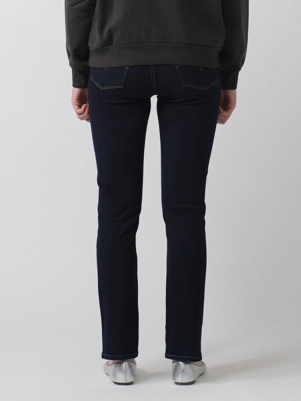 脚を長くし、曲線を包み込み、特徴を引き立ててくれるシェイピングスリム。スリムでありながらもひざ下はストレートなので、タイト過ぎないシルエット、そしてスムーズでサポート力のある軽量でありながら圧縮性のあるフロントパネルを使用して設計されているので履き心地も良いです。合わせやすいリンスカラーで年間通して活躍する一本です。