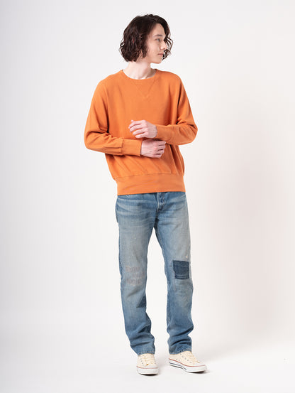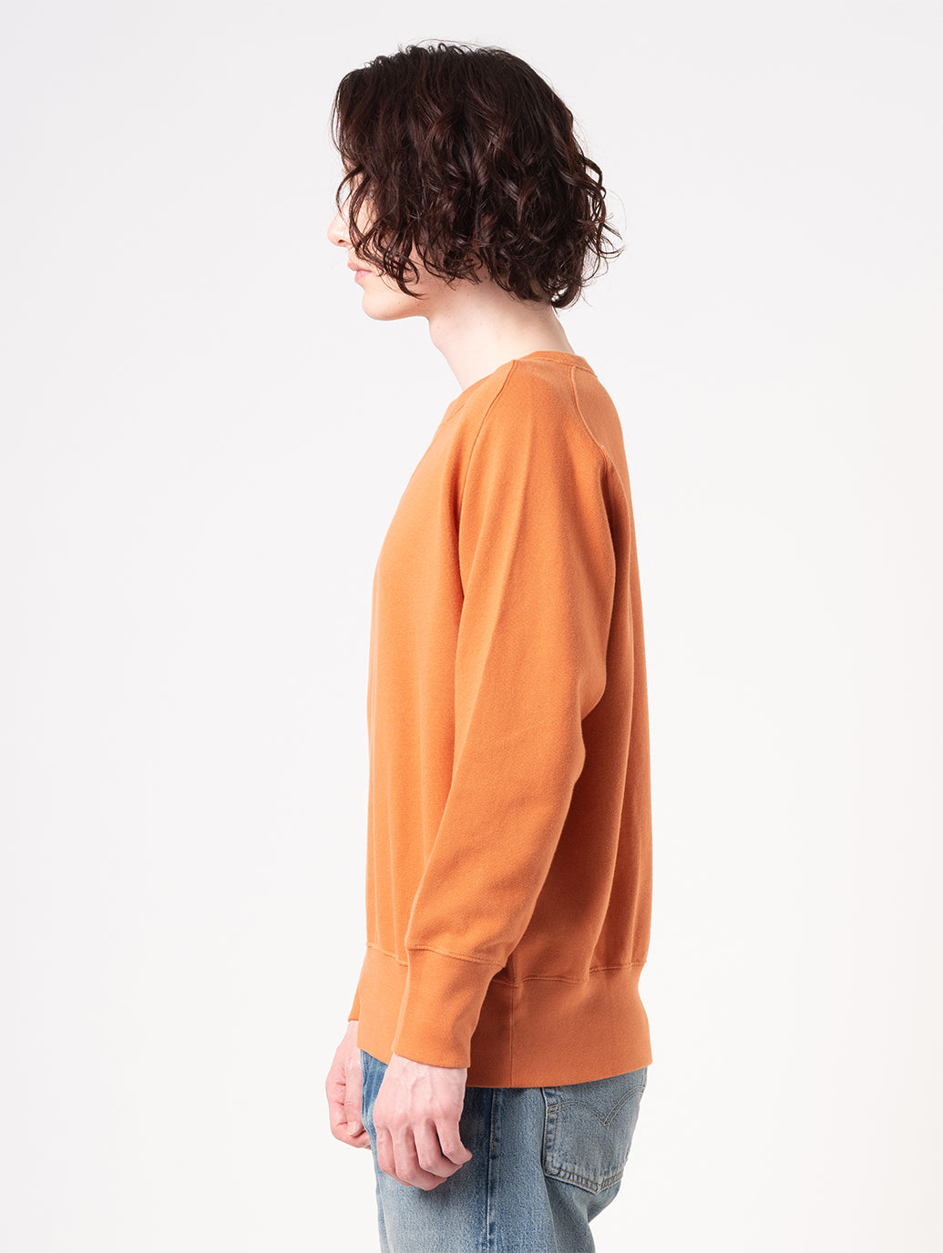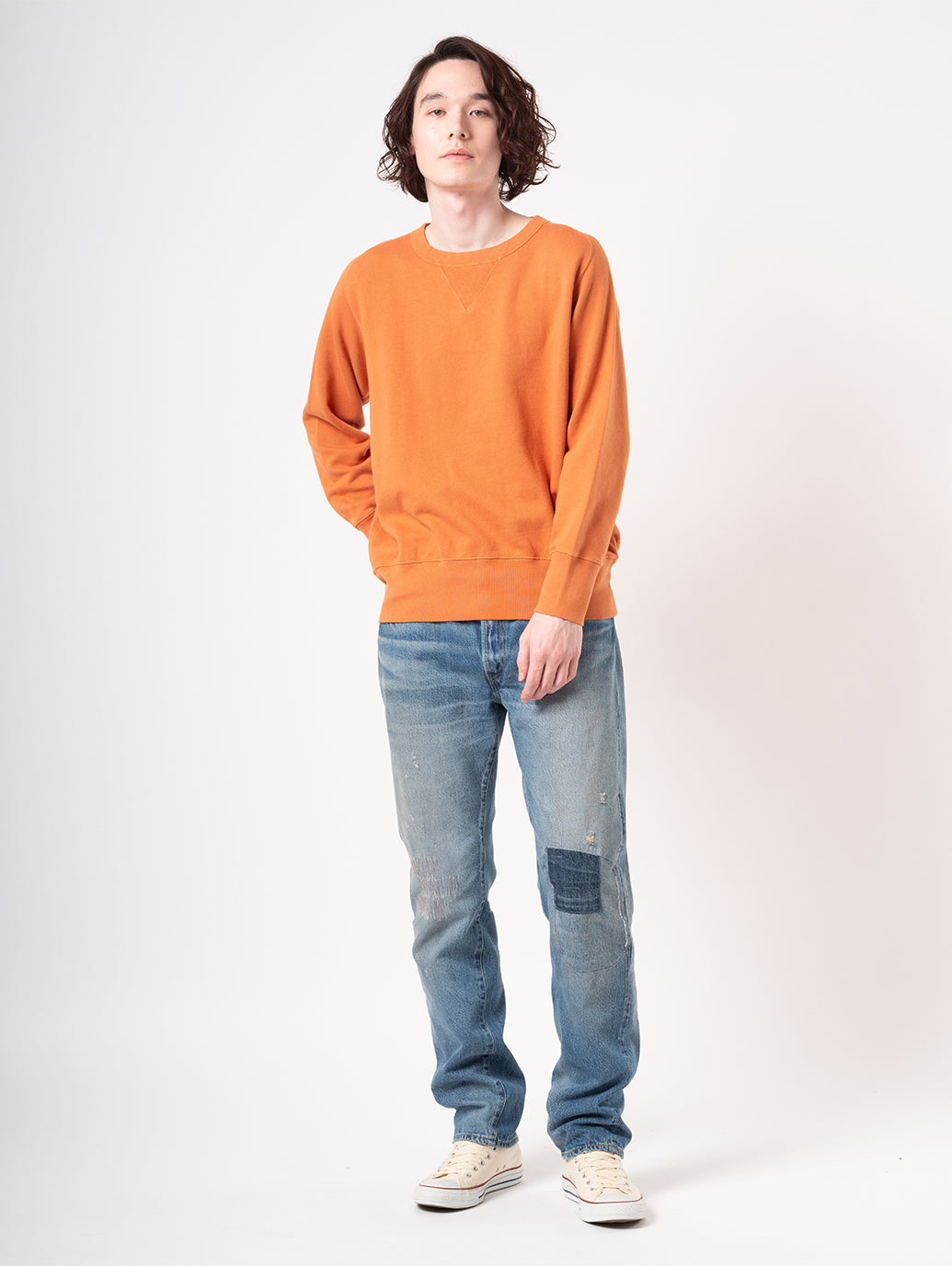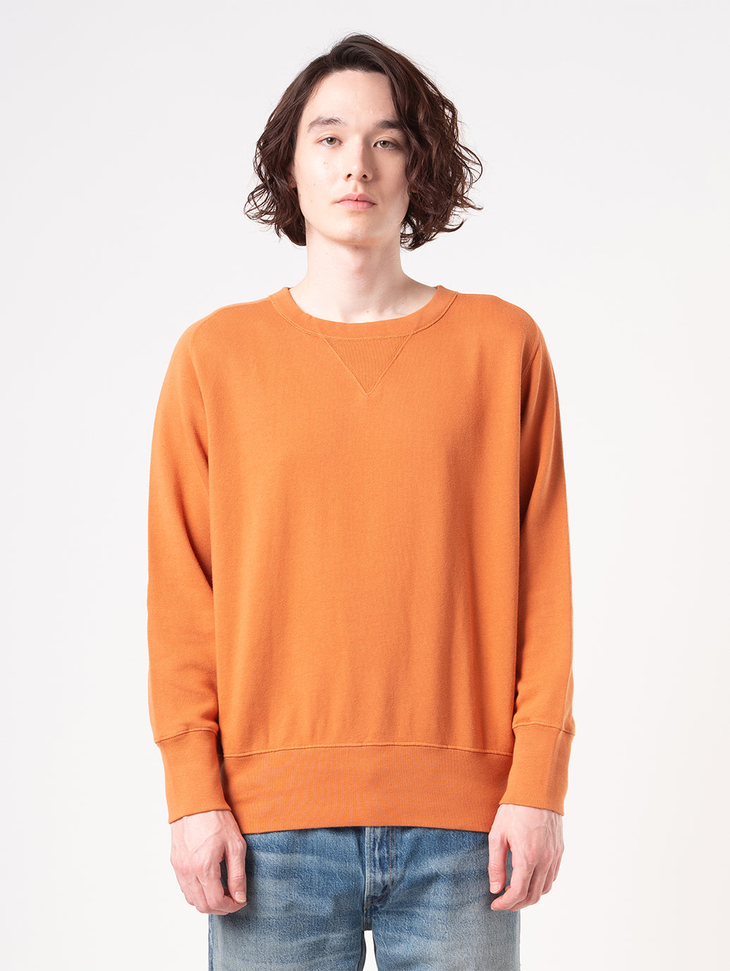 こちらのクルー・スウェットシャツは、1940年代のアーカイブウェアを忠実に再現したもの。ラグランスリーブのカーブした縫い目、フロントとバックのV字型インサート、袖口の超ロングリブなど、さりげないディテールが目を引きます。ライトウェイトで春先でも着やすく、色違いで持っておきたい一着です。