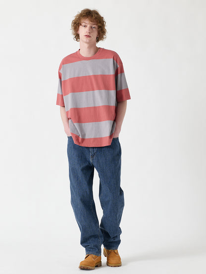 近年の90'sのリバイバルとしてストリート、スケートシーンで着実に知名度が拡がってきているモダンなルーズフィットと着こなしのしやすいクロップド丈が特徴です。その名の通り全体的にゆったりとしたシルエットで全体的にルーズな印象が強いですが、通気性や速乾性にも優れているリネン混の生地のミッドユーズドカラー、通常よりも弛みが出にくい短めなレングスなのでジャケットやシャツ、革靴などフォーマルアイテムとの相性も良い一本です。