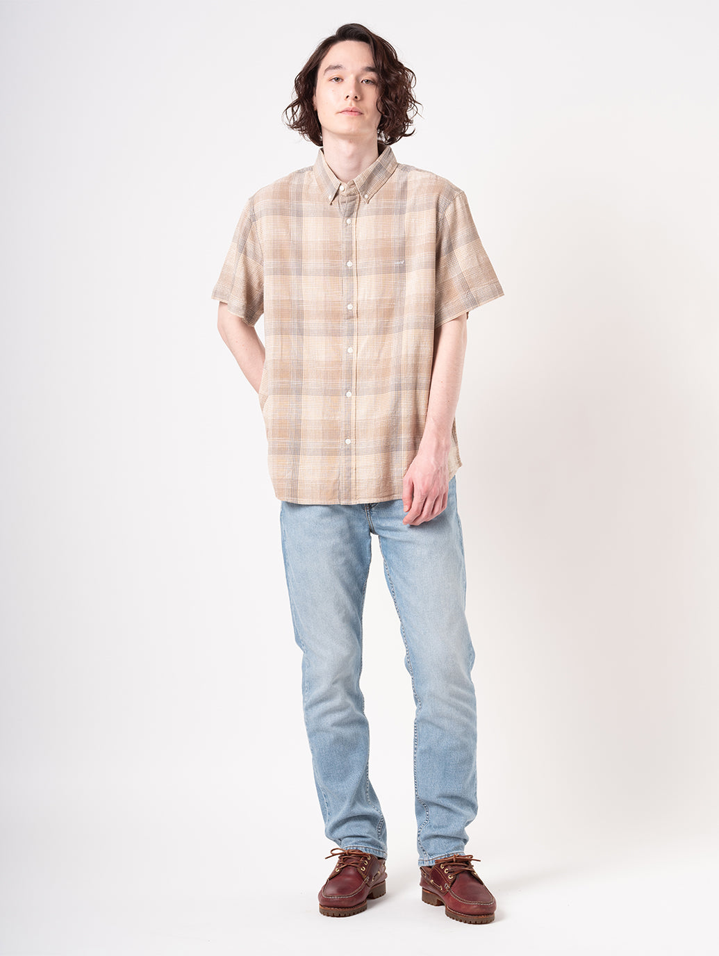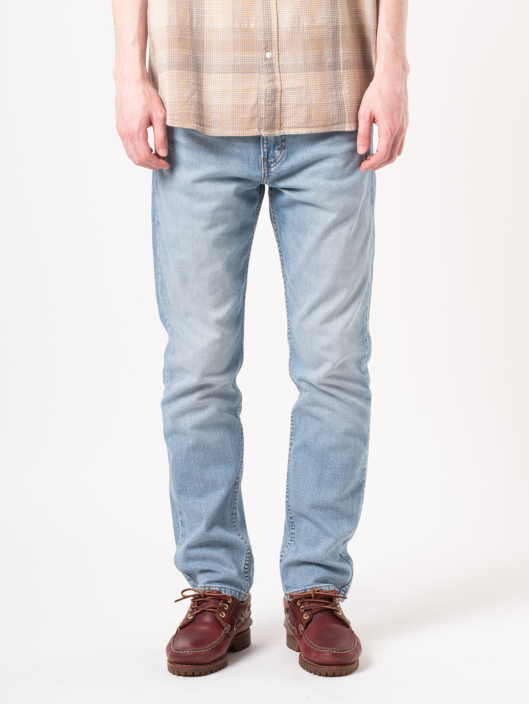 リーバイス®のベーシックシルエットで、元々は1967年に東海岸のスタイリッシュな人たちに向けてつくられたという歴史を持つフィット。裾に向かって細くなるキレイめなテーパードシルエット、程よい深さの股上が特徴です。適度にゆとりのあるシルエットに加えてストレッチを素材配合した綿99%ポリウレタン1%の生地は伸縮性もありながらも耐久性も兼ね備えています。爽やかなライトカラーなので春先にもお勧めの一本です。