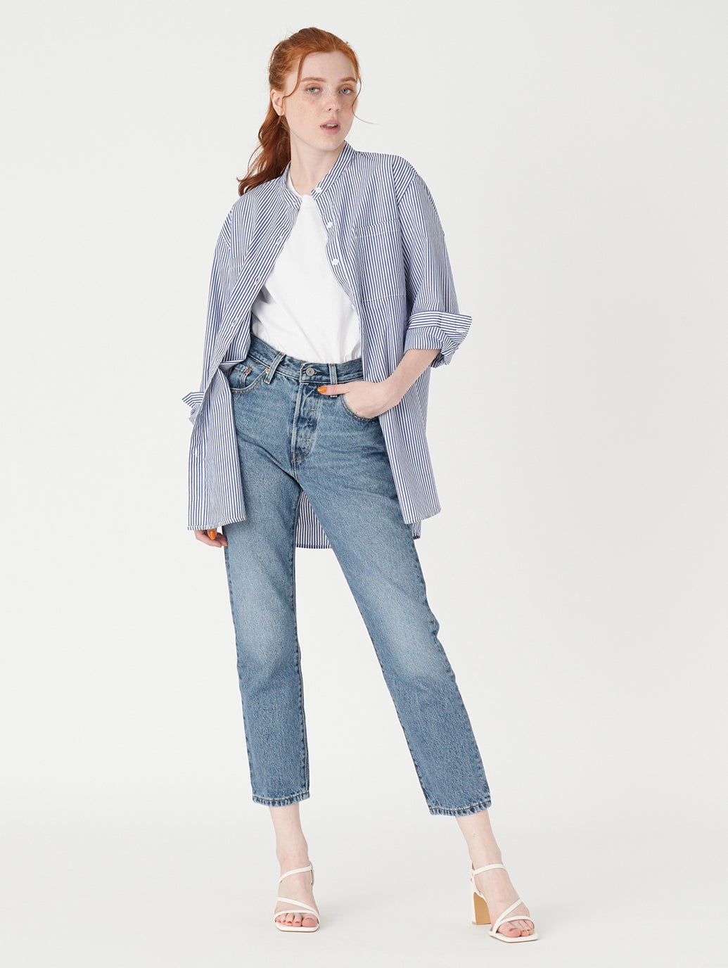クラシックなストレートレッグとアイコニックなスタイリングの501®はジーンズの原型とも言われてきました。お腹周りをすっきり見せてくれるボタンフライが特徴の501®。 1890年にロットナンバーとして「501」が初めて商品に付けられて以来、たくさんの人々に愛され続け、その人らしさを表現する究極のアイテムの一つとして今も人気のジーンズです。100%コットン素材のクロップド丈のシルエットを今年らしいライトのカラーでデザインされました。同系色のライトカラーのトップスで合わせたり、一年中使える万能アイテムです。