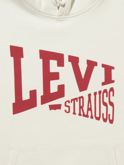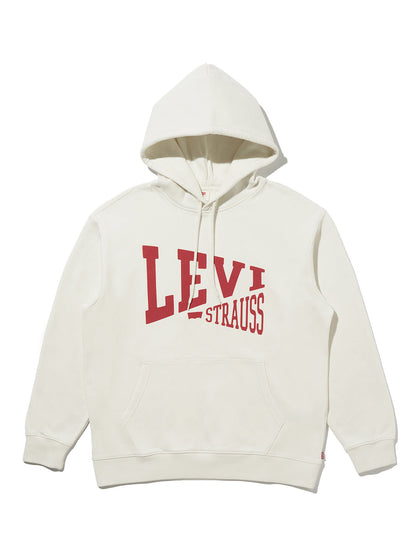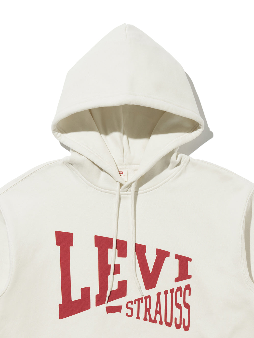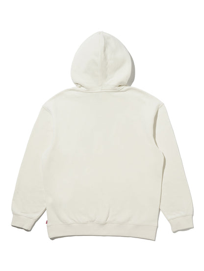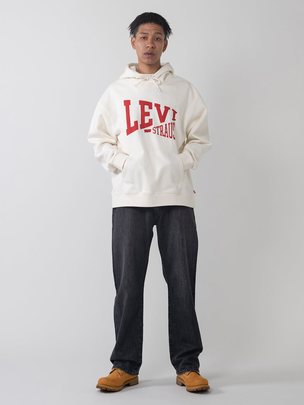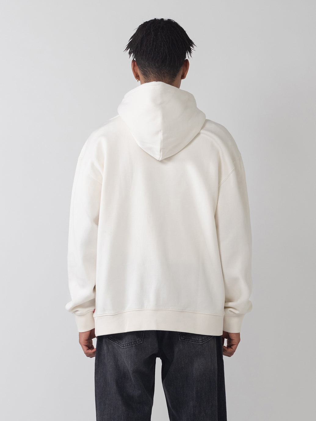 リラックスフィットを採用したグラフィックパーカー。ホワイトカラーのボディのフロントに大胆なロゴをあしらったインパクトのあるデザインです。秋冬シーズンはインナーとして、春先には主役として活躍する一着です。