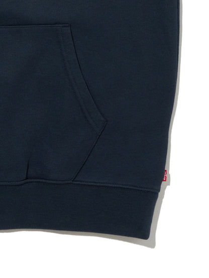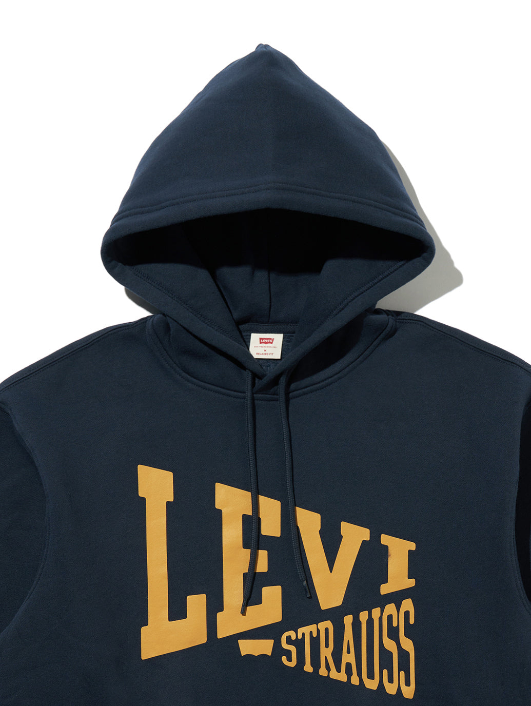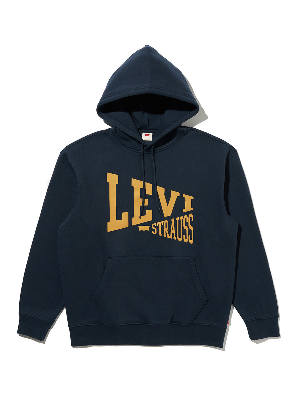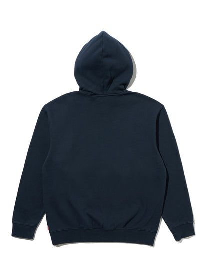 リラックスフィットを採用したグラフィックパーカー。ネイビーカラーのボディのフロントに大胆なロゴをあしらったインパクトのあるデザインです。秋冬シーズンはインナーとして、春先には主役として活躍する一着です。