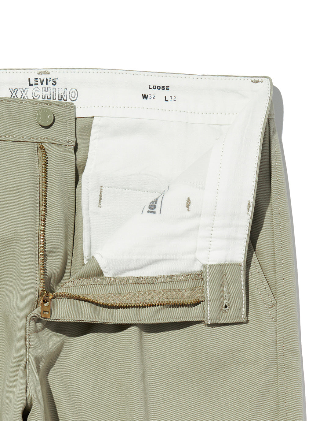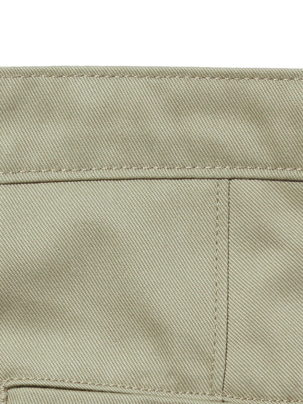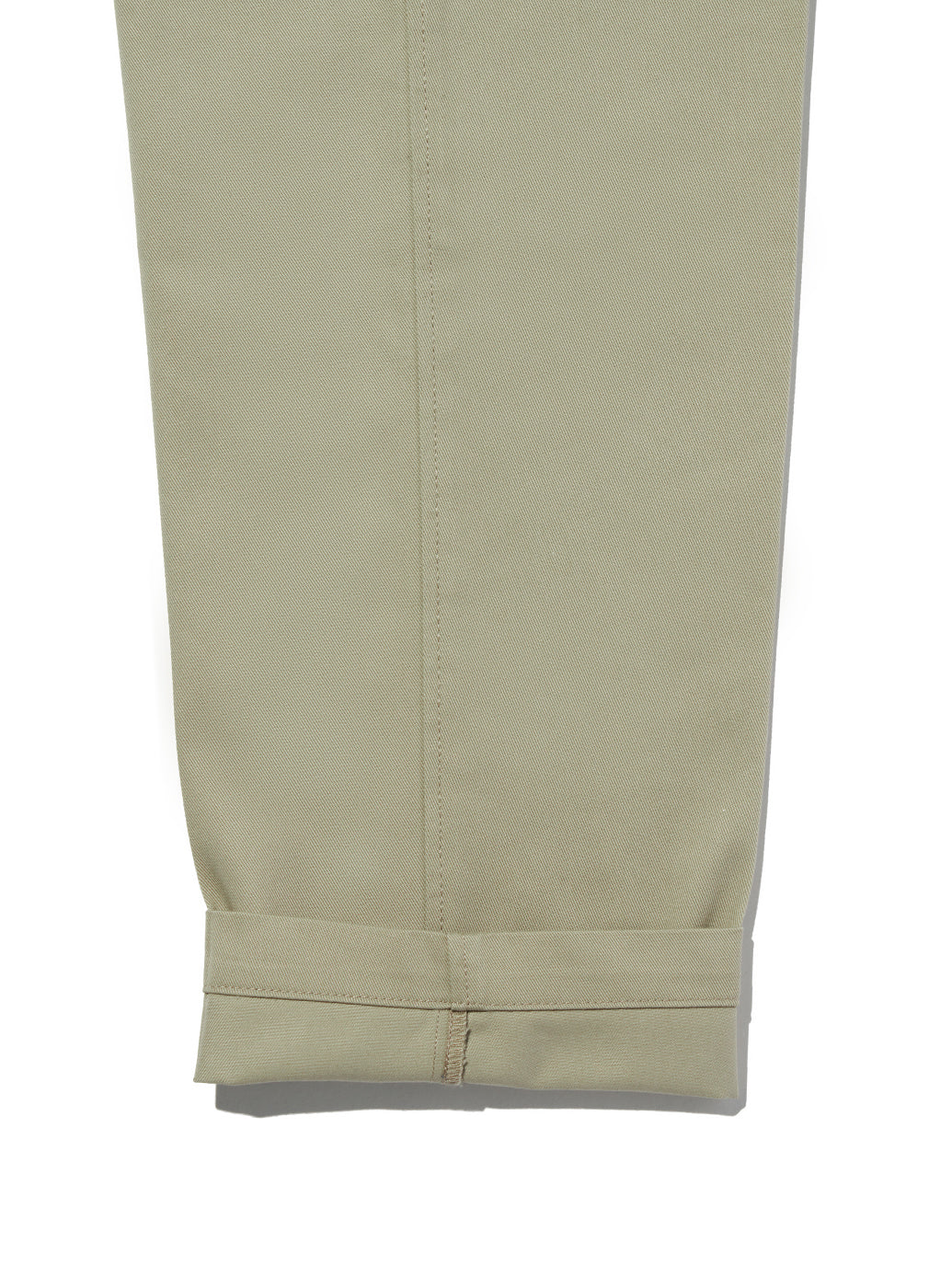 ストレートレッグのソフトなパンツで、腿にかけてきれいなレギュラーフィットスタイルに90年代風のルーズフィットを組み合わせたハイブリットなシルエットです。ポリエステル65%綿135%の生地、ベージュカラーでシンプルなトップスと合わせておしゃれ感が出ます。