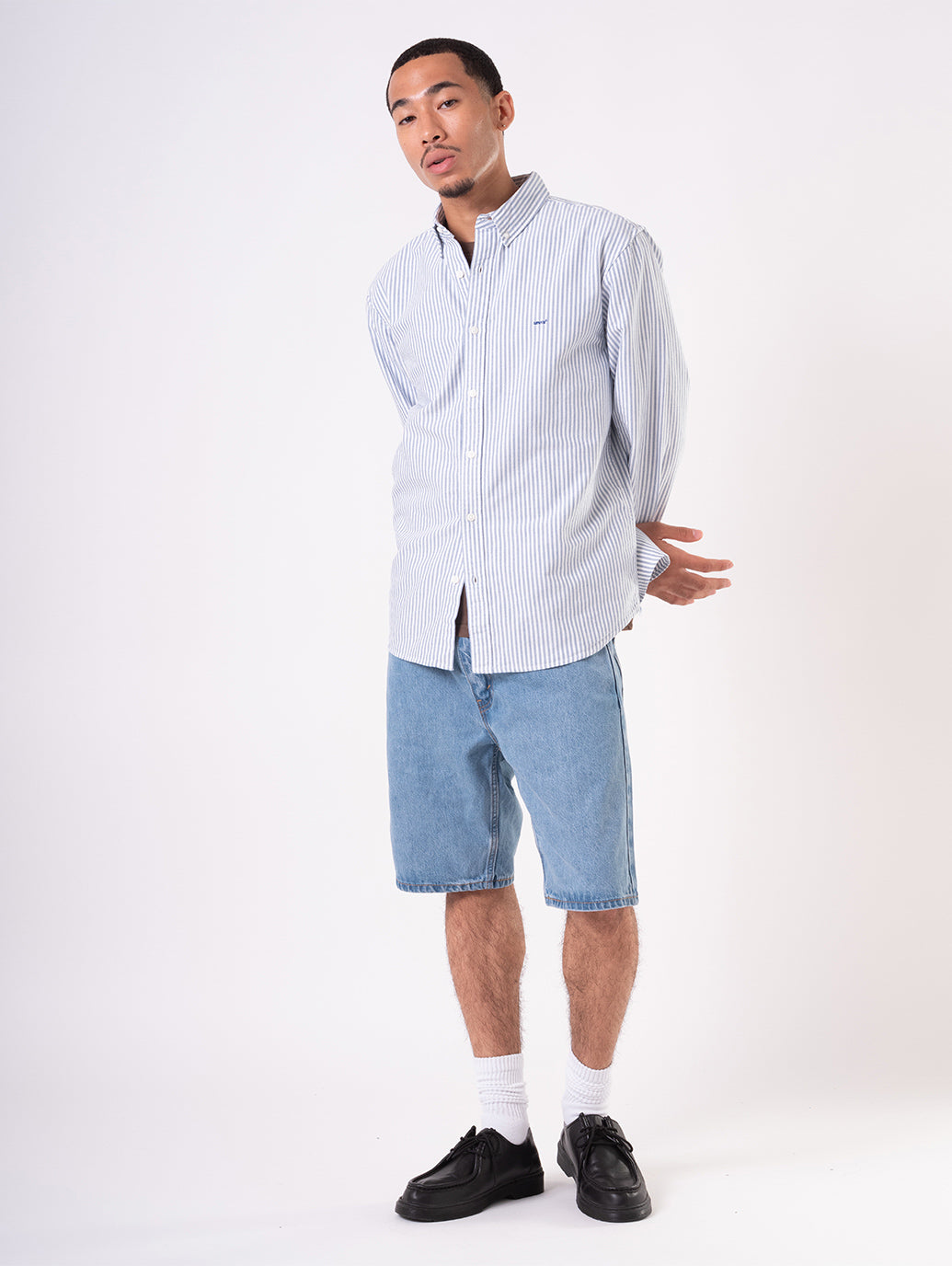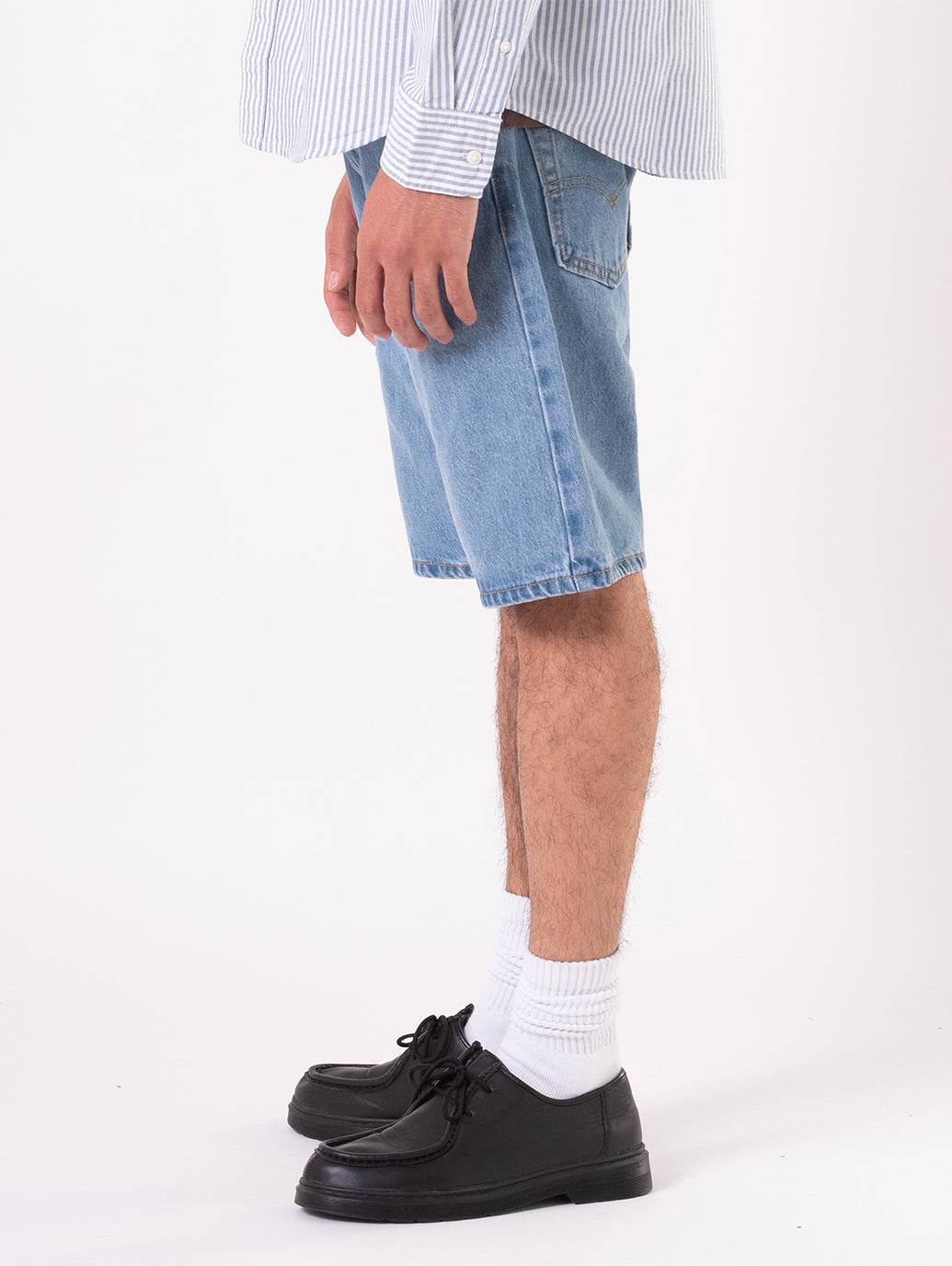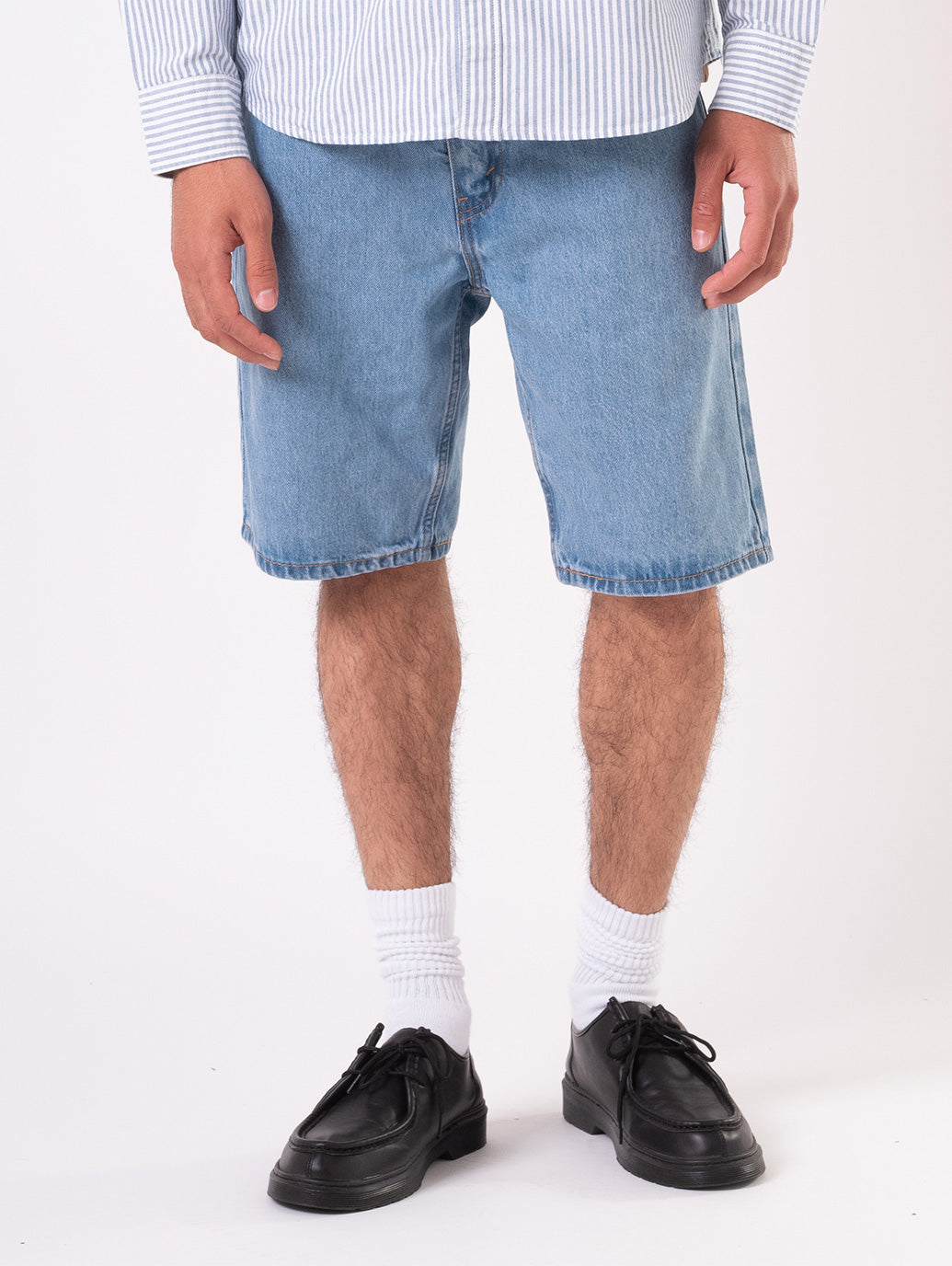 暑い時期に履きたくなる流行りすたりがないスタンダードフィットのデニムショートパンツ。余分なデザインをそぎ落としたシンプルなデザイン。綿100%でしっかりとした生地感。一着はもっておくと便利なアイテムの一つです。