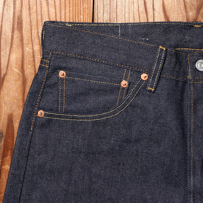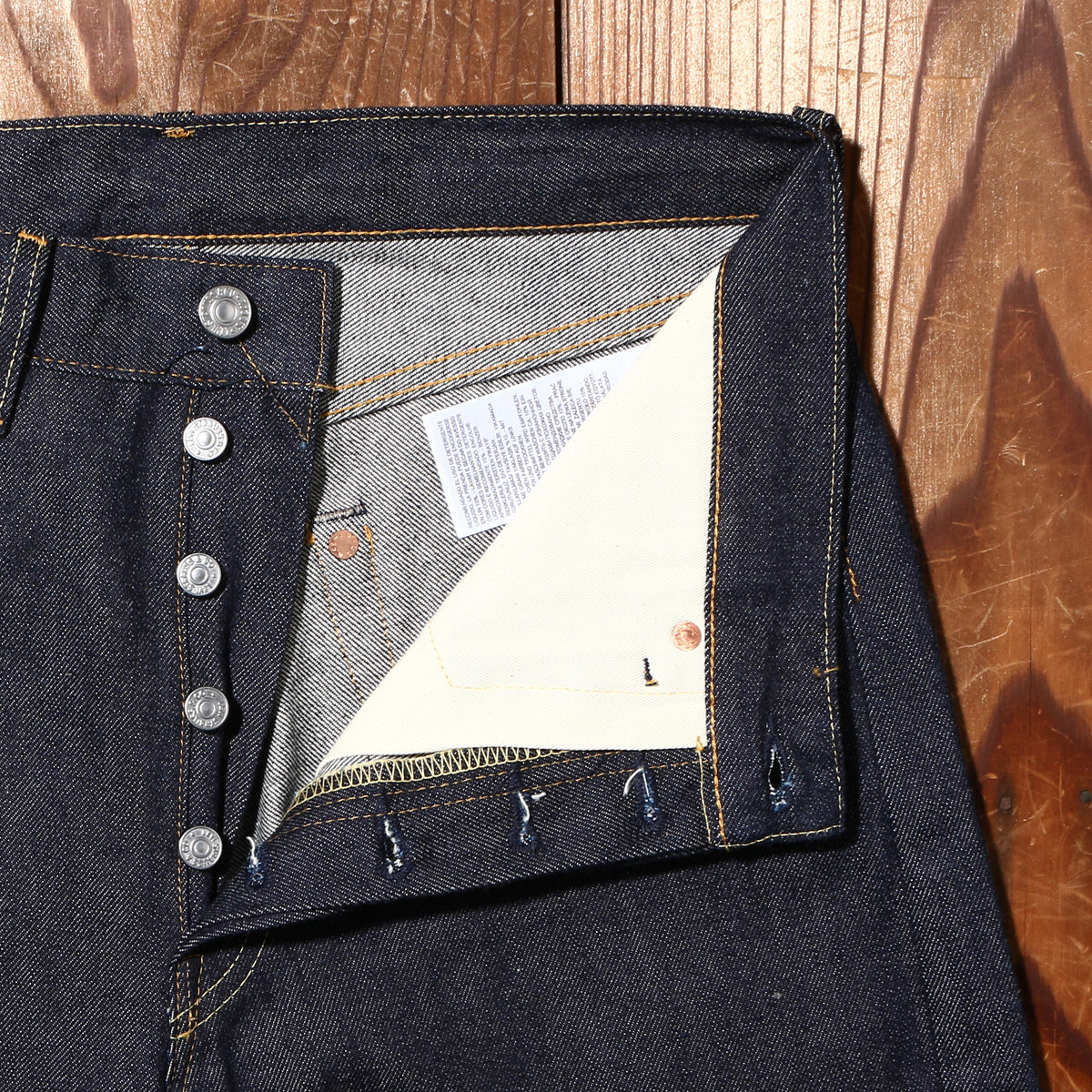 クラシックな1950年代のバイカースタイルを代表するジーンズは、腰回りはあえてフィットさせず、レッグ部分を大きめにカットした、角ばったシルエットが特徴です。(レザーの代わりに)レザーを模した紙製のTwo Horse Pullが初めて導入されたのもこのジーンズでした。未加工のアンウォッシュドデニムを使用し、タフで丈夫な風合いを生み出しました。