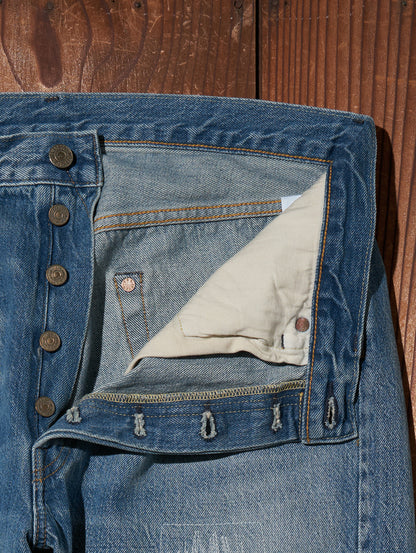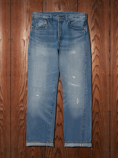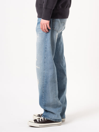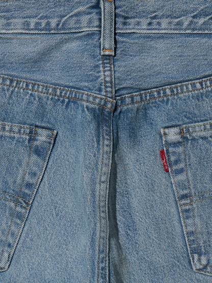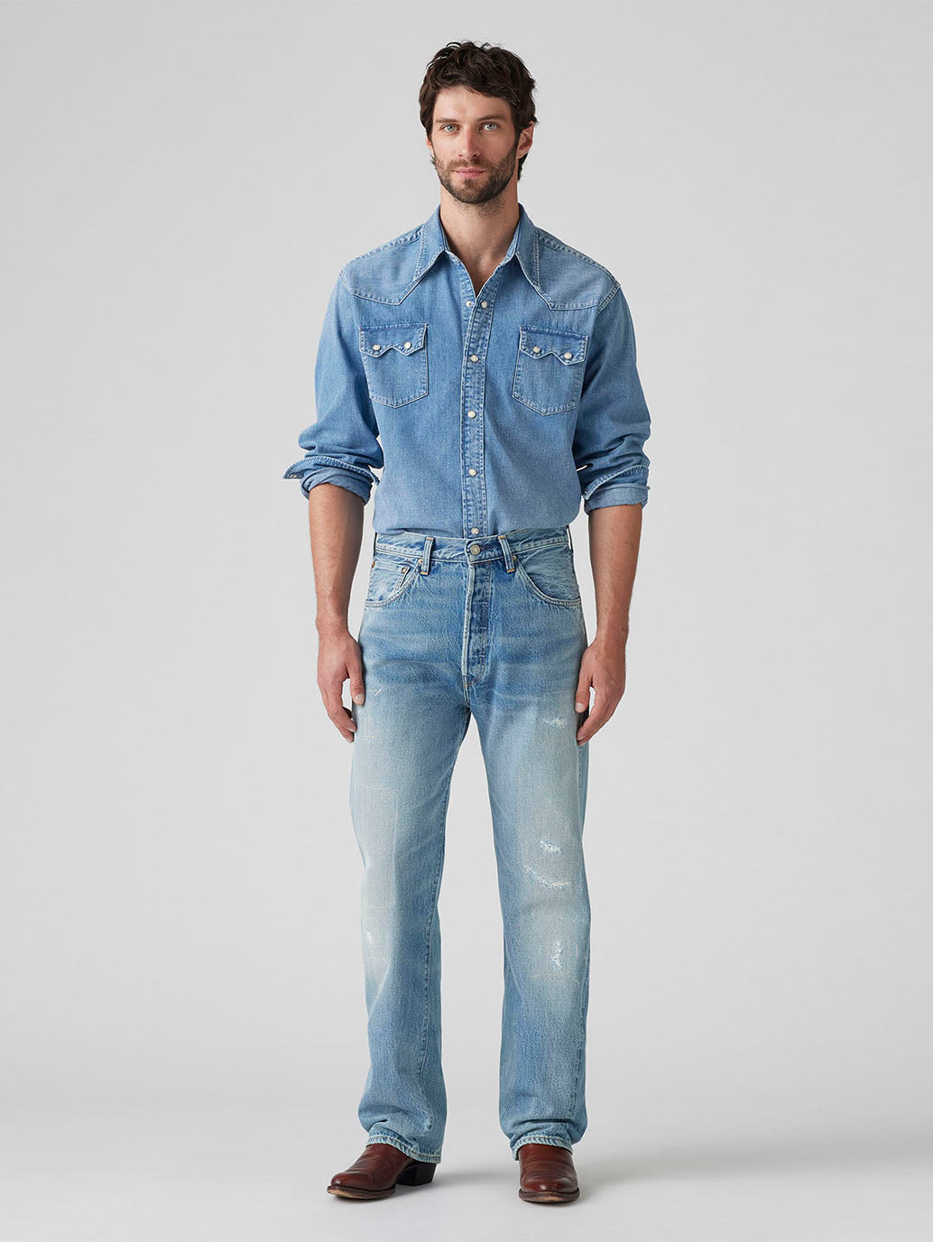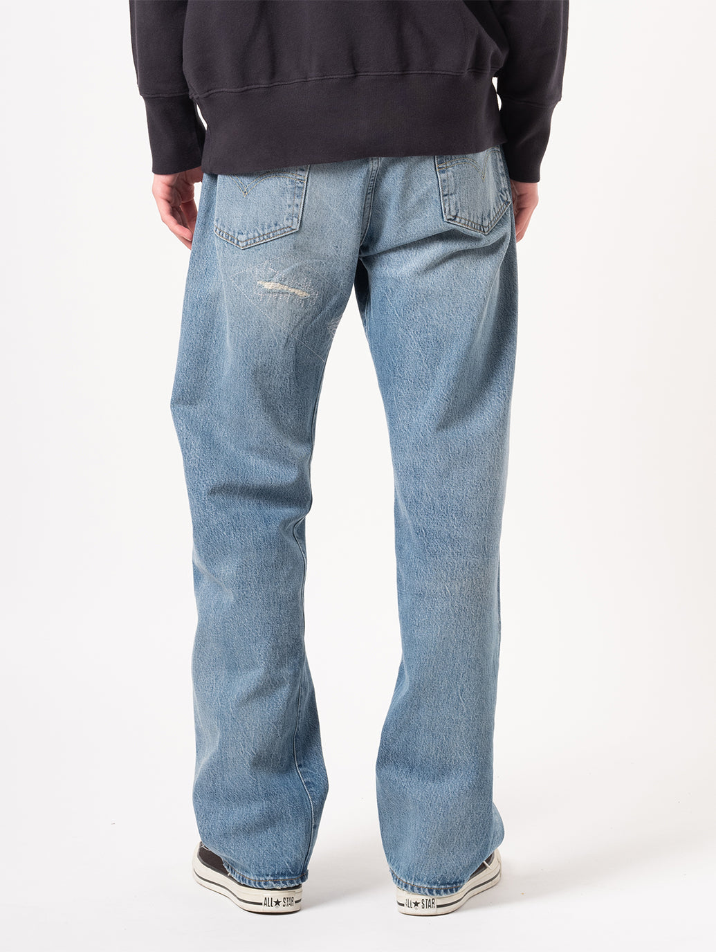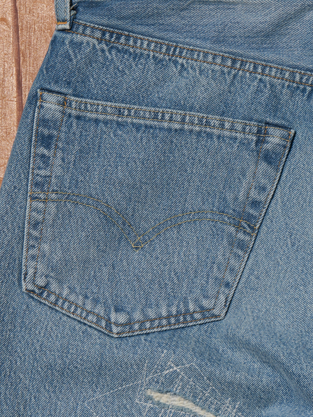 50 年代の究極のスリルを求めるバイカーへのオマージュ。当社の 1955 501® ジーンズは、シート部分に独特の「アンチフィット」 (スリムやスキニーなスタイルに対抗するわずかに緩めのカット) があり、脚周りのカットがやや大きめで、全体的にボクシーなシルエットになっています。裾を少しロールアップをして穿くスタイルがお勧めです。リペア加工を施し、ヴィンテージのような粗さのある生地感と色落ちを表現した拘りの詰まった一本です。