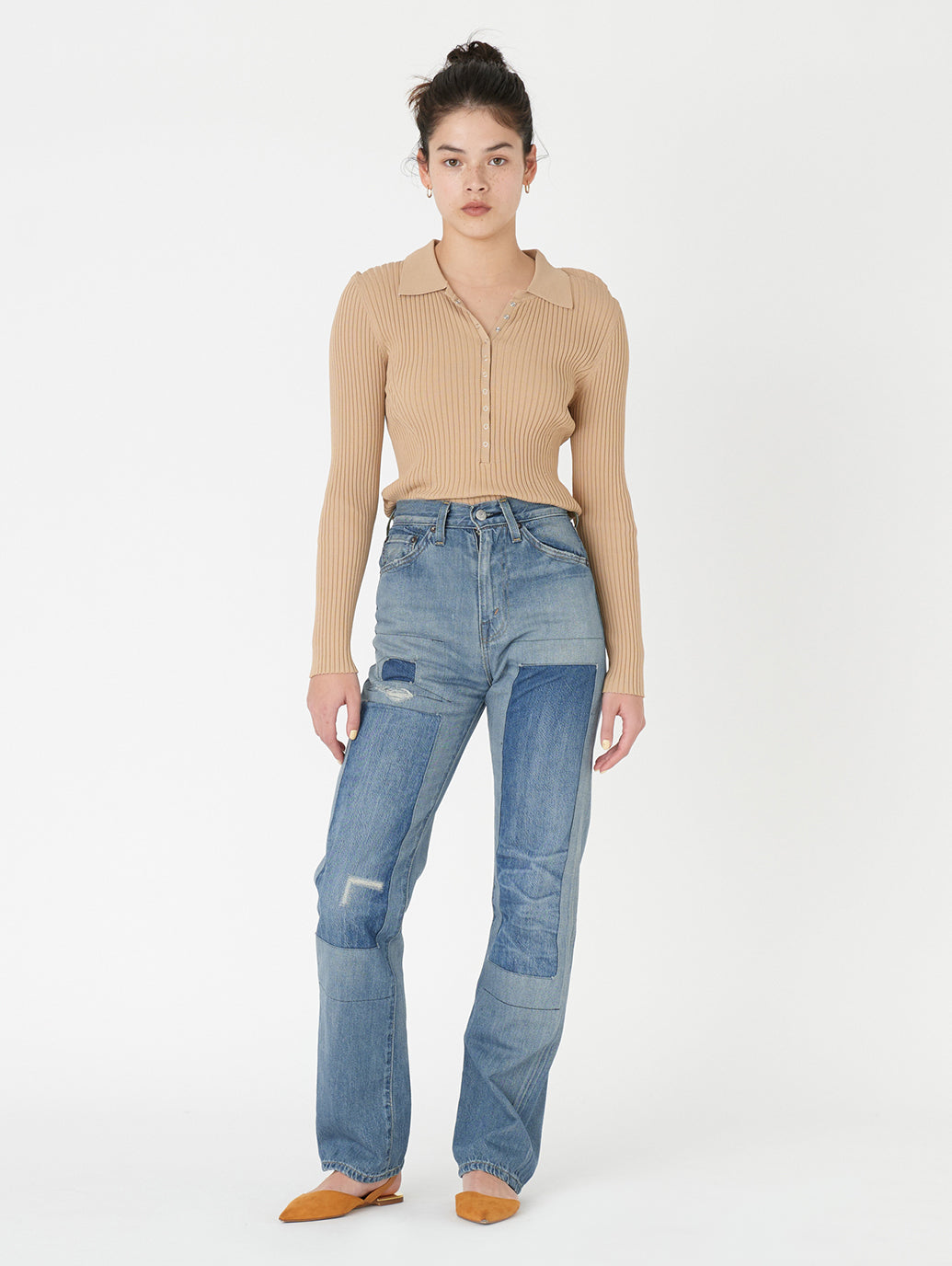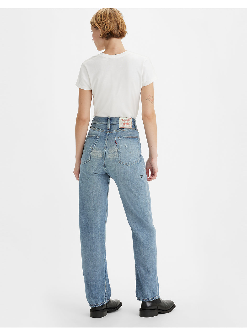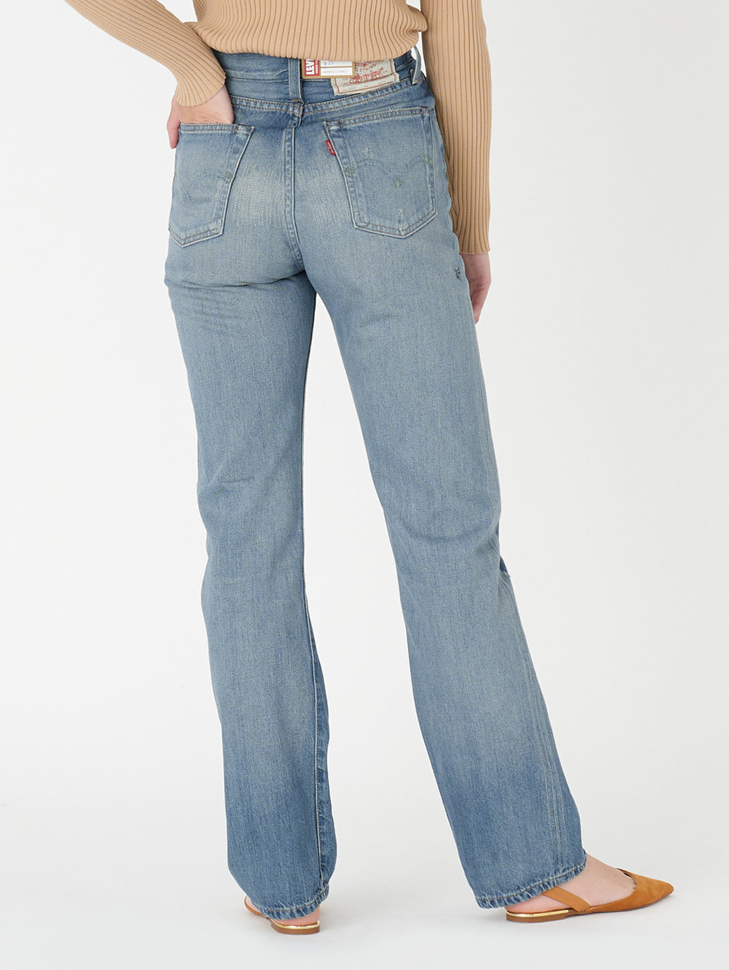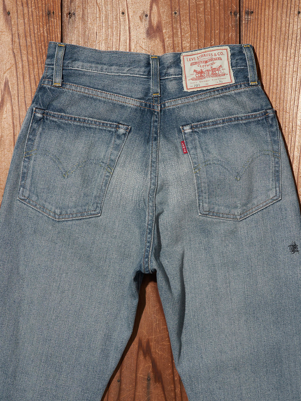 1934年、Levi's®は初めて、5つのポケットを付けた女性用のジーンズ、701®をつくりました。当時のアメリカの高級ファッション誌によって有名になった701は際立ってハイウエストで曲線的なフィットのジーンズでした。 最高級セルビッジデニムを使用し、ファッション誌も認めたスタイルを忠実に再現しています。ヒップからウエストにかけて包み込むようにデザインされておりカービーなラインを作りだしてくれます。個性が際立つデザインで人とはちょっと違うスタイルを演出してくれます。個性が際立つ一本です。