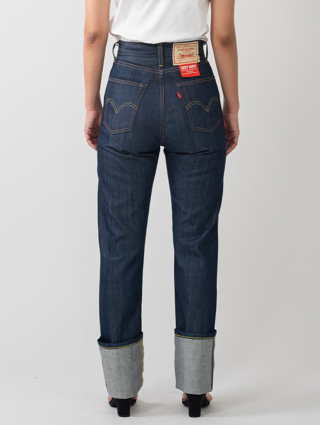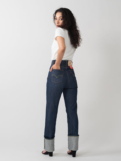 1934年、Levi's®は初めて、5つのポケットを付けた女性用のジーンズ、701®をつくりました。当時のアメリカの高級ファッション誌によって有名になった701®は際立ってハイウエストで曲線的なフィットのジーンズでした。 最高級セルビッジデニムを使用し、ファッション誌も認めたスタイルを忠実に再現しています。ヒップからウエストにかけて包み込むようにデザインされておりカービーなラインを作りだしてくれます。個性が際立つデザインで人とはちょっと違うスタイルを演出してくれます。個性が際立つ一本です。