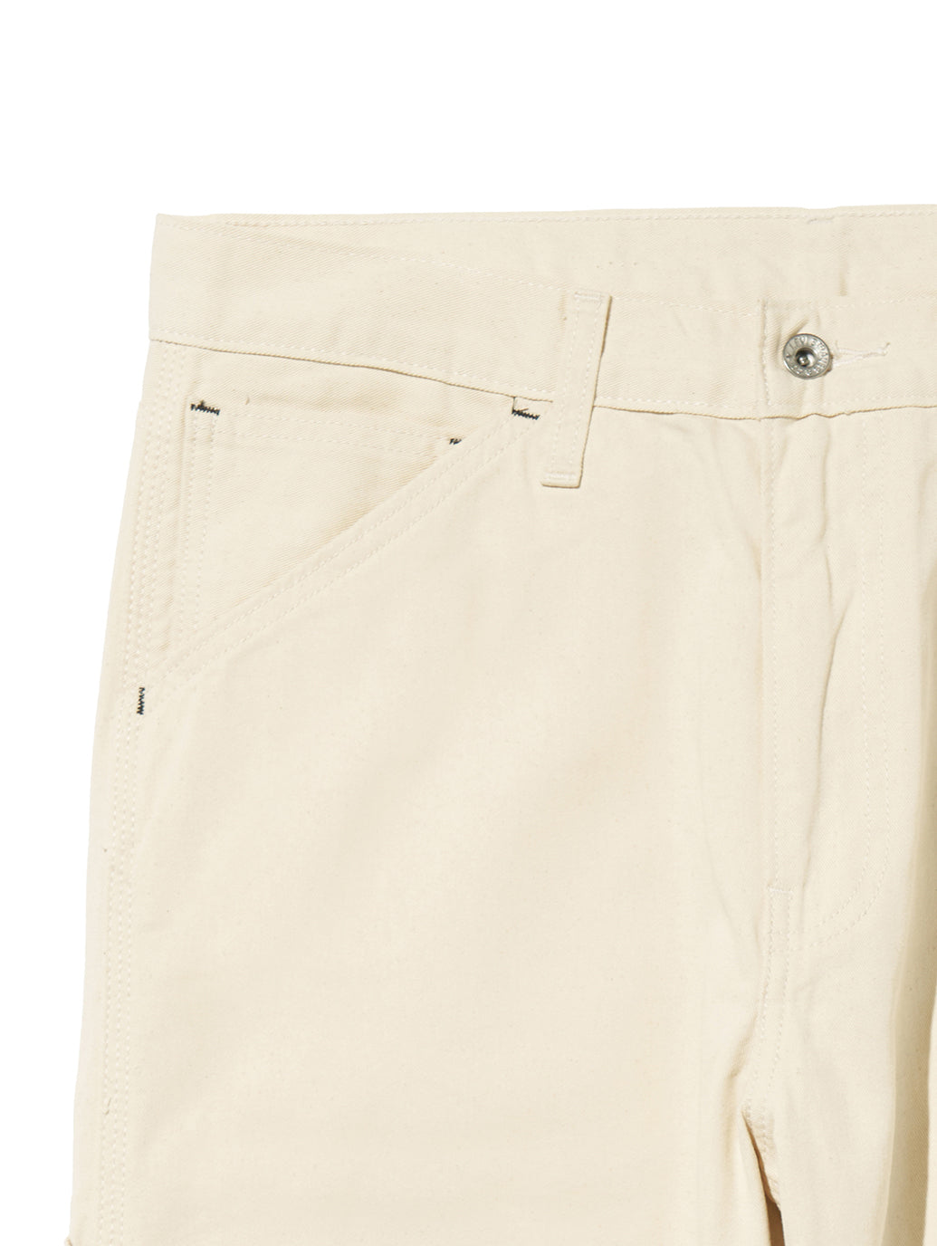 両サイドには工具入れ用としてのツールポケットも配し、丈夫な綿100%の生地でカーペンターパンツの特徴をしっかりと落とし込んでいます。モダンで全体的にルーズなフィットとオフホワイトカラーも特徴で、意外と幅広い着こなしに馴染んでくれる一本です。