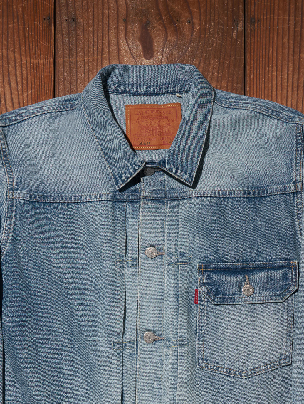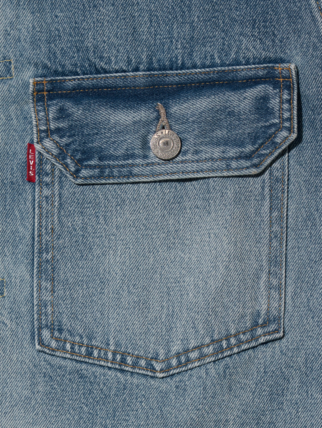 オリジナルに忠実に、このジャケットには、ダブルのプリーツが入った前面、シングルの胸ポケット、露出した銅のリベット、調節可能なフィットのための銅製のプロングが付いたシンチバックなど、特徴的なディテールが施されています。1936年は、Big ""E"" Red Tab™ が Levi's® 製品に追加された最初の年でもあります。