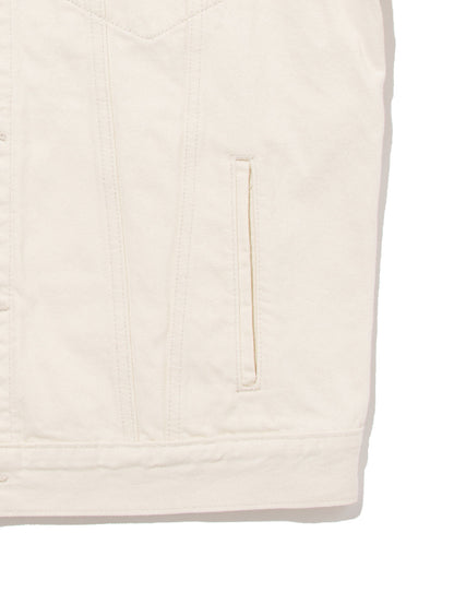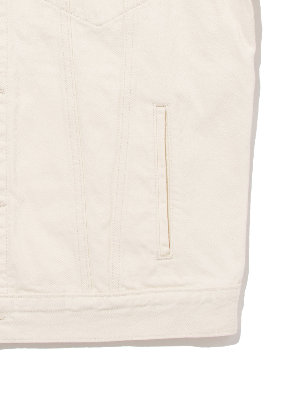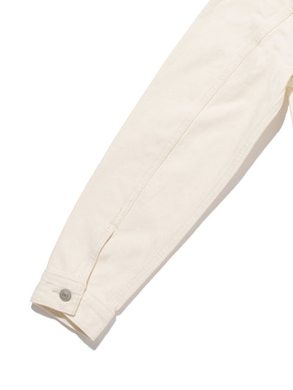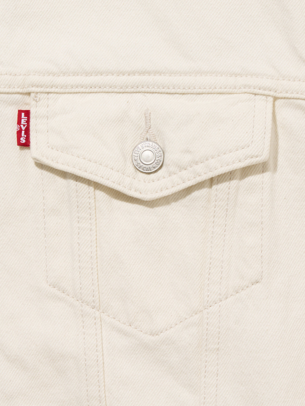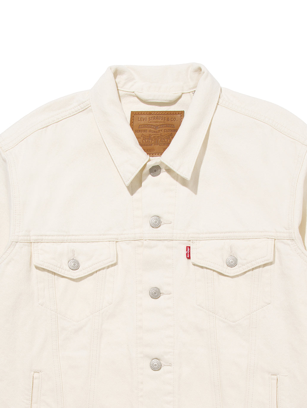1967年から続くLevi’s®の定番アイテムの一つであるトラッカージャケット。季節や流行問わず長年着用できるようなデザインと、綿100%でしっかりとした生地感で何十年と愛用し、世代から世代へと受け継ぐにふさわしいアイテムです。クリーンな印象のホワイトカラーのボディのフロントに2つのポケット、両サイドにもポケットが施されているので機能性も兼ね備えている一着です。