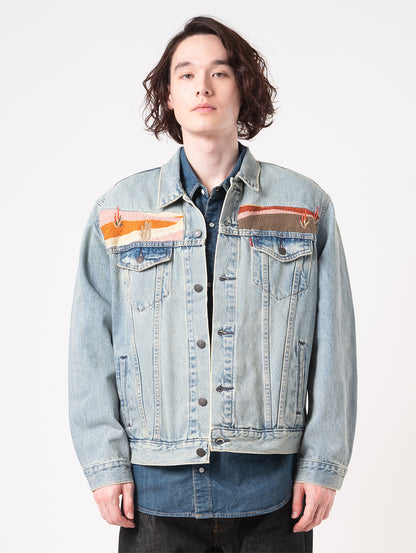 1967年から続くLevi’s®の定番アイテムの一つであるトラッカージャケット。季節や流行問わず長年着用できるようなデザイン。 絶妙なウエイトの生地、快適に着られる、時代に左右されないスタイルを纏うジャケットは他にはないアイテムです。 ボトムスはジョガーパンツやカーゴパンツやスニーカーを合わせると、ストリートスタイルに仕上がります。 同色のデニムと合わせてセットアップ風のコーデもおすすめです。 インナーにはローゲージニットやニュアンスカラーのカットソーを合わせナチュラルテイストに。 オーバーサイズで着用すればトレンドのリラックススタイルを楽しむことが出来、バケットハットやキャップ、トートバックとのアクセサリーとの相性も抜群です。