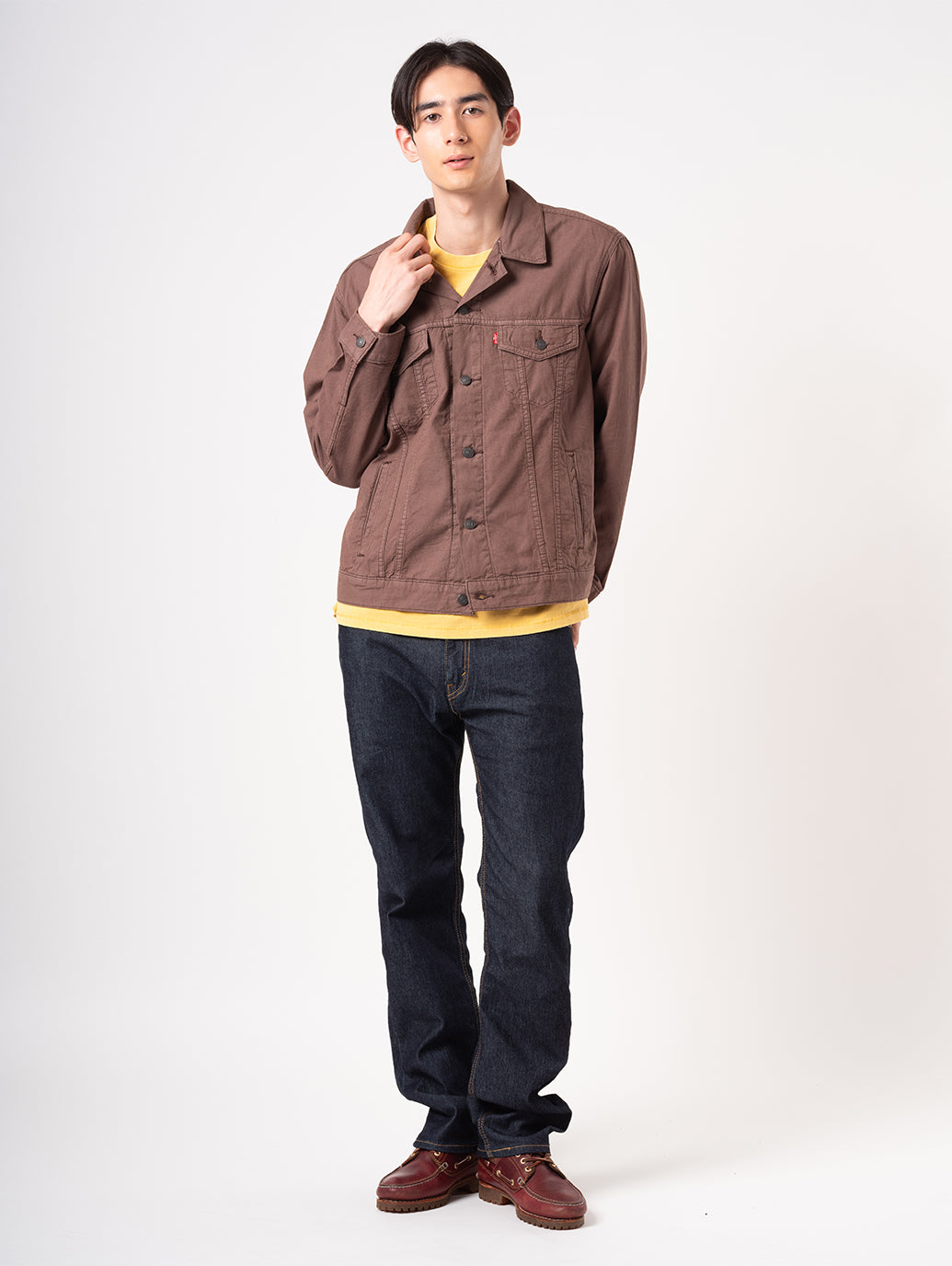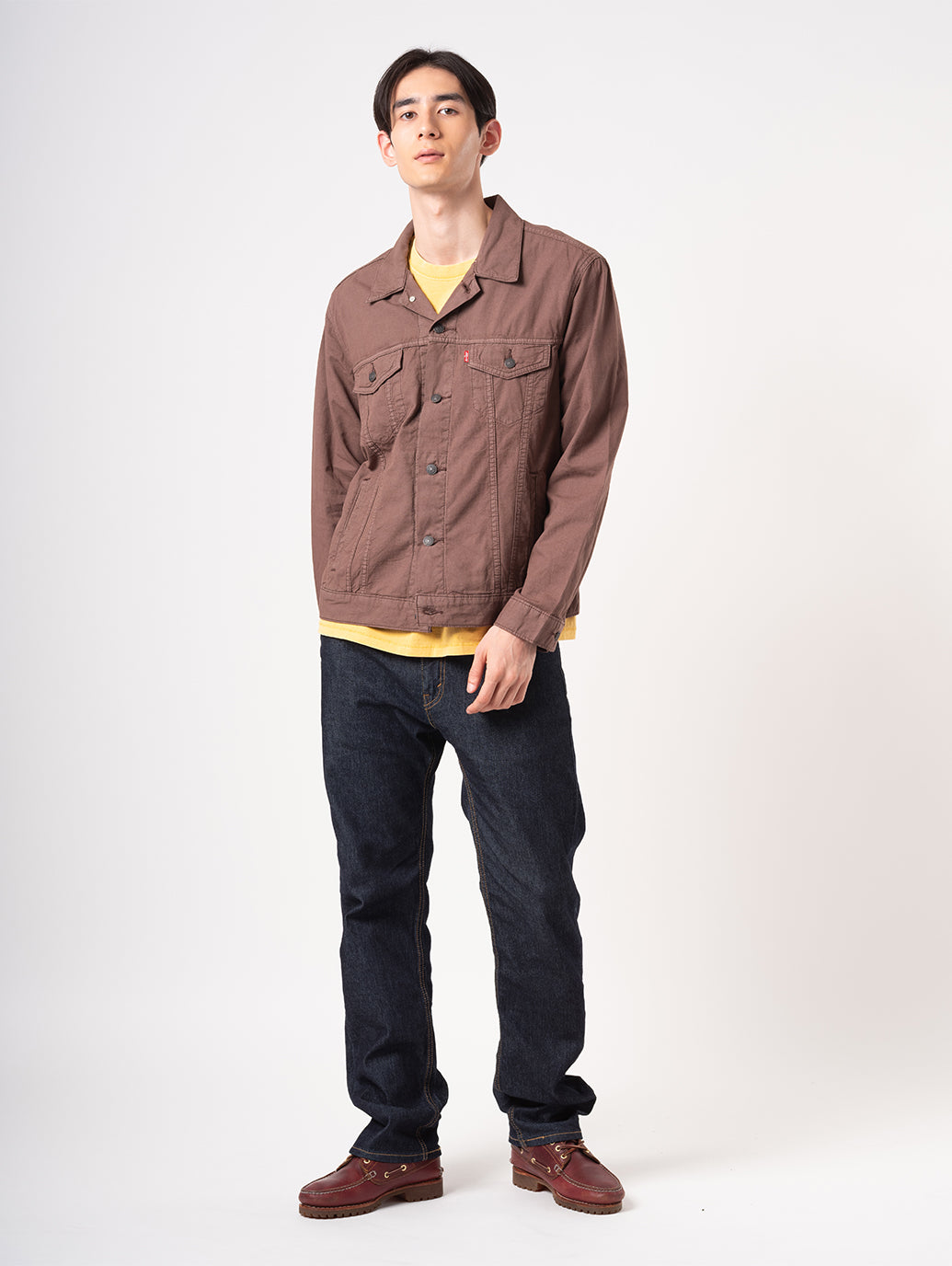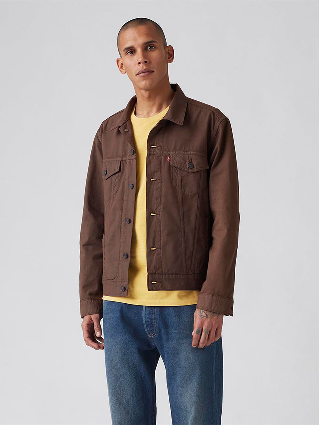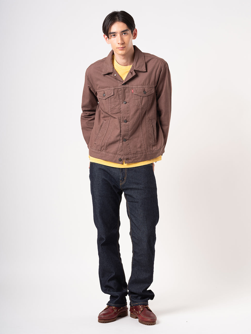 1967年から続くLevi’s®の定番アイテムの一つであるトラッカージャケット。季節や流行問わず長年着用できるようなデザイン。綿88%、麻12%の素材で通気性も良く、見た目に反して着やすいアイテム。ブラウンカラーのスタンダードフィットでフロントに2つのポケット、両サイドにもポケットが施されているので機能性も兼ね備えている一着です。