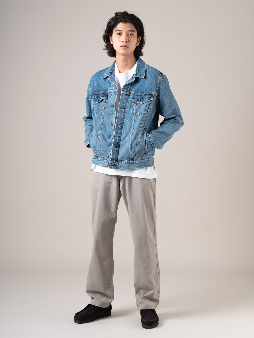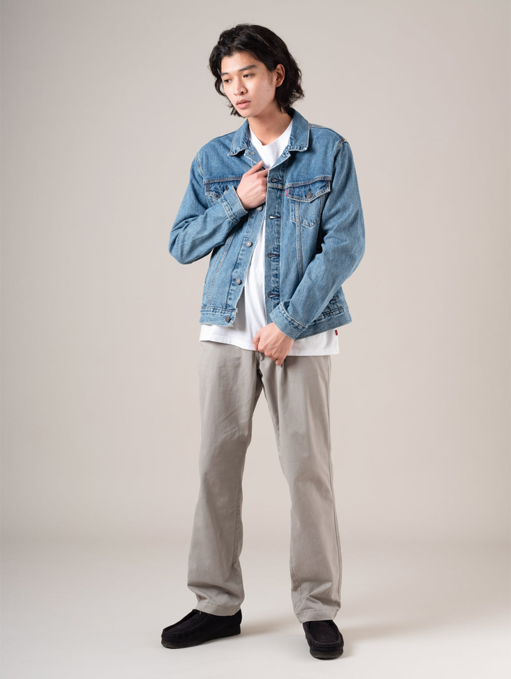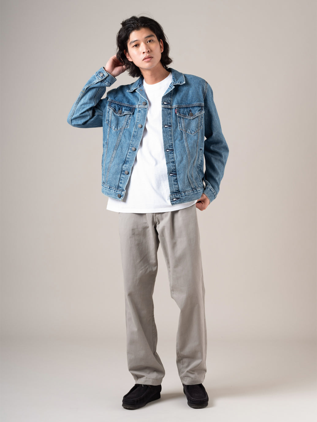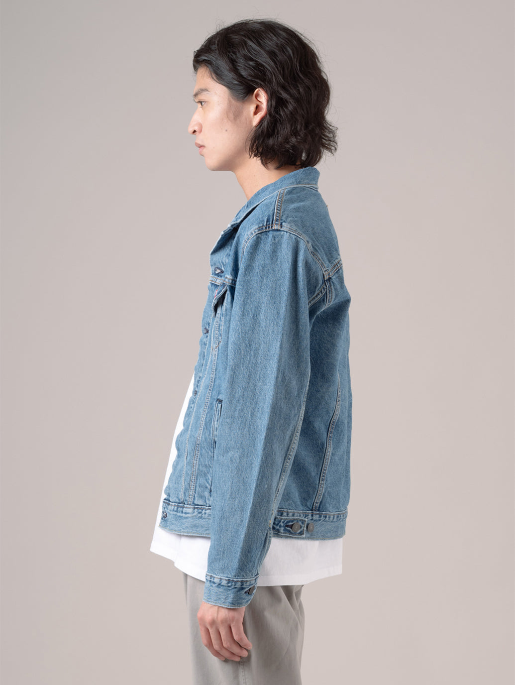 トラッカージャケットは、単なるコーディネートのアクセントにとどまらず、季節やトレンドに左右されない普遍的なスタイルを体現します。 シンプルで美しいシルエット、適度な重みのある素材、そしてさりげなく洗練されたクールさを兼ね備えた一着は、長く愛用できる大人の定番。