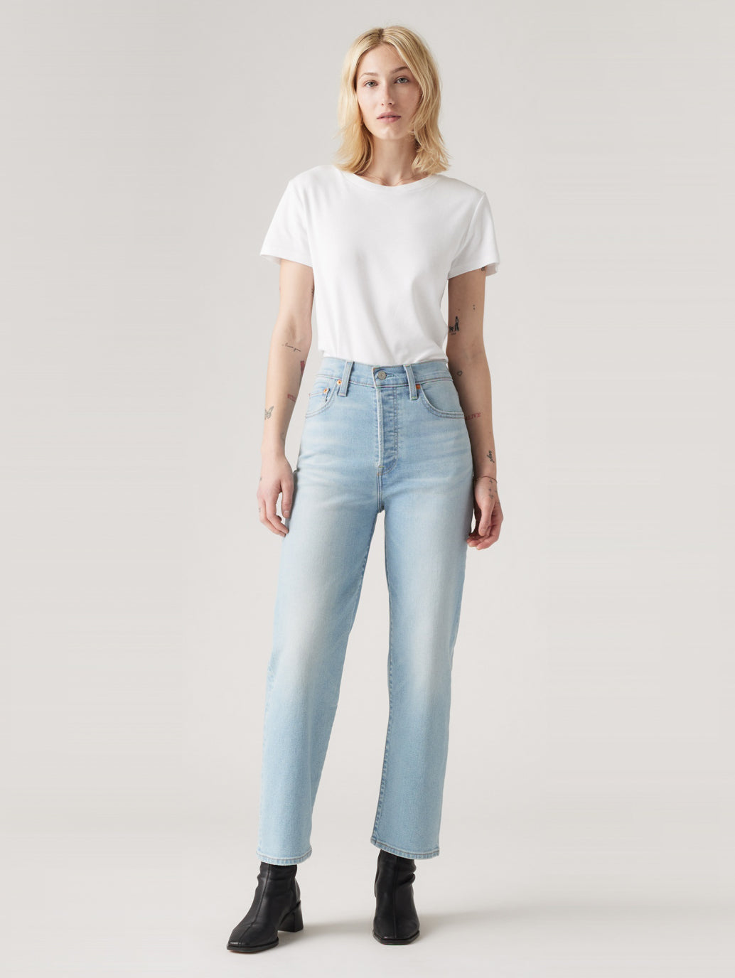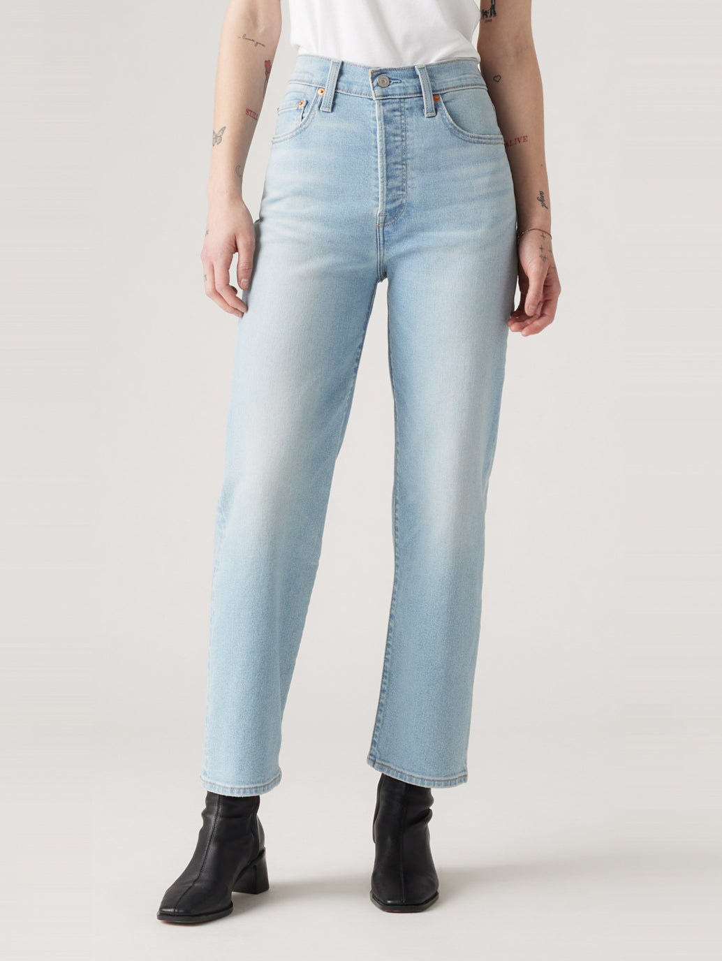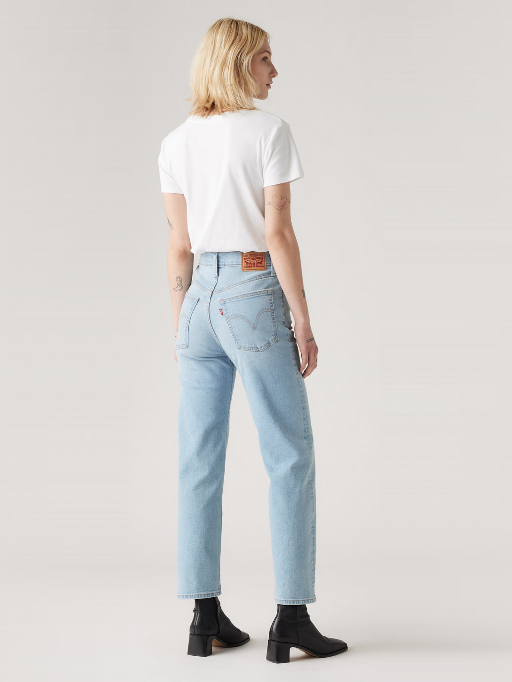 クラシックなストレートシルエットで仕上げた、Levi's®のラインナップの中で最もハイウエストの大人気のRIBCAGEジーンズです。 高い位置のハイウエストスタイルはウエストとヒップが引き締まって見え、脚長効果があります。見た目だけでなく、穿いていて気分も上げてくれるフィットです。 アンクル丈で穿くようにデザインされています。どんなトップスとも相性抜群のマストハブアイテムです。