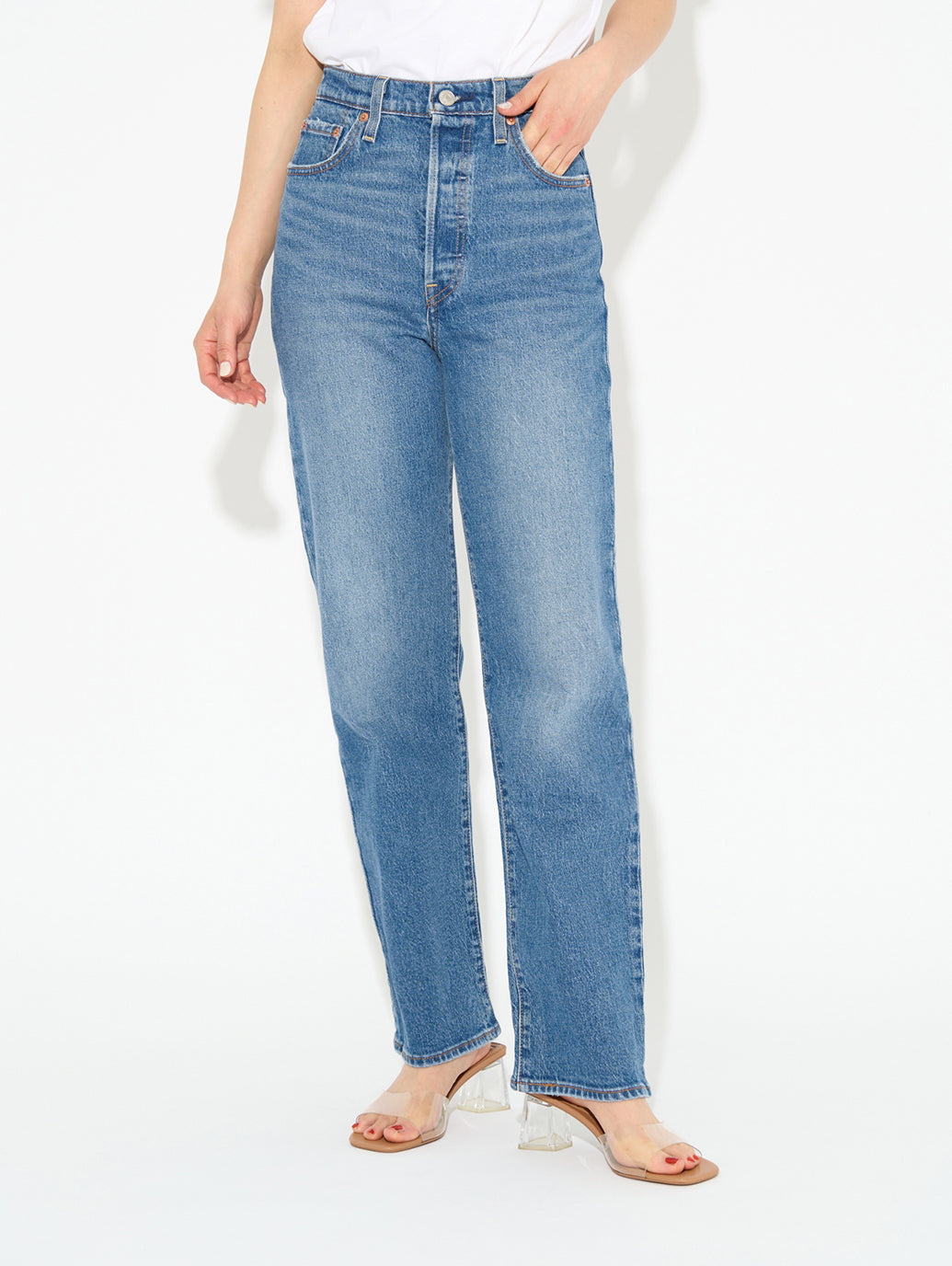 レディースのラインナップで最もハイウエスト 驚異的な12インチライズのジーンズはヒップをスリムに見せ、ウエストを強調し、脚を長く見せてくれるジーンズです。スタイルの良さを強調して、見かけだけでなく気分も上げてくれるフィットです。フルレングスのシルエットで、長く美しい脚のラインを演出します。ボタンフライでおなか回りをすっきり見せてくれる優れものです。カラー違いで欲しくなる一本です。