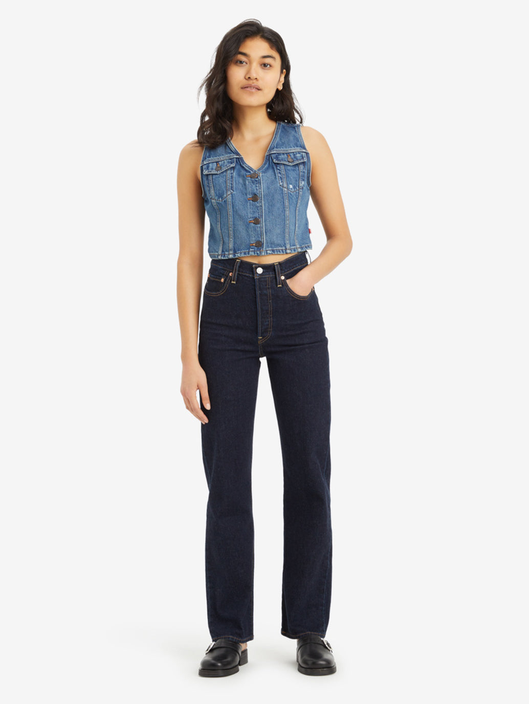 レディースのラインナップで最もハイウエスト、驚異的な12インチライズのジーンズはヒップをスリムに見せ、ウエストを強調し、脚を長く見せてくれるジーンズです。スタイルの良さを強調して、見かけだけでなく気分も上げてくれるフィットです。フルレングスのシルエットで、長く美しい脚のラインを演出します。ボタンフライでお腹周りをすっきり見せてくれる優れものです。カラー違いで欲しくなる一本です。