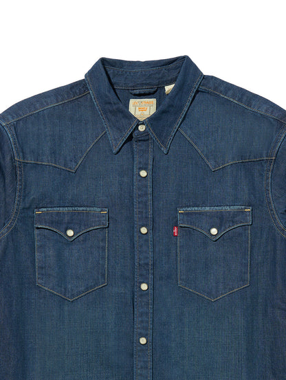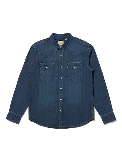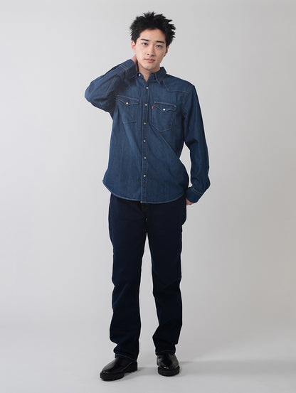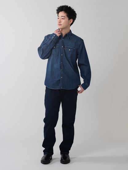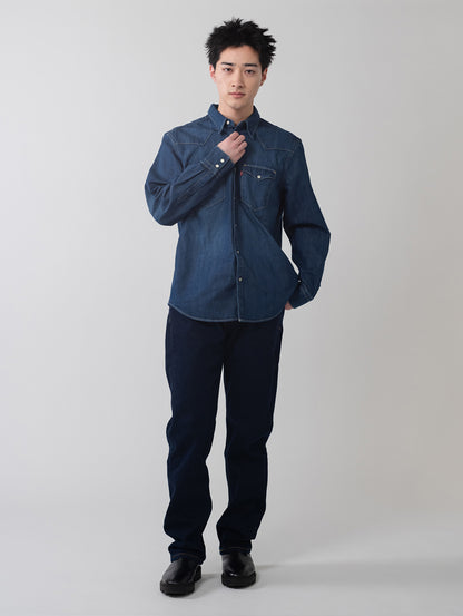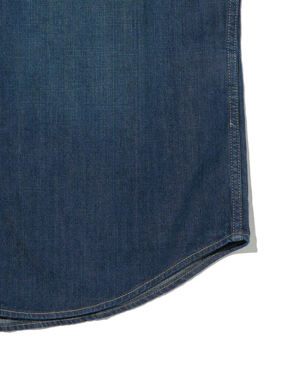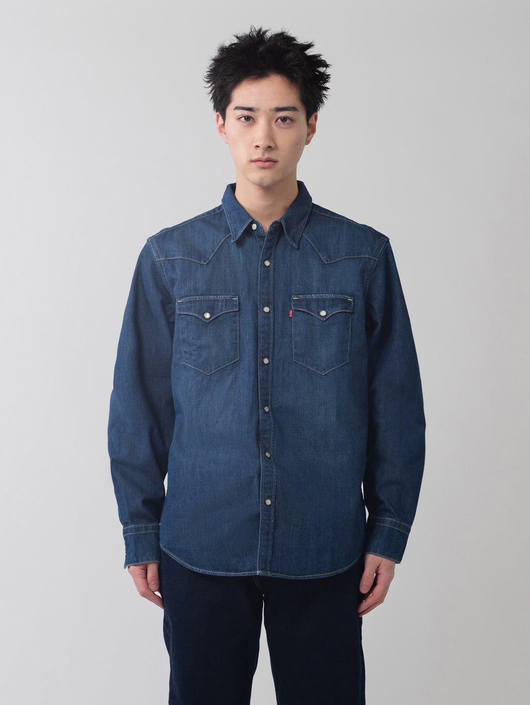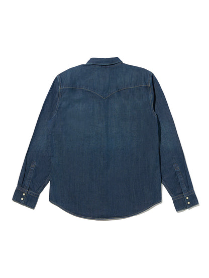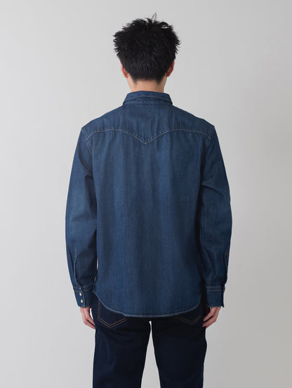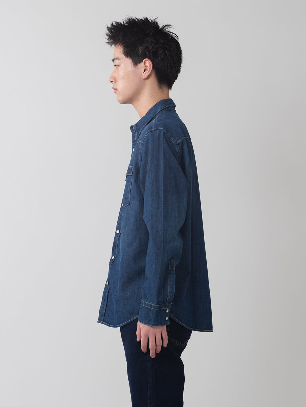 アメリカ西部に深くルーツを持つブランドとしての定番アイテムの一つのウエスタン シャツ。クラシックに忠実な綿100%のデニム地、バーストウスタンダードフィット、特徴的なスナップ前立て、尖ったヨーク、カーブした裾が特徴です。デニムのセットアップは勿論、チノやワークパンツにも合わせやすく着回しの効く一着です。