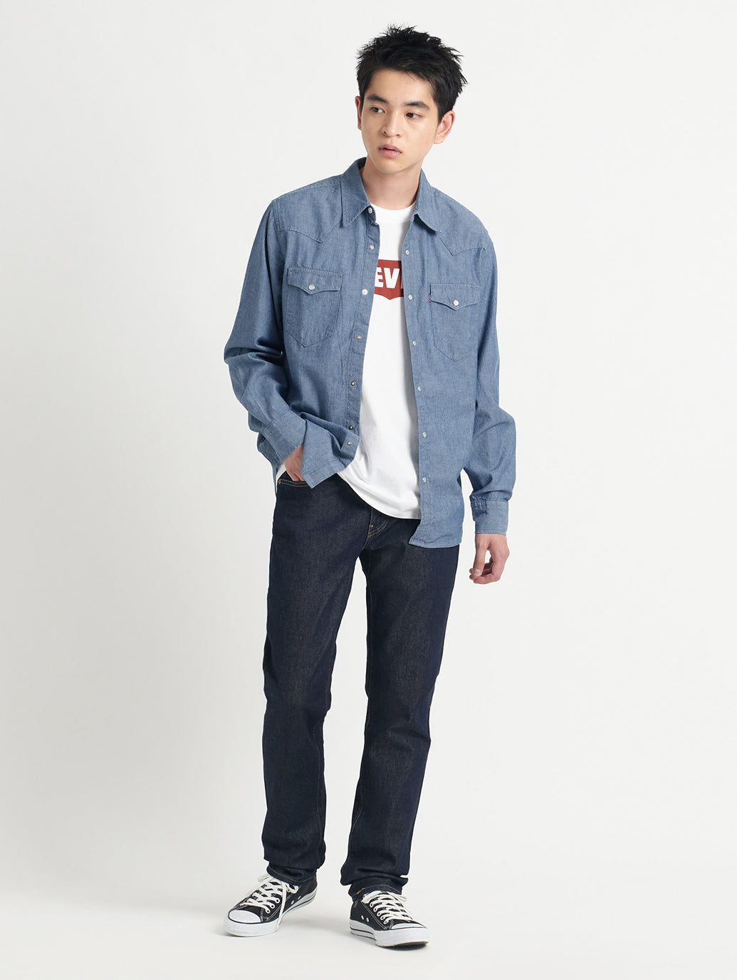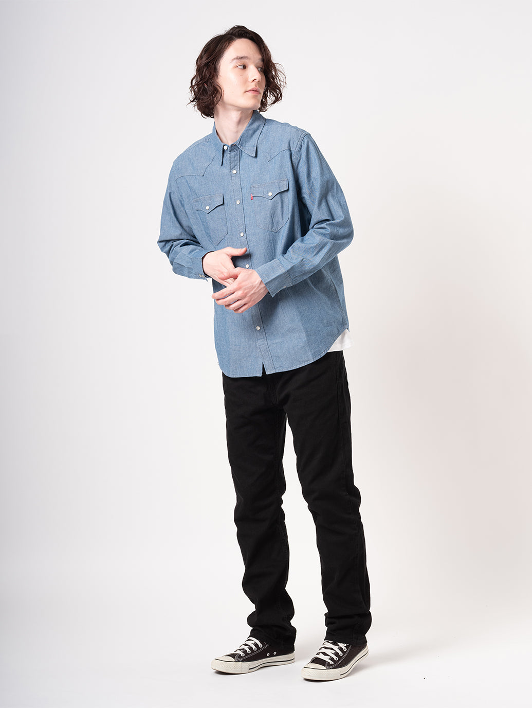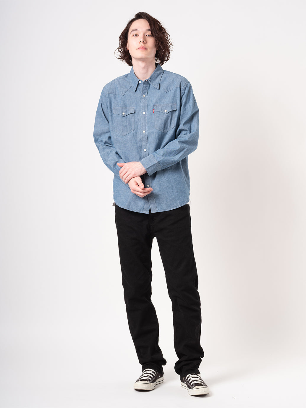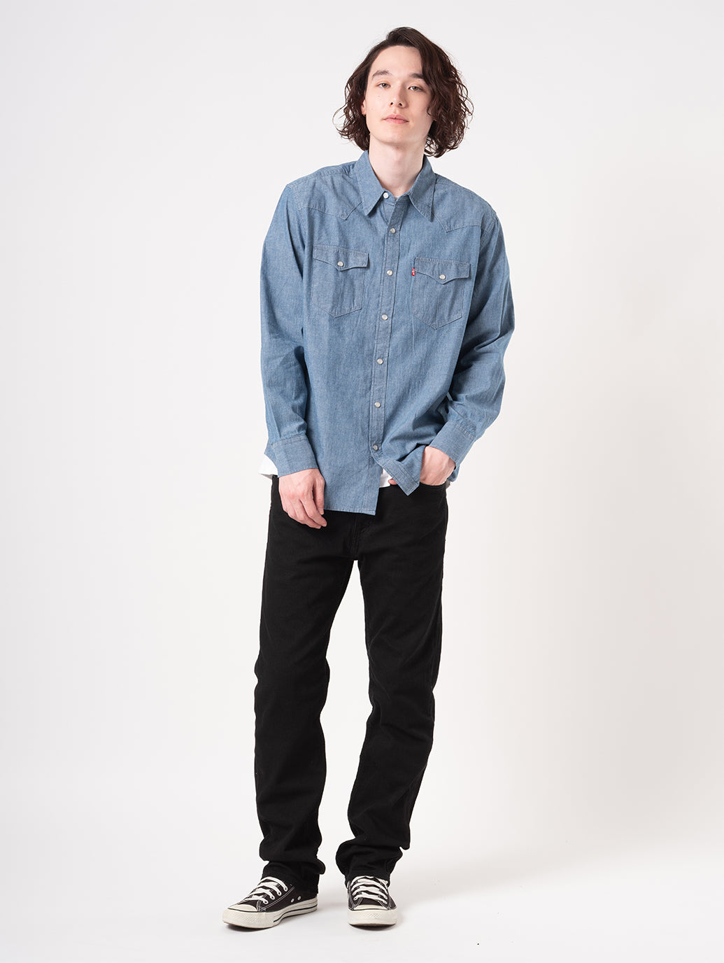 リーバイス®のアイコンの1つ。アメリカ西部に深いルーツを持つブランドとして、クラシックに忠実なスタンダードフィット、フラップポケット、特徴的なスナップボタン、ポインテッドヨーク、カーブした裾が特徴です。お気に入りのブルージーンズと合わせてデニム・オン・デニムを楽しんだり、501®と合わせてリーバイスらしいセットアップもおすすめです。