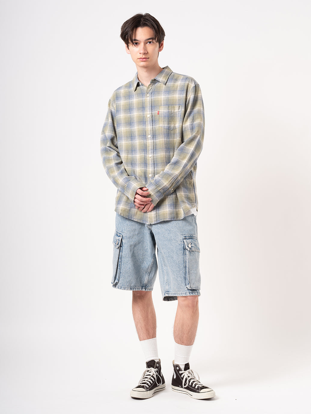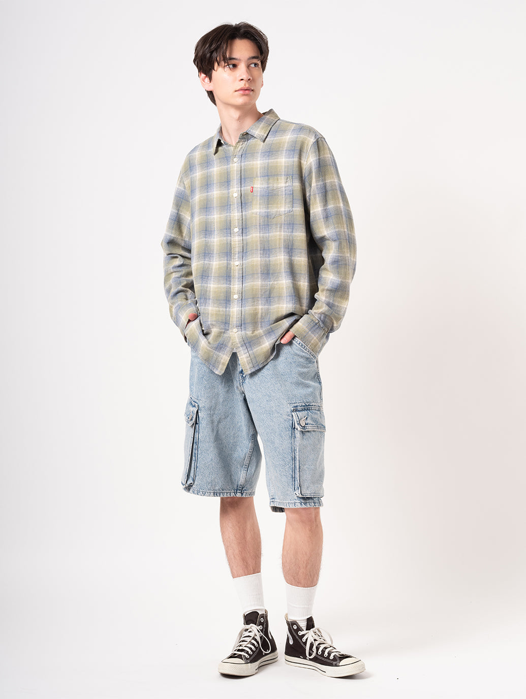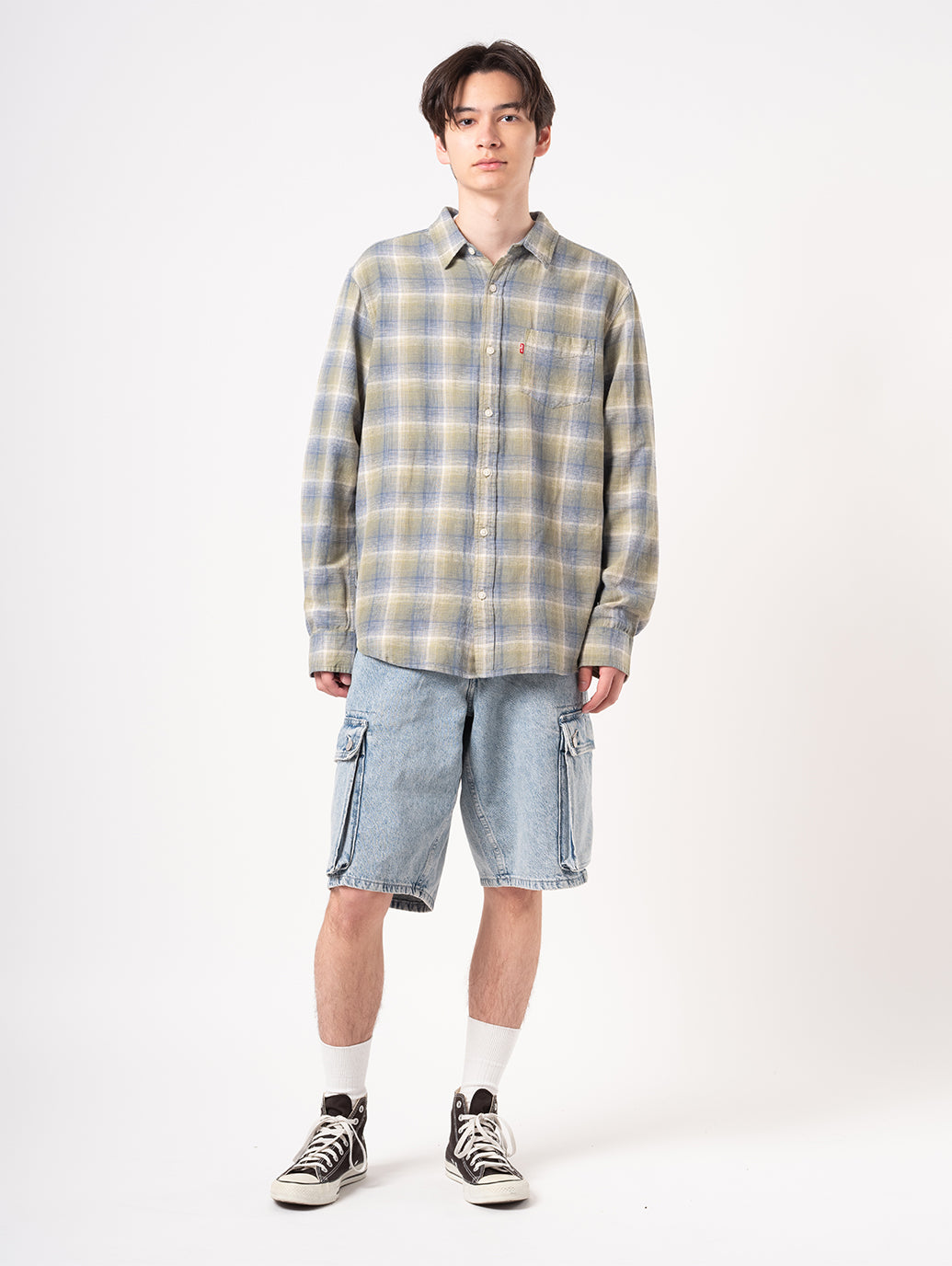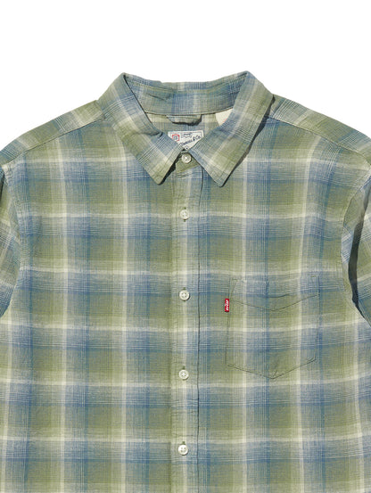 Levi's®が展開している人気のサンセットシャツ。流行に左右されないベーシックなスタンダードフィット。胸元にポケットを配したチェック柄のデザイン。麻43%、レーヨン34%、綿23%で柔らかい肌触り。お気に入りのパンツと合わせていただきたい一着です。