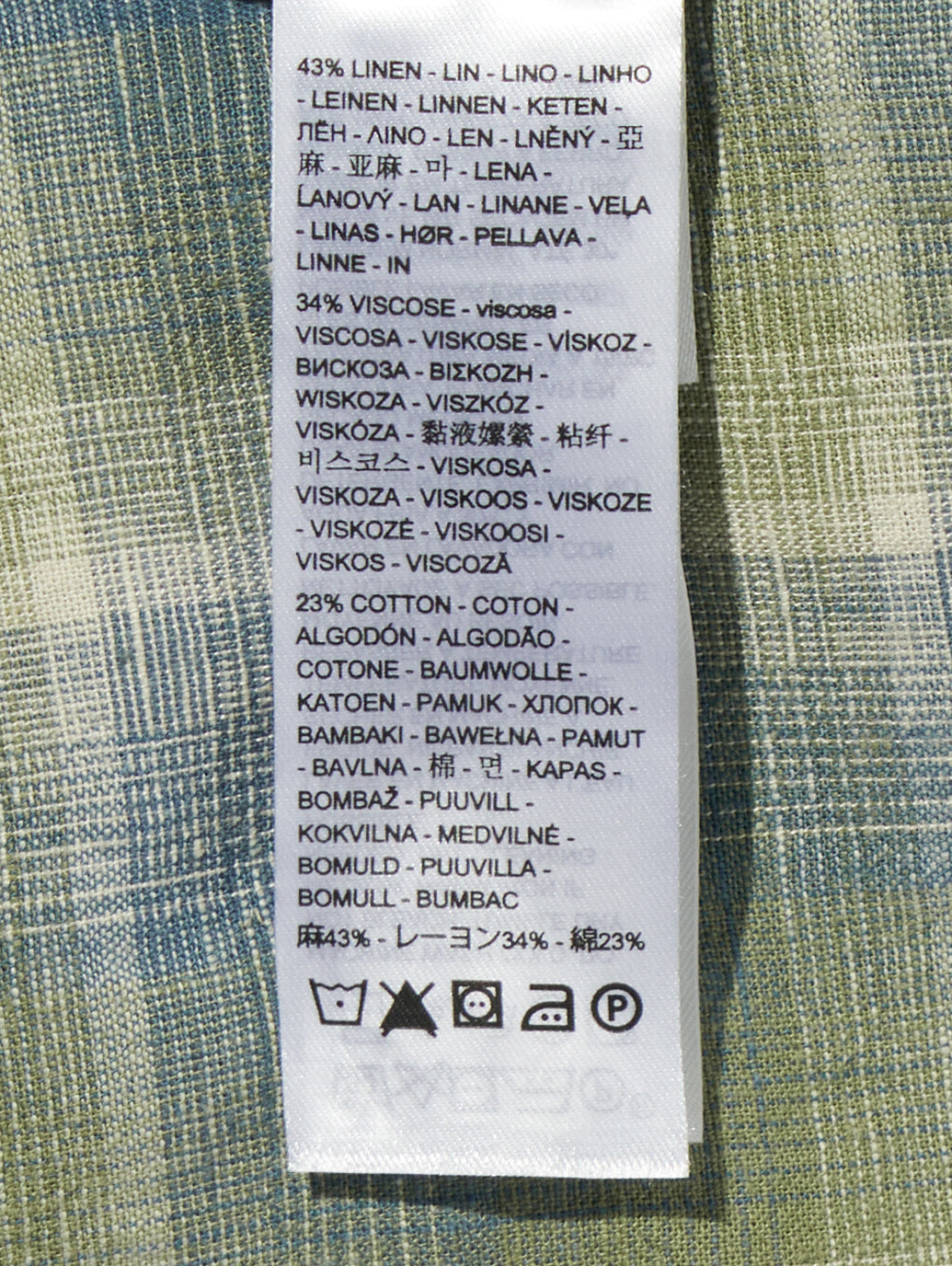 ・綿23%, 麻43%, レーヨン34%