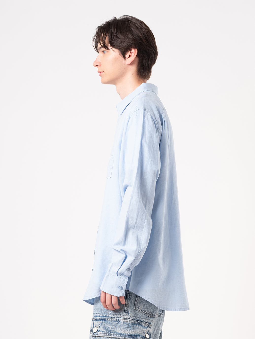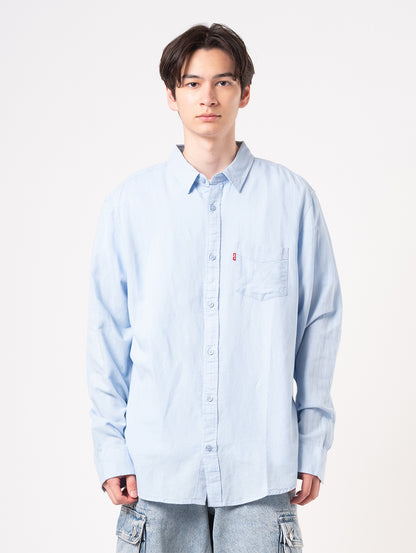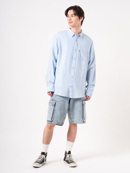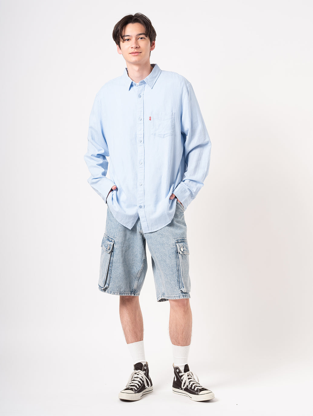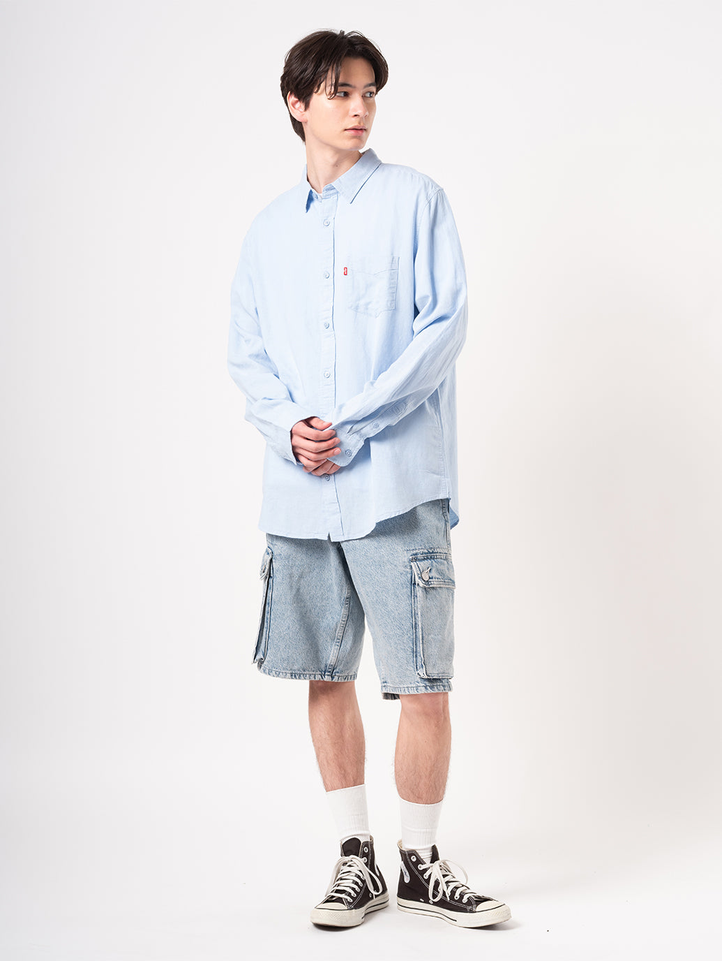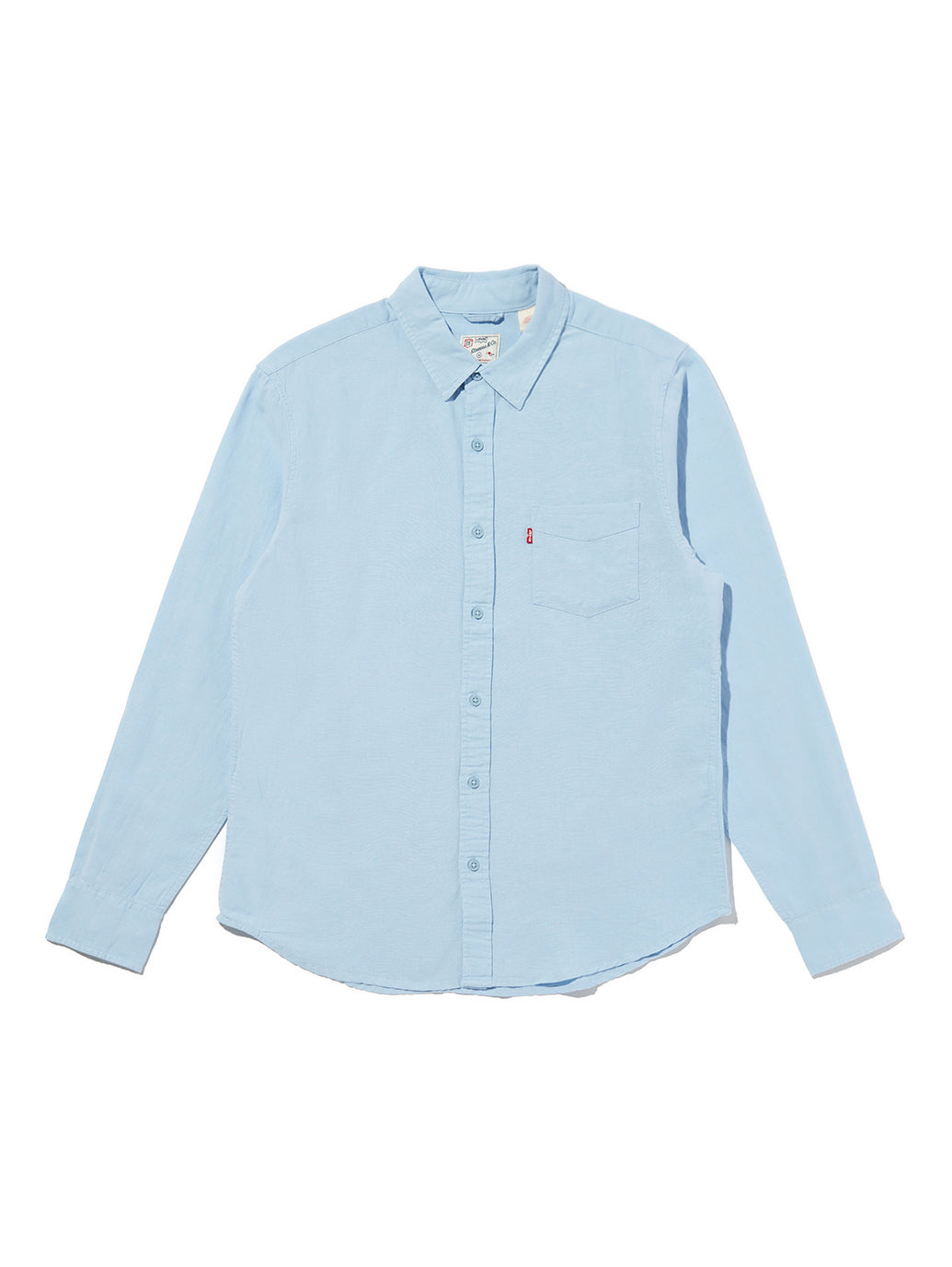 Levi's®が展開している人気のサンセットシャツ。流行に左右されないベーシックなスタンダードフィット。胸元にポケットを配したライトブルーカラーのデザイン。麻43%、レーヨン34%、綿23%で柔らかい肌触り。お気に入りのパンツと合わせていただきたい一着です。