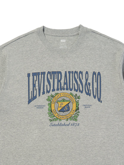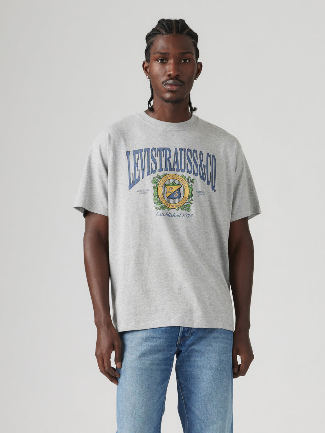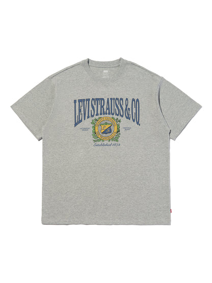 ゆったりとしたリラックスシルエットのTシャツ。グレーカラーのボディにグラフィックロゴがプリントされたデザインです。流行りのリンスカラーのジーンズやワークパンツと合わせていただきたい一枚です。
