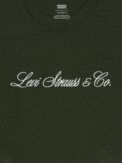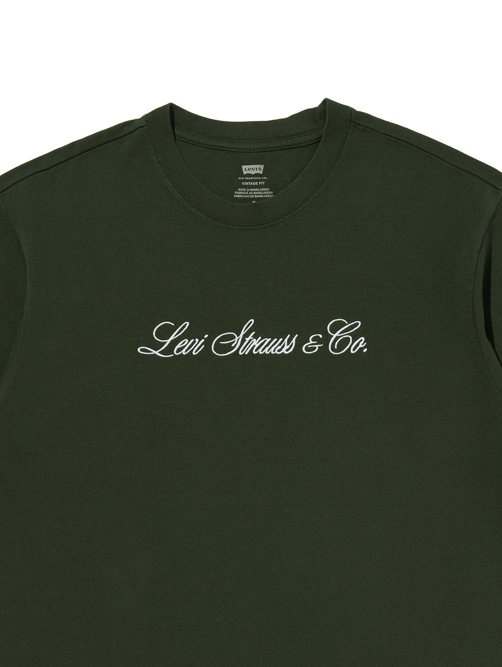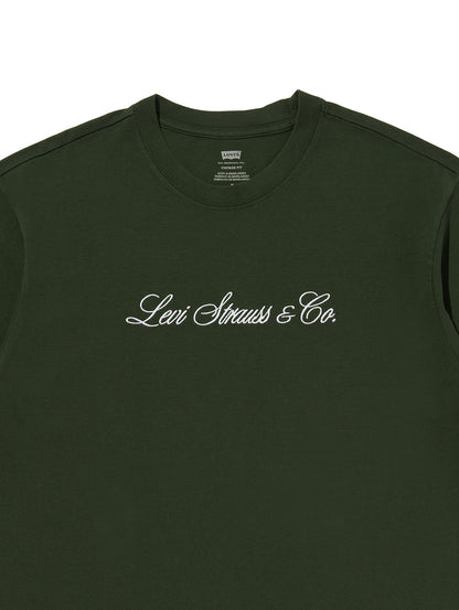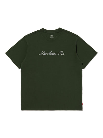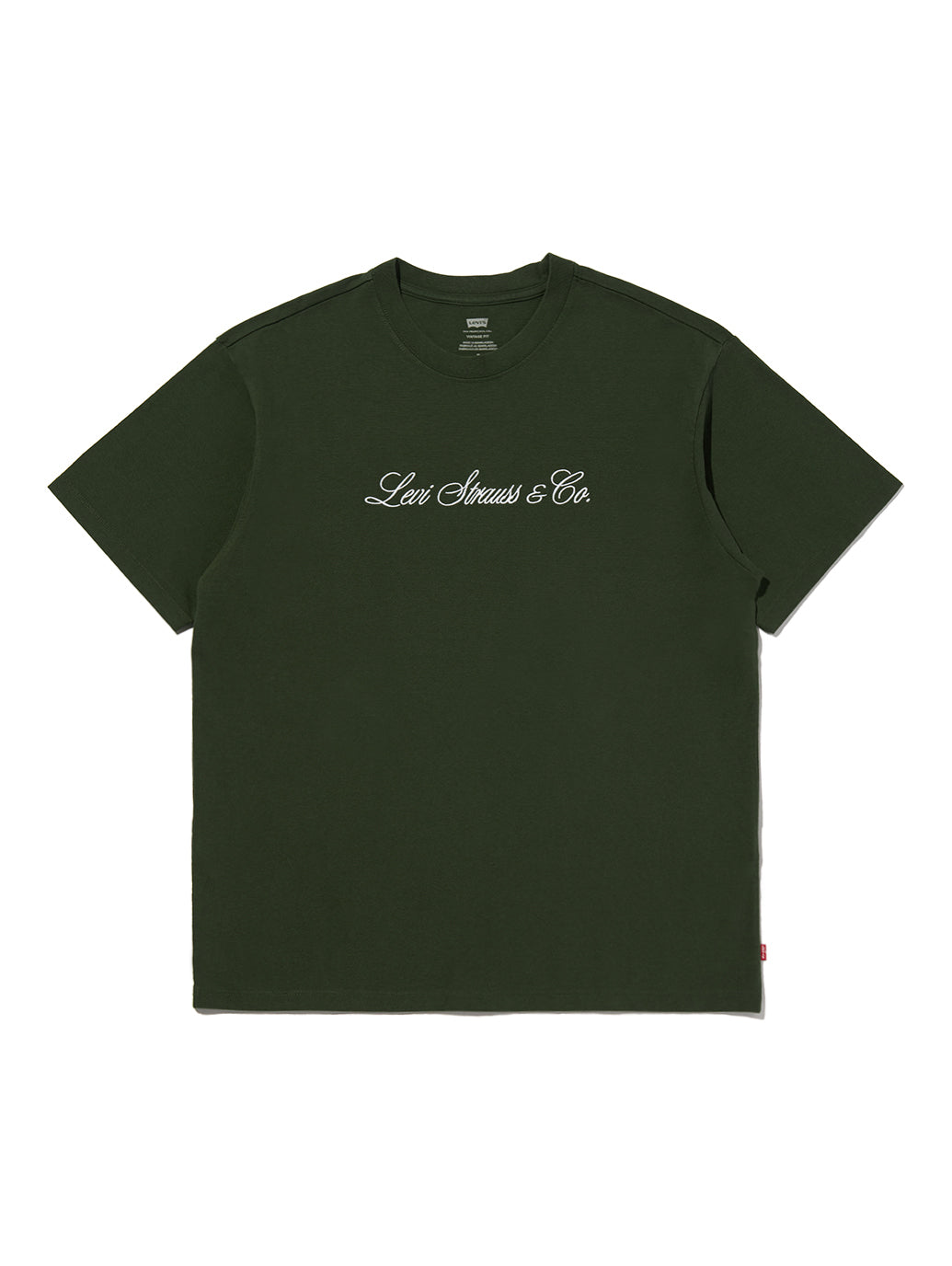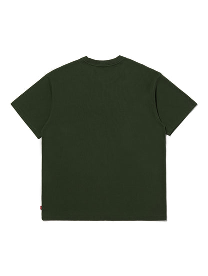 ゆったりとしたリラックスシルエットのTシャツ。グリーンカラーのボディにリーバイスロゴがプリントされたデザインです。流行りのリンスカラーのジーンズやワークパンツと合わせていただきたい一枚です。