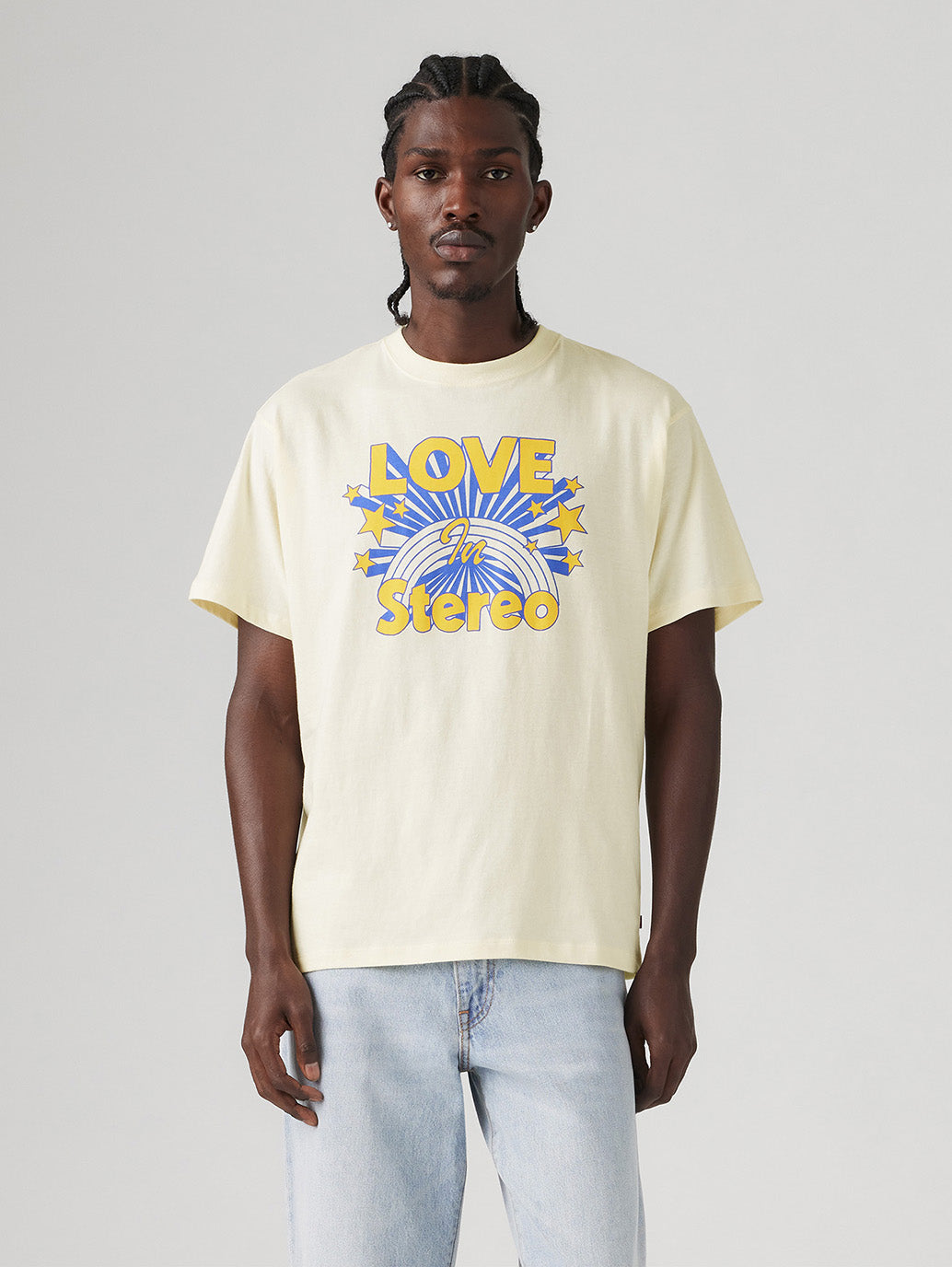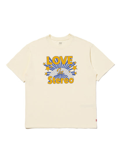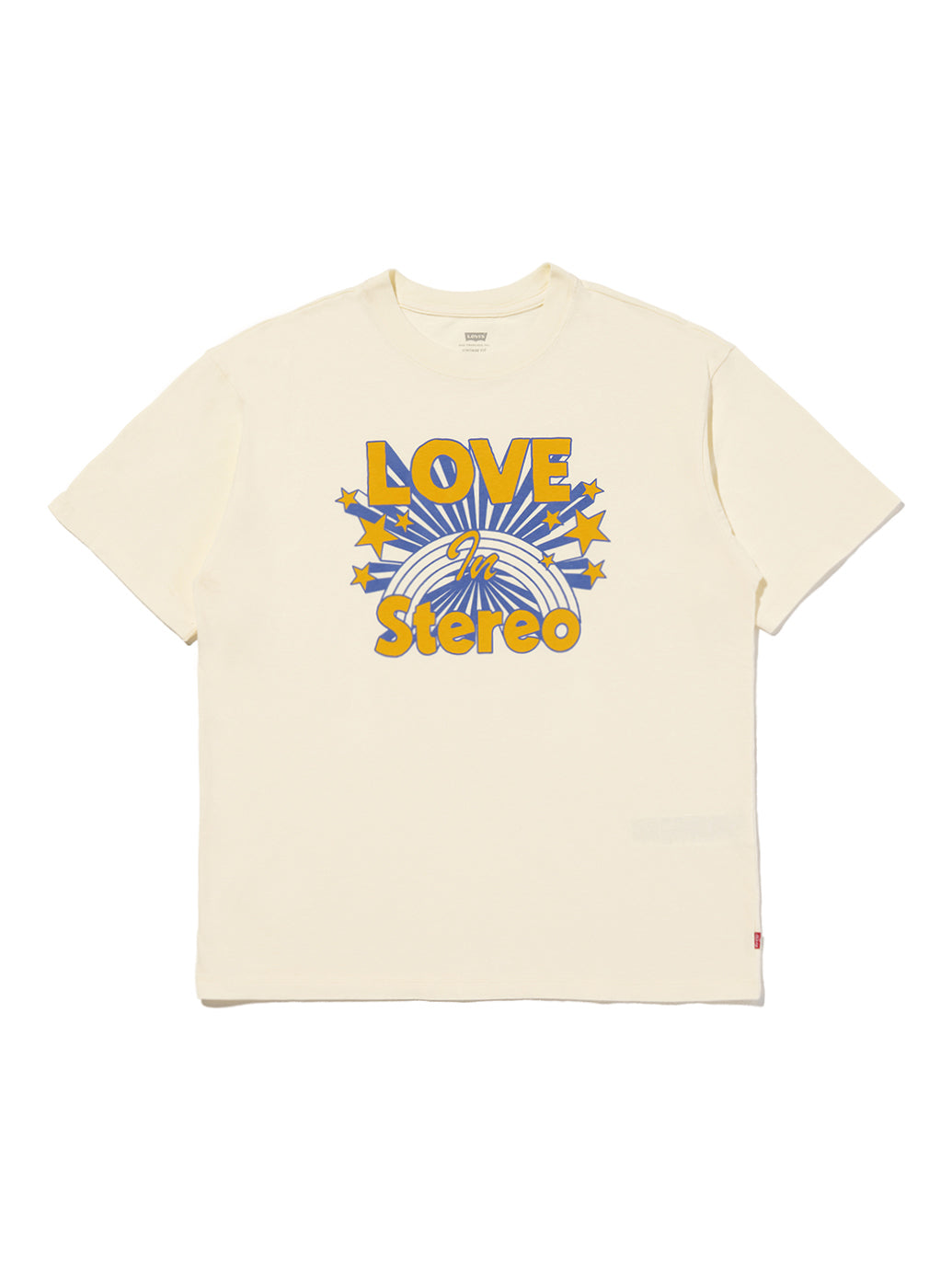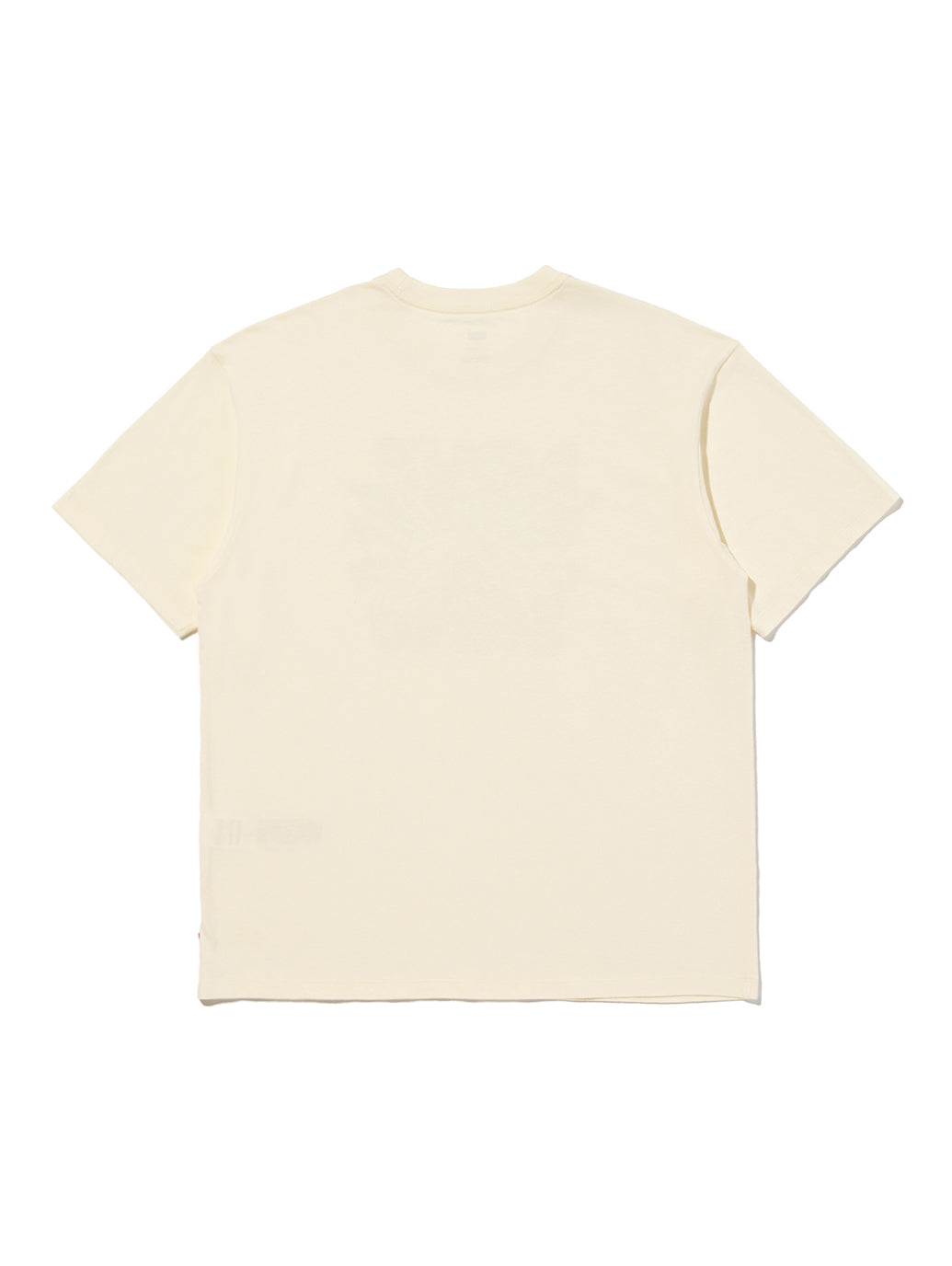 ゆったりとしたリラックスシルエットのTシャツ。ホワイトカラーのボディにグラフィックロゴがプリントされたデザインです。流行りのリンスカラーのジーンズやワークパンツと合わせていただきたい一枚です。