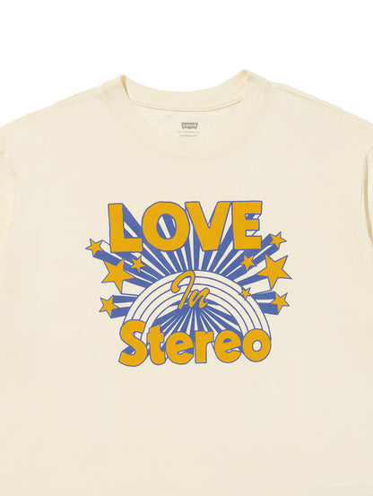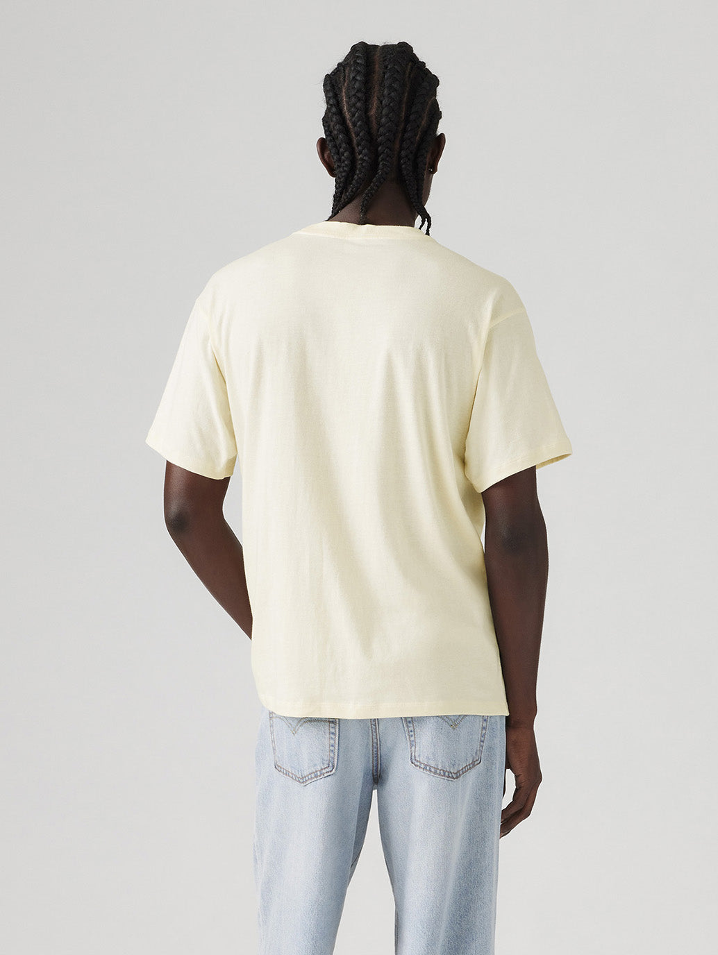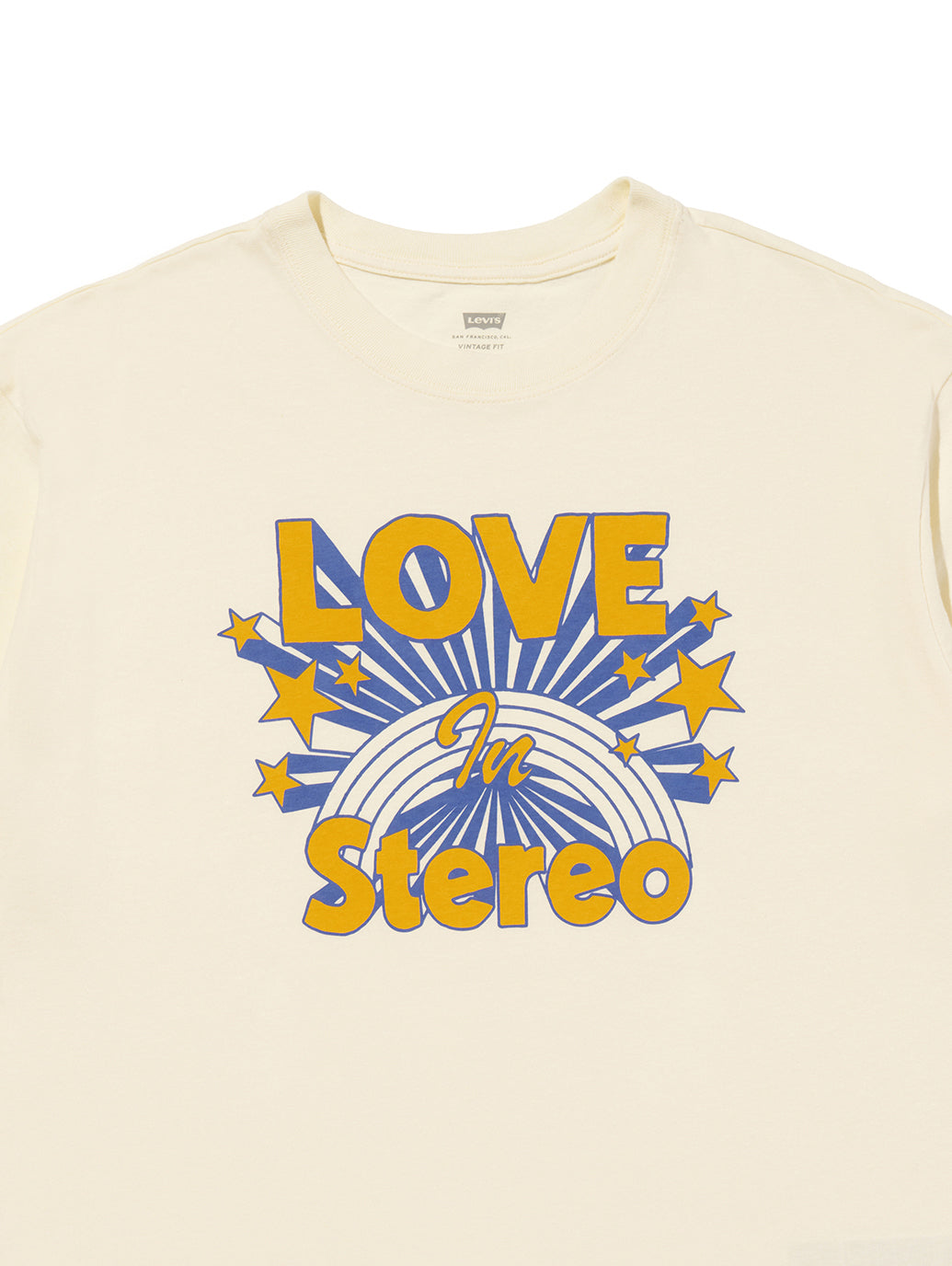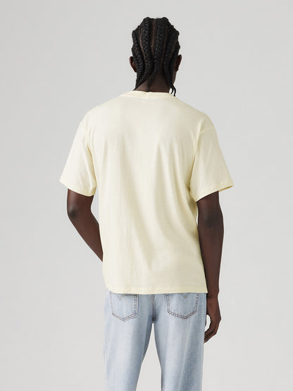ゆったりとしたリラックスシルエットのTシャツ。ホワイトカラーのボディにグラフィックロゴがプリントされたデザインです。流行りのリンスカラーのジーンズやワークパンツと合わせていただきたい一枚です。