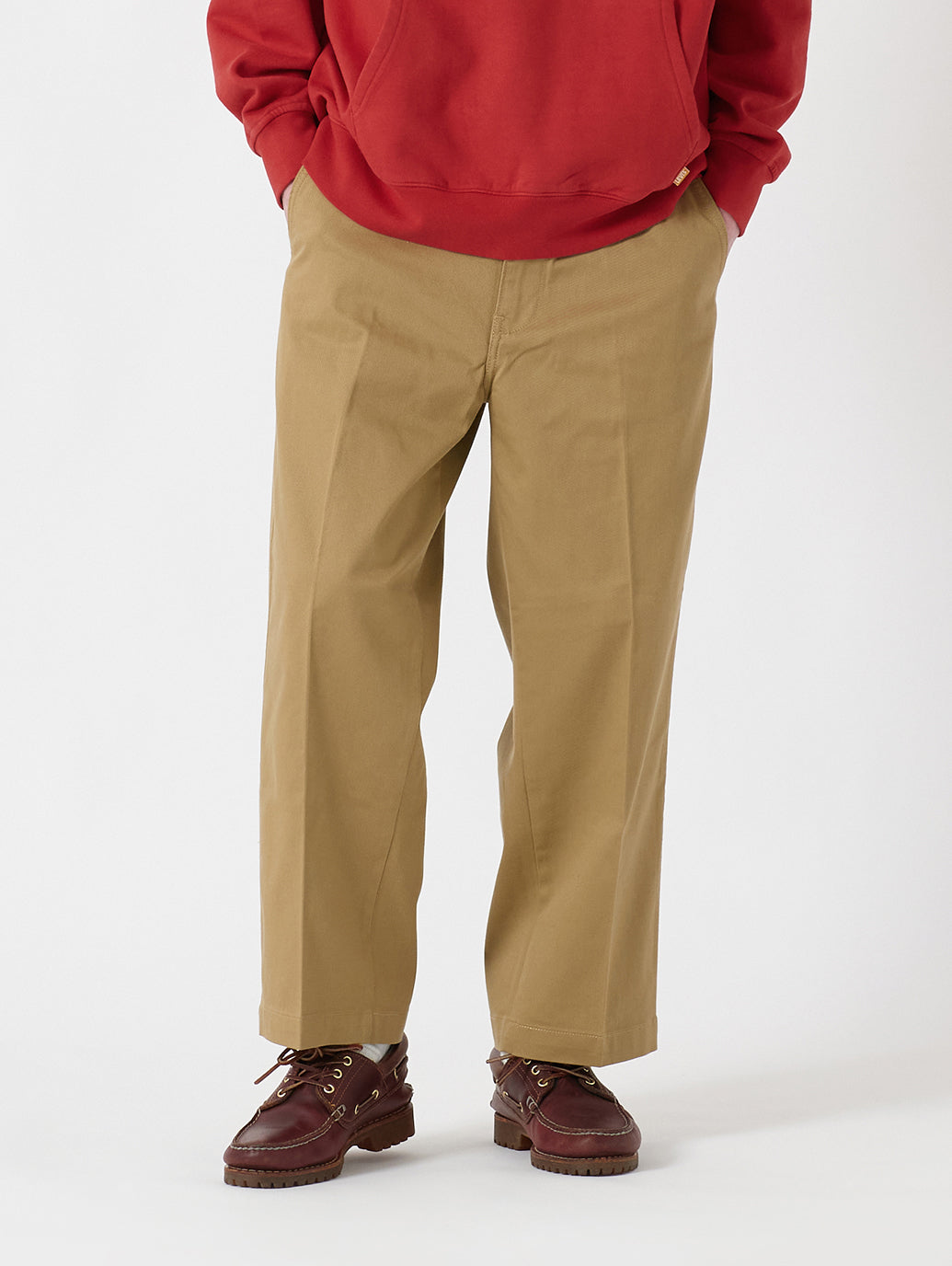 ストリートウェアの雰囲気と、日曜日のちょっとした外出に穿くパンツの雰囲気も漂わせるワイドレッグチノパンツ。はっきりと主張するセンタークリースが入ったリラックスフィットで、恋人の両親に会う時に着ていける、きちんとした印象も感じさせます。クロップド丈を活かして、お気に入りのシューズを強調しましょう。 柔らかく心地よい手触り生地はストレッチが効いているので、1日中穿いても快適です。 洗濯してもクリースをくっきりとキープする、防シワ加工を施したSTA PRESTパンツ。