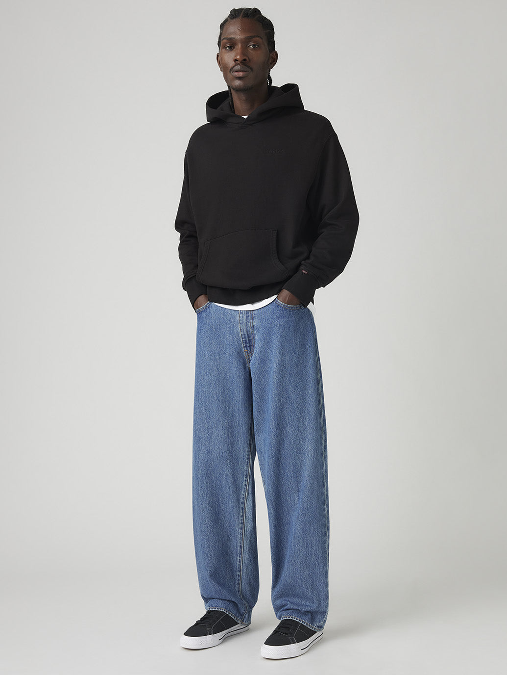 90年代のリバイバルとしての大胆なスタイルの578™ Baggy ジーンズ。その名の通り全体的にゆったりとしたバギーなフィットで、裾に向かって緩やかに細くなるテーパードなのでお好みのスニーカーに裾をダボつかせて穿くのがお勧めです。90年代を感じるライトカラーで”いなたい”雰囲気でストリートやスケートファッションに落とし込みやすい一本です。
